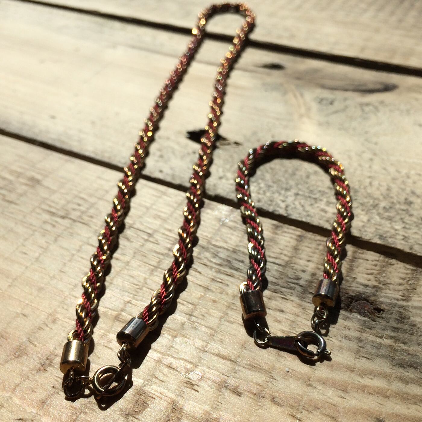 メタル製ロープが可愛いネックレスとブレスレットのアンサンブルです。