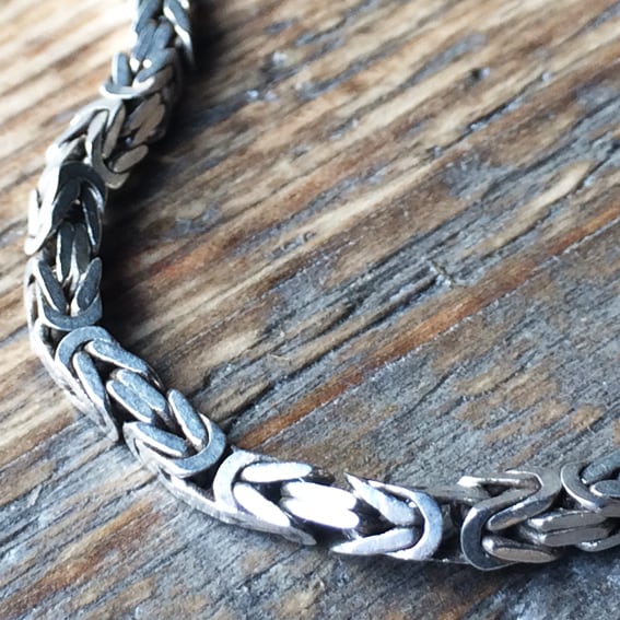 筒のような、あるいはチューリップを思わせる形をしたシルバーチェーンが連なる、なめらかなフォルムが印象的な一品です。