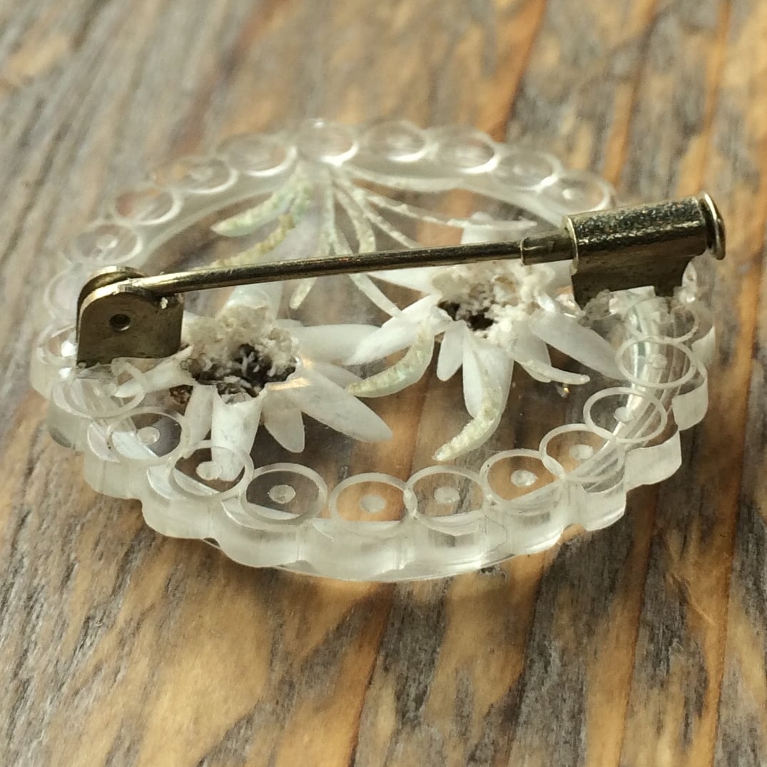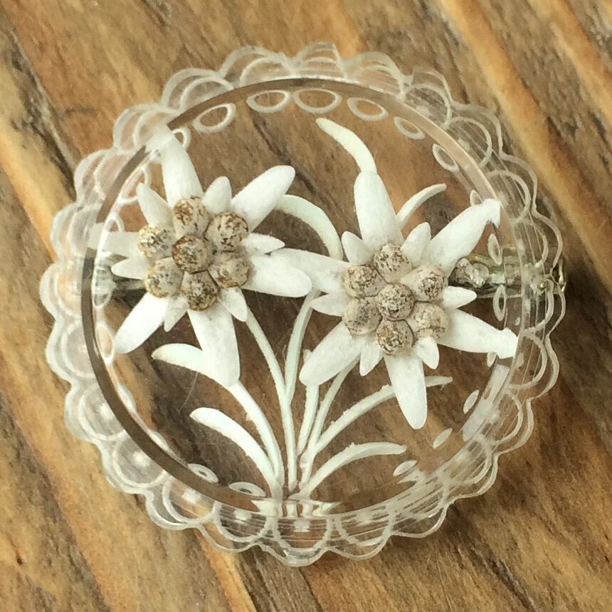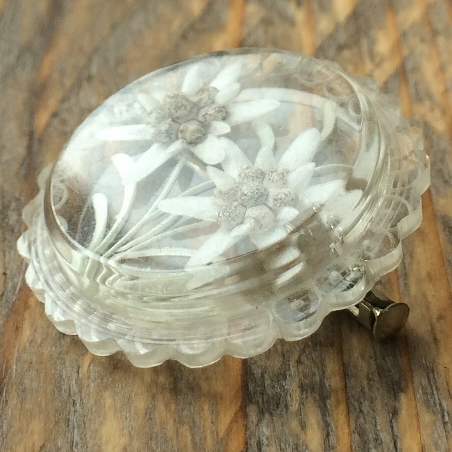 エーデルワイスがそのまま中に閉じ込められているブローチです。