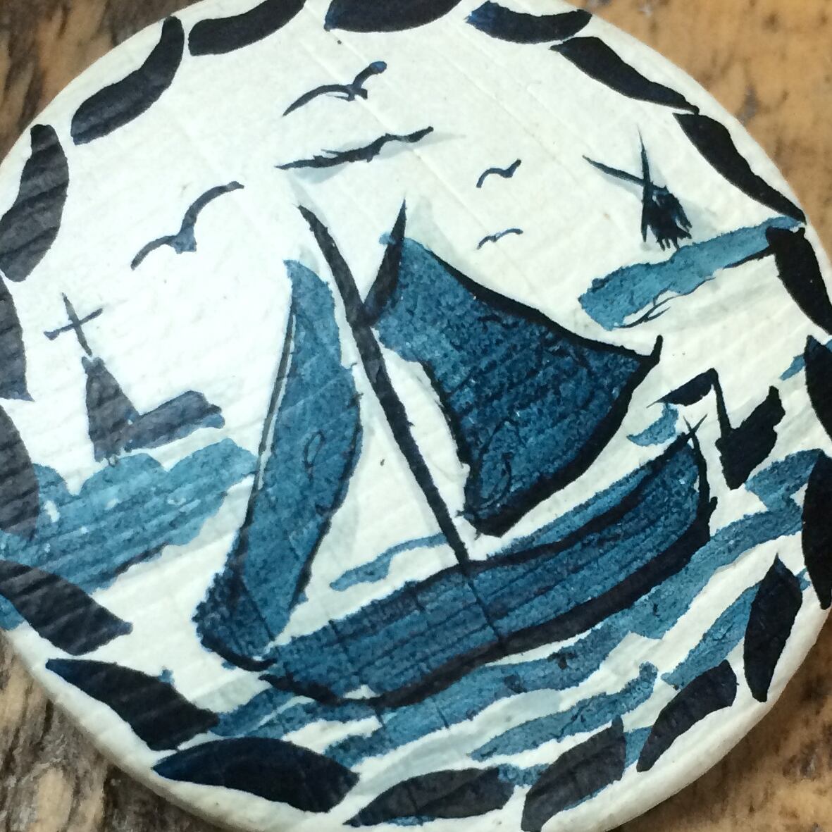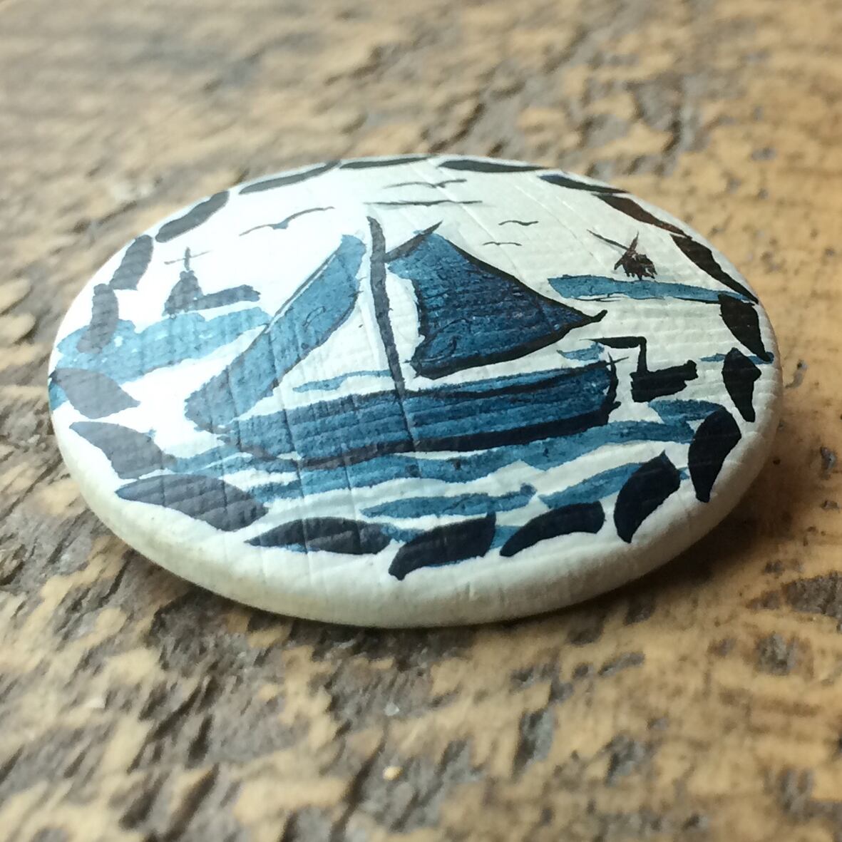 hand-drawn オランダの船 woodenブローチ (h-35)