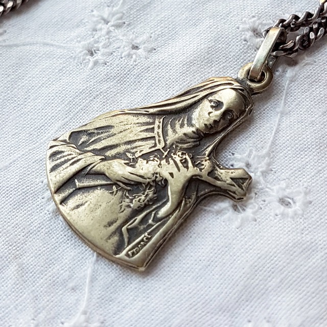 ペンダントには、19世紀フランスの修道女・聖テレーズが描かれています。