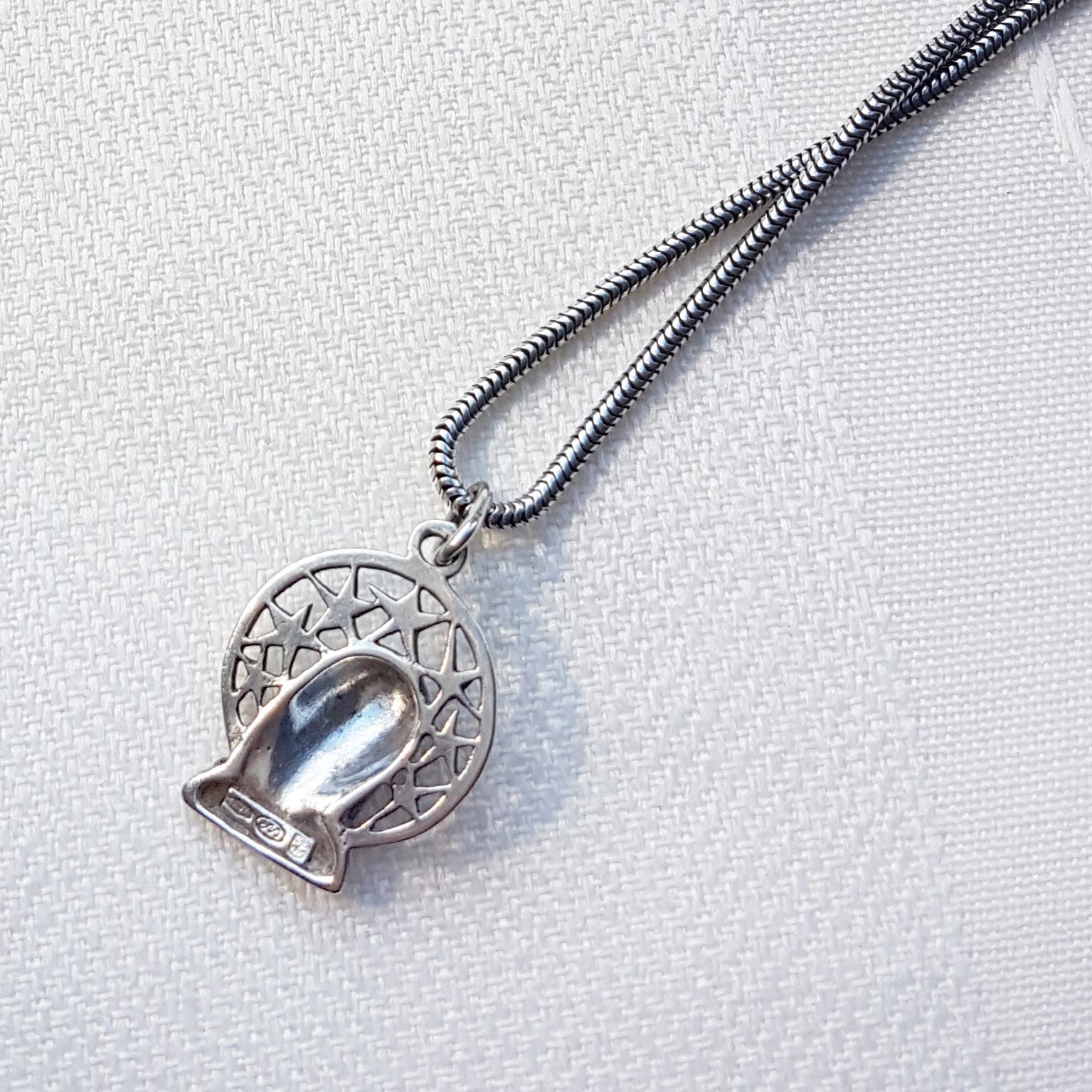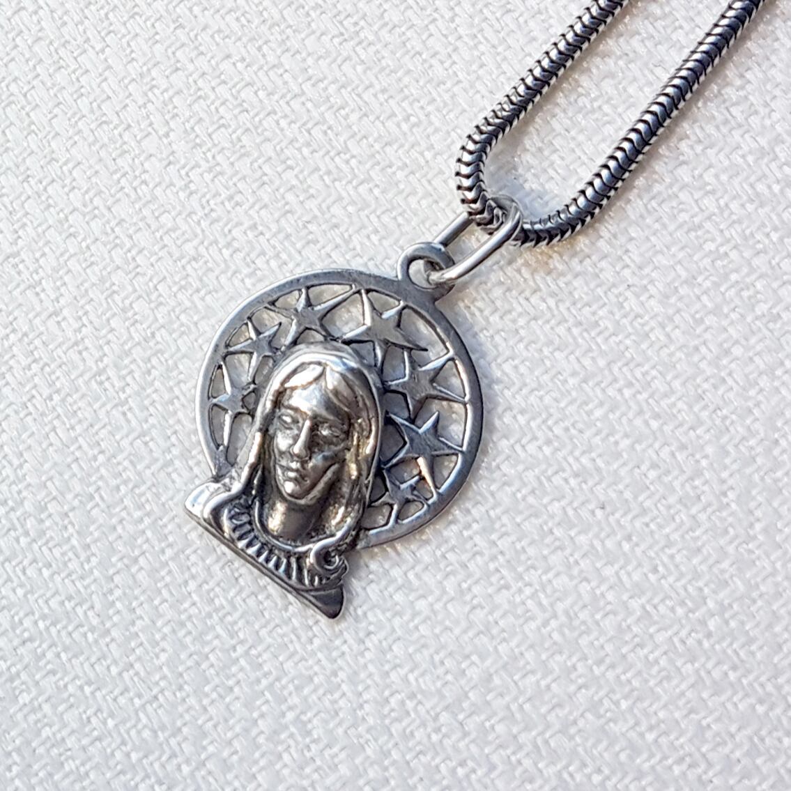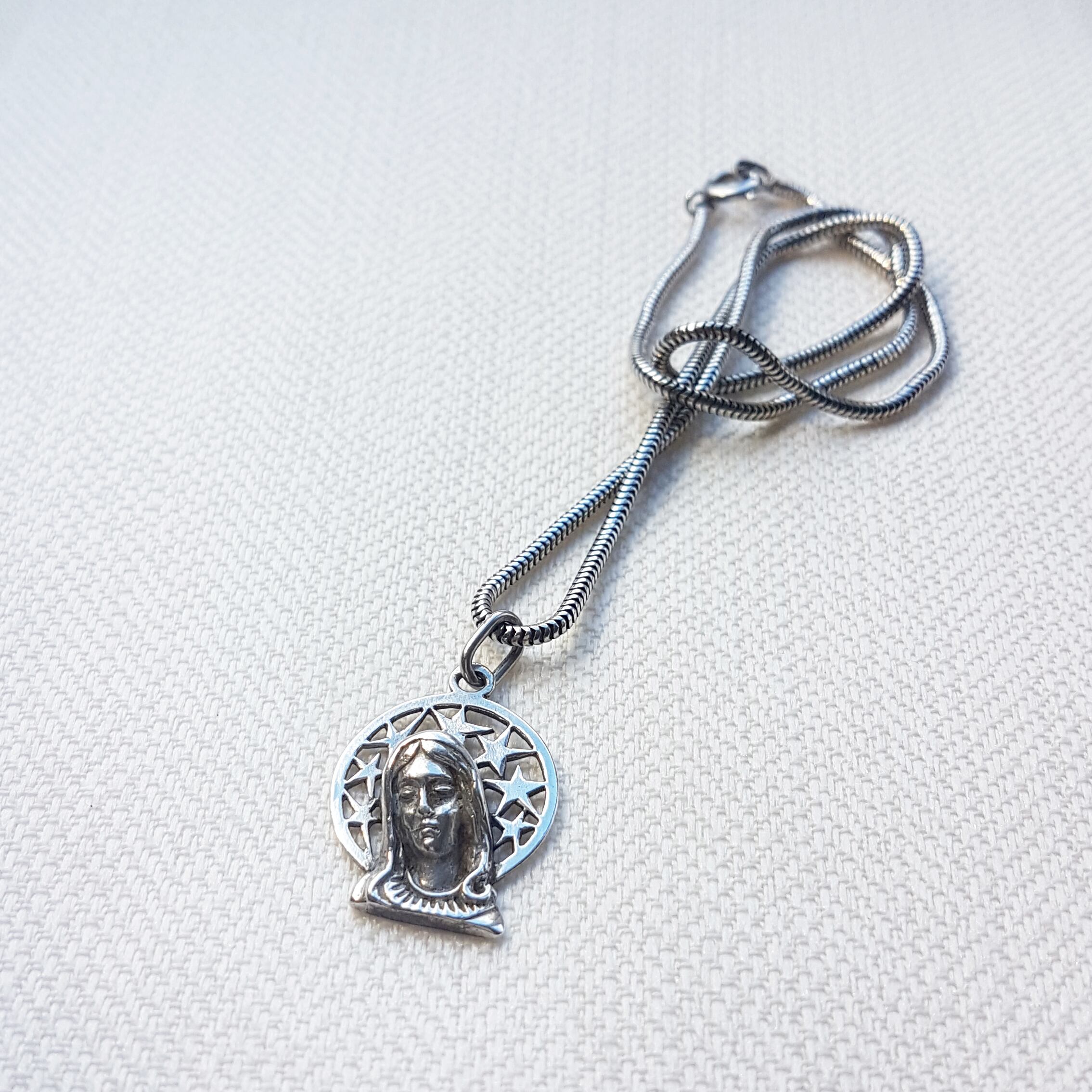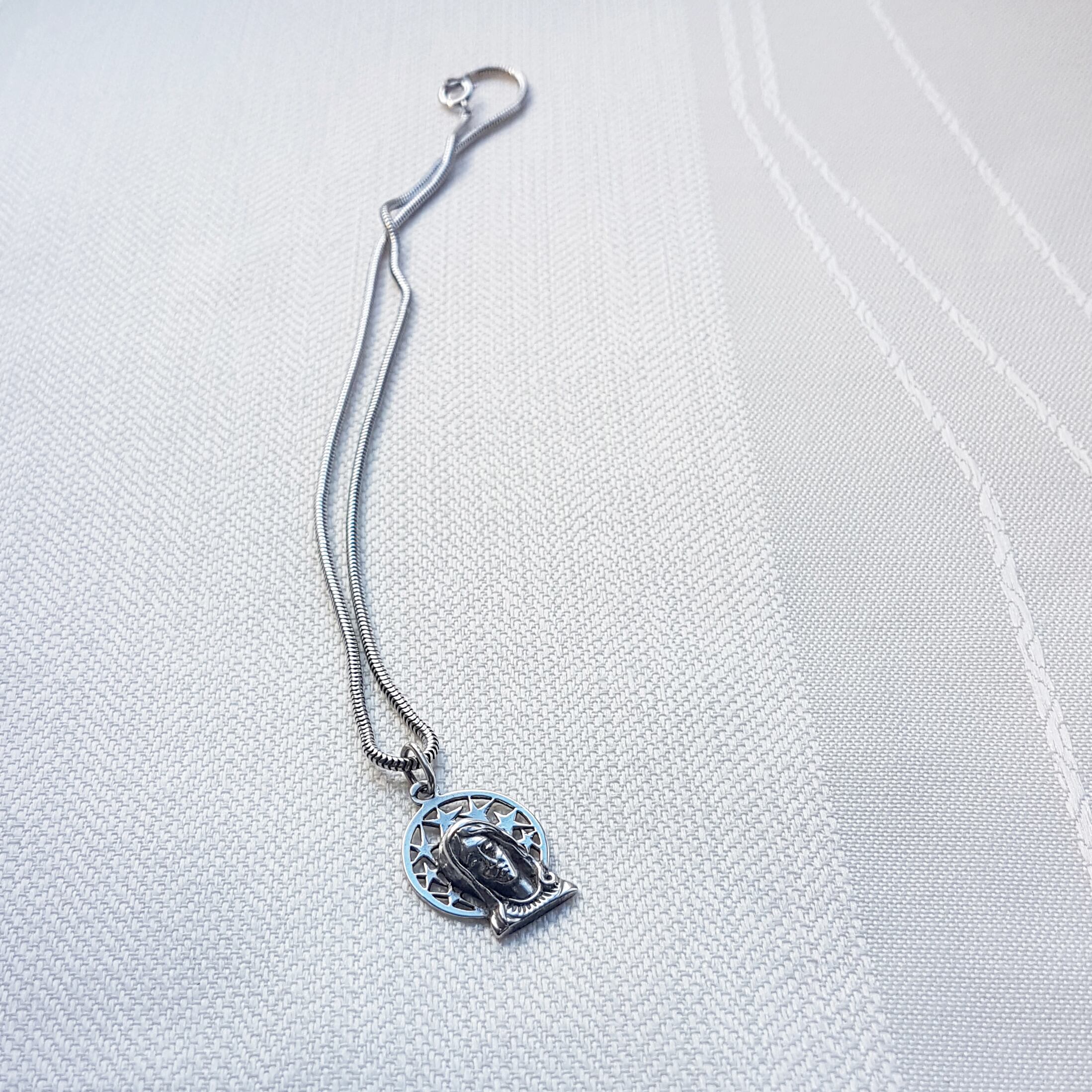 雰囲気のあるマリア像が素敵なペンダントは、1926年にイタリアで誕生したウノアエレというジュエリーブランドの品、シルバー800製であることを記す刻印も施されてあります。