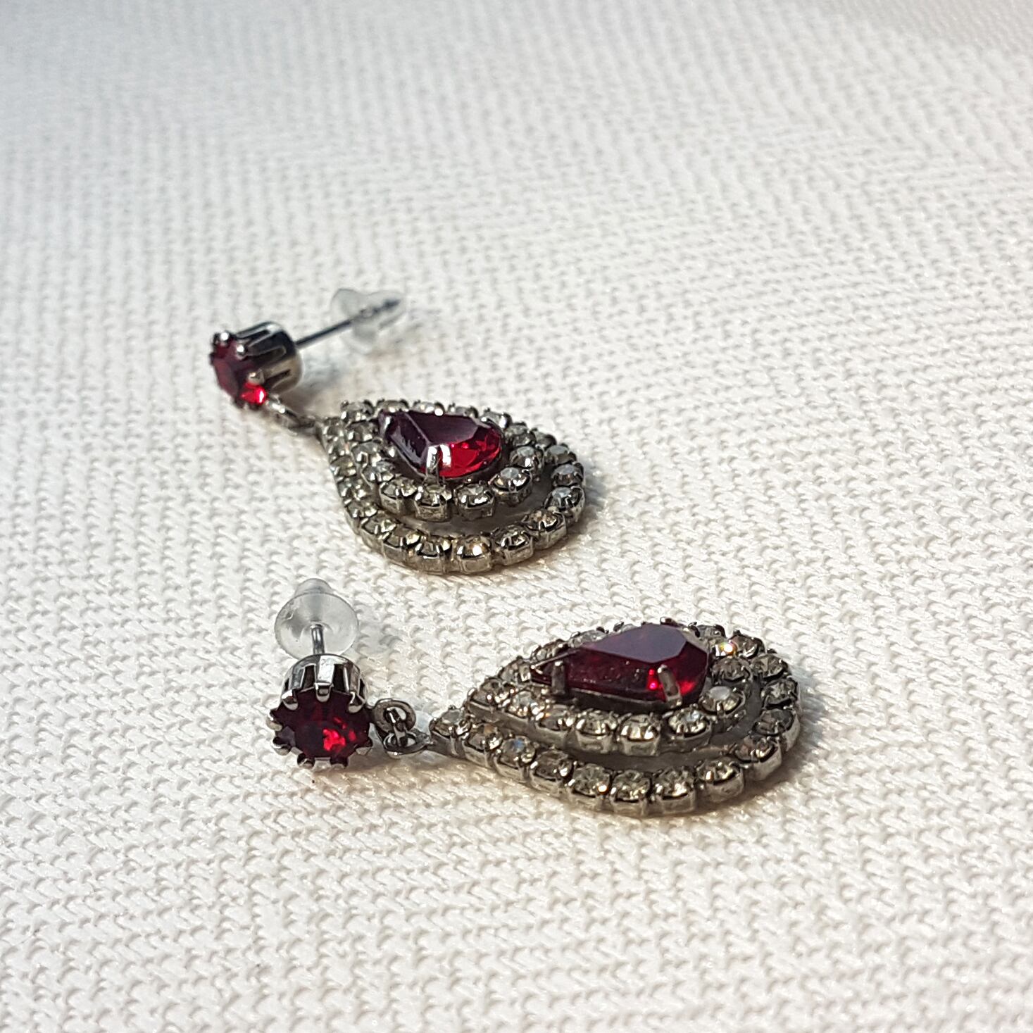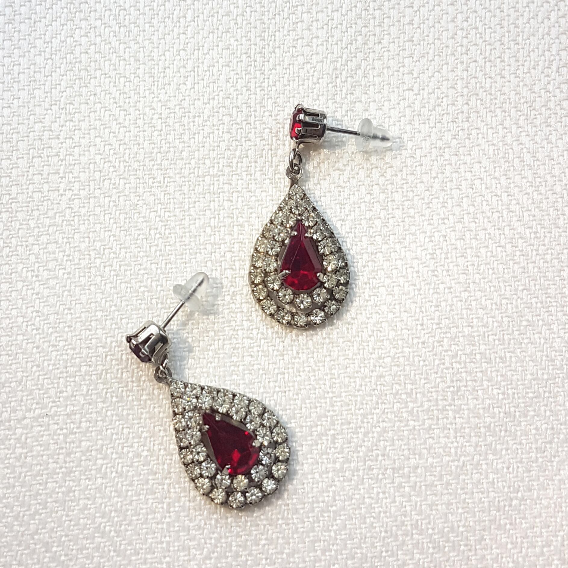 深みのある赤い石を囲むようにビジューが敷き詰められています。