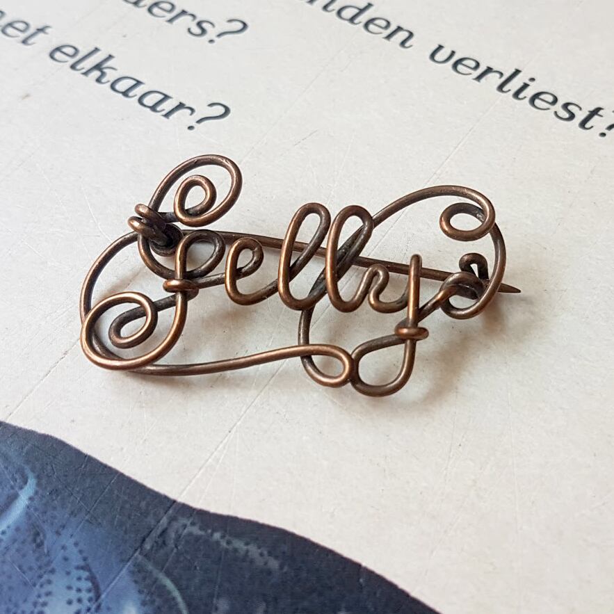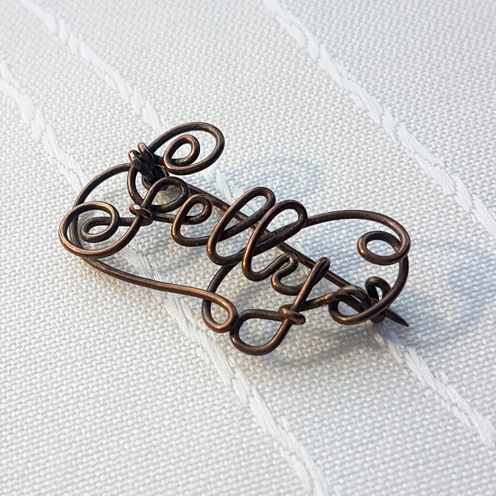 モチーフから留め具の針まで、全てが一本の銅線で構成されている、とても興味深いお品です。
