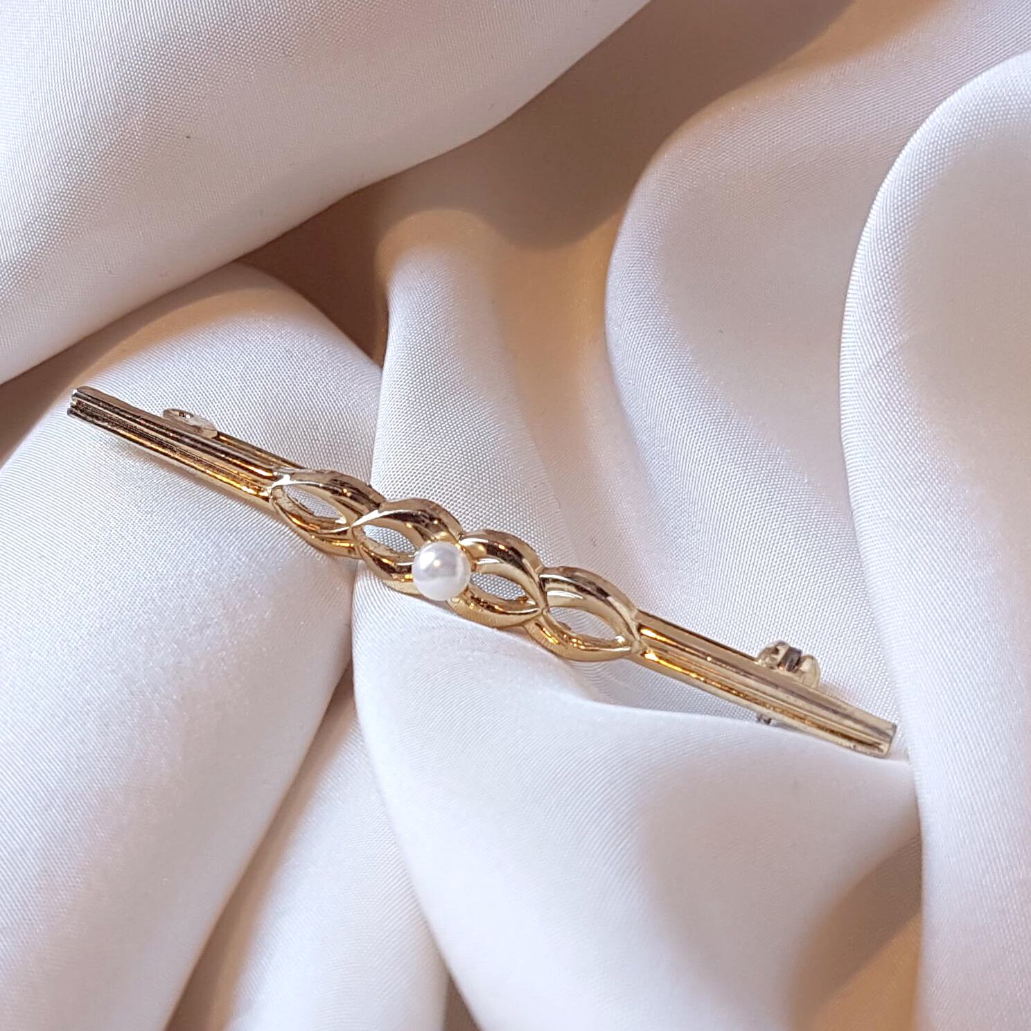 三つ編み細工のパールビーズブローチ (t-100)