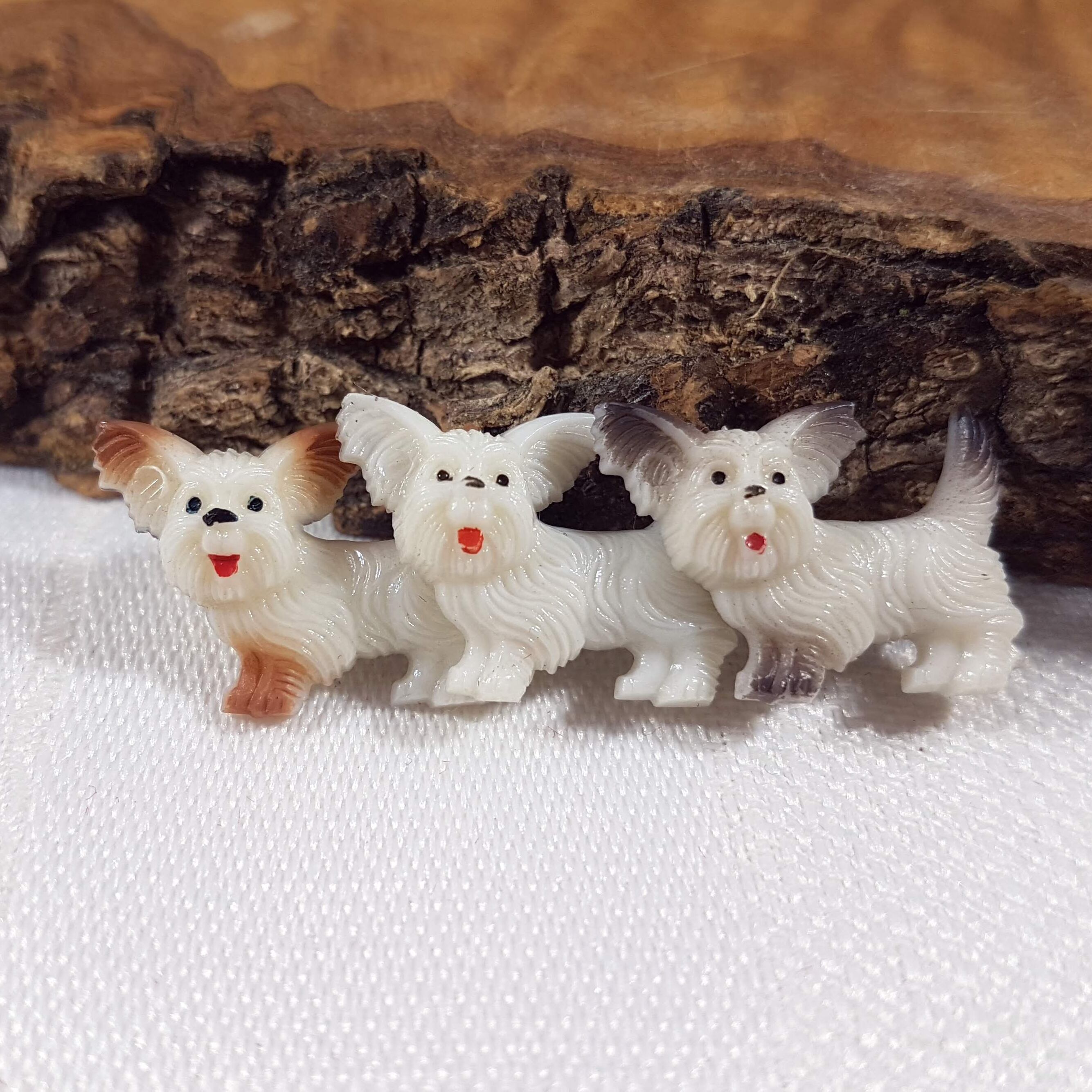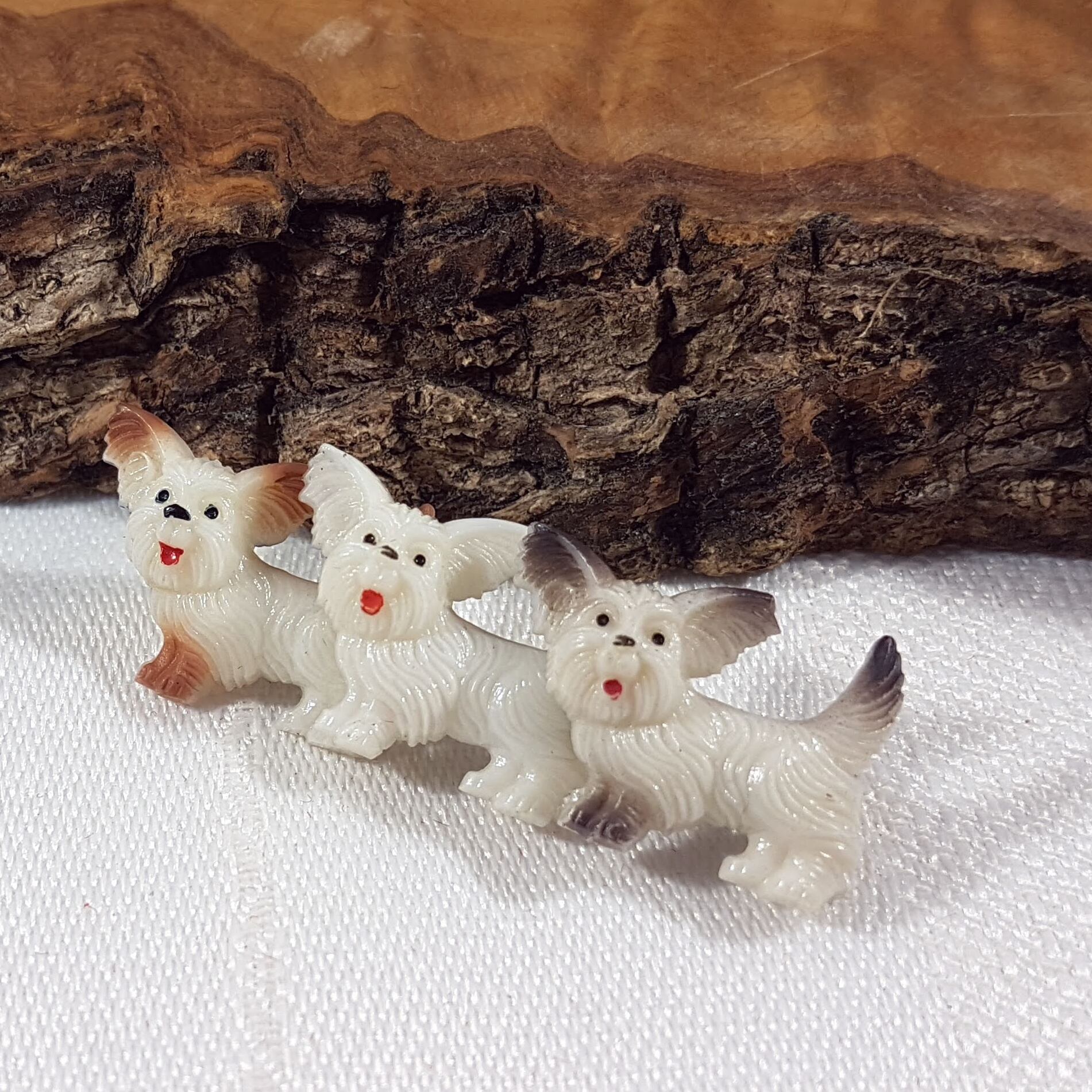 russian tsvetnaya bolonka というロシア原産の犬が三匹並んだブローチです。