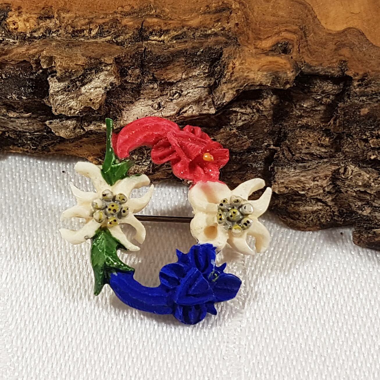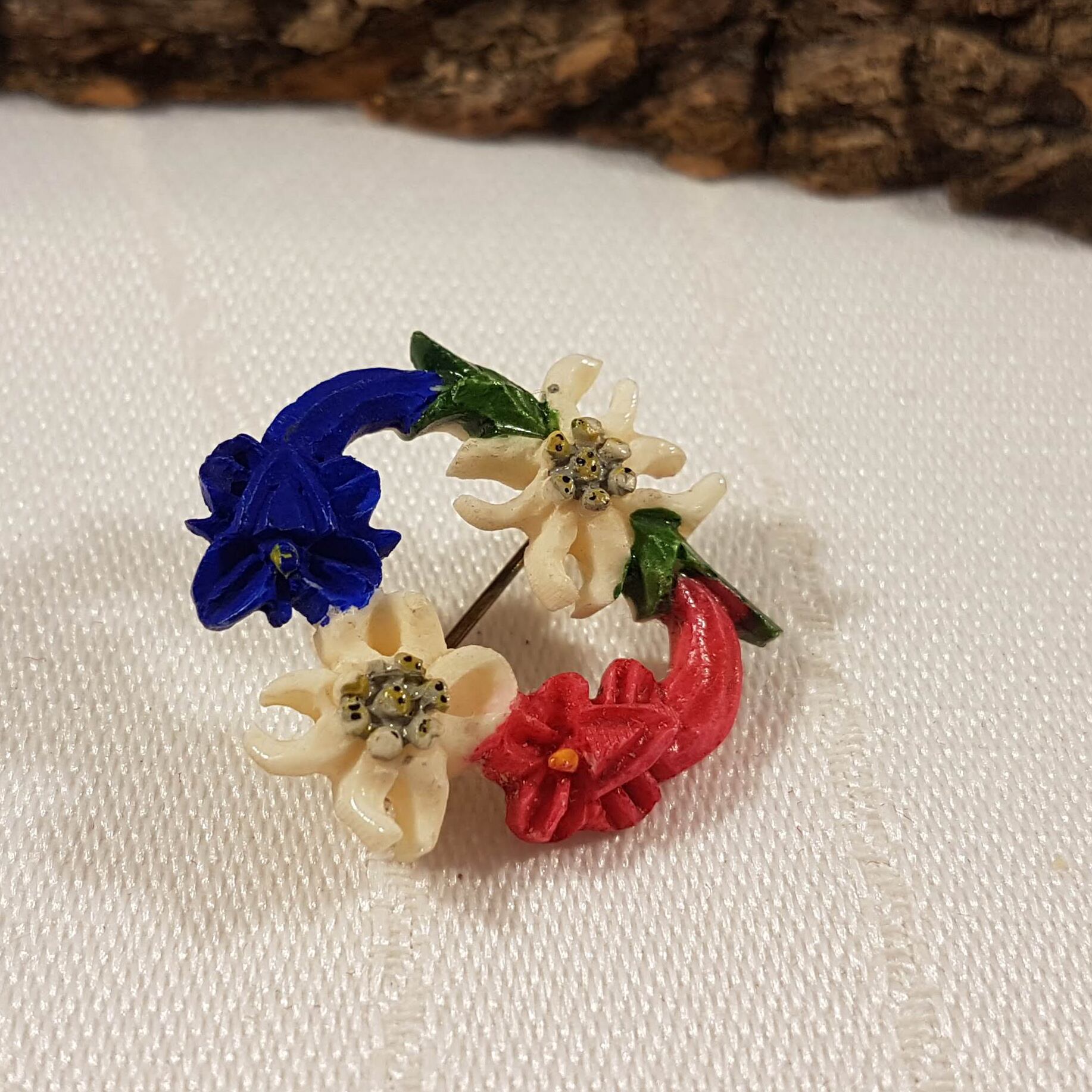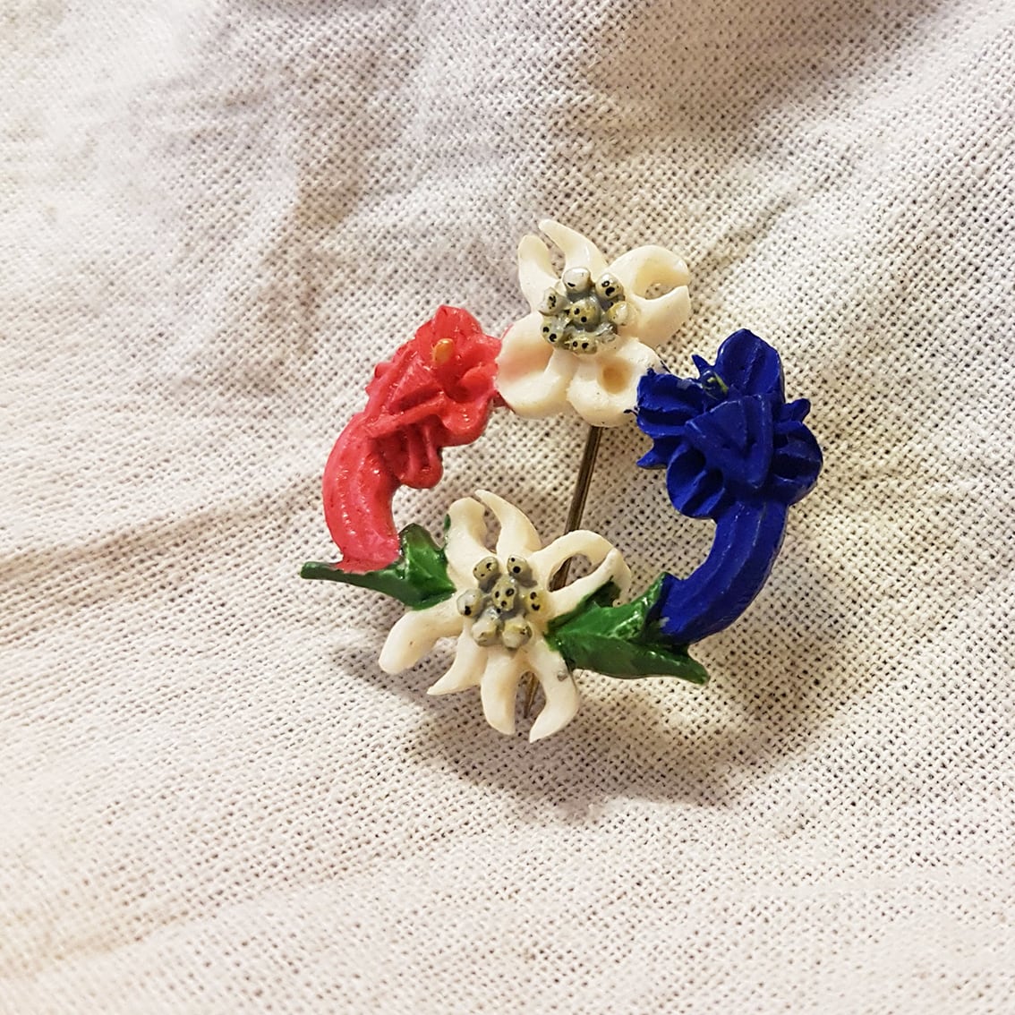 4つの花がデザインされたヴィンテージ製のブローチです。