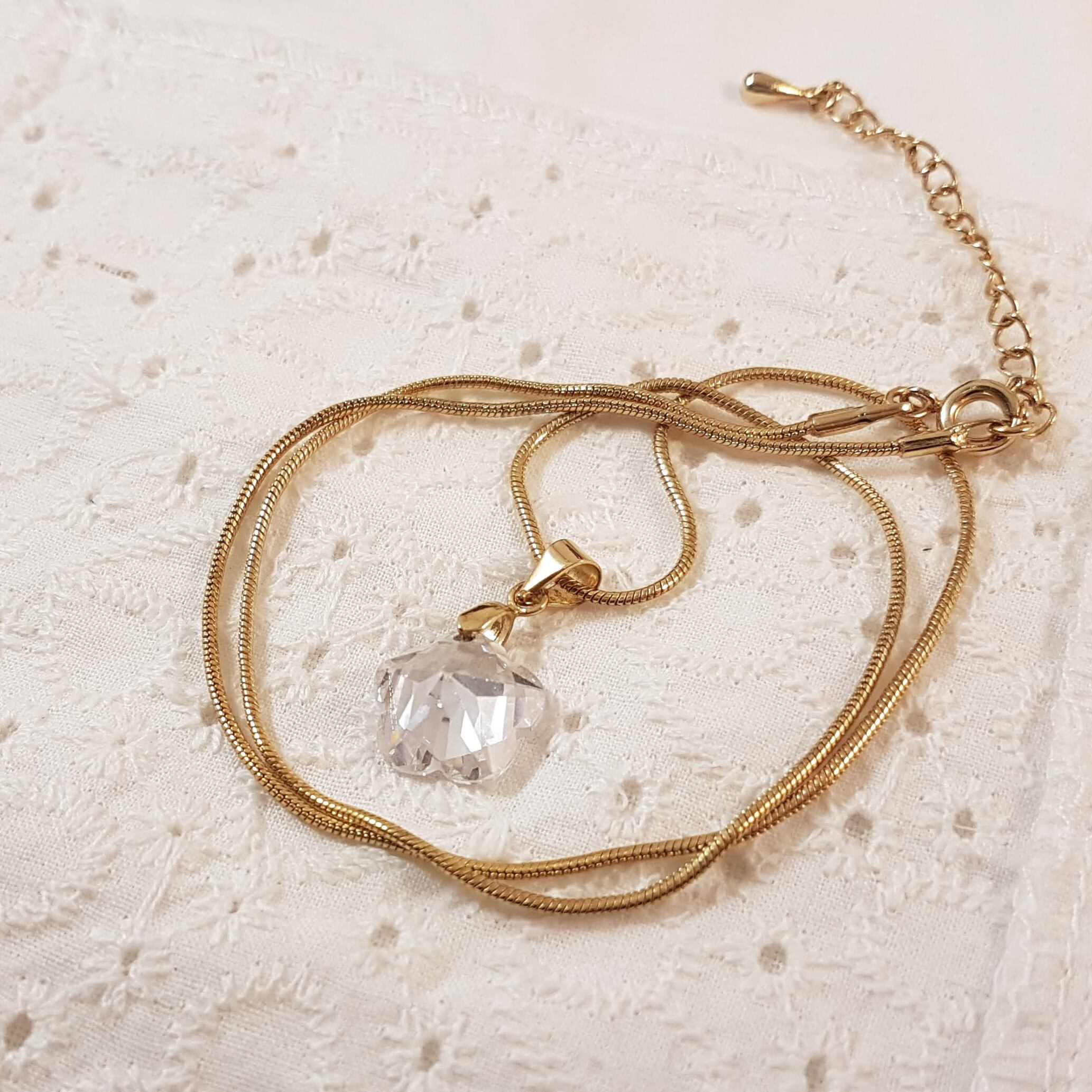 スネークチェーンと透明なお花の合わせが愛らしいです。