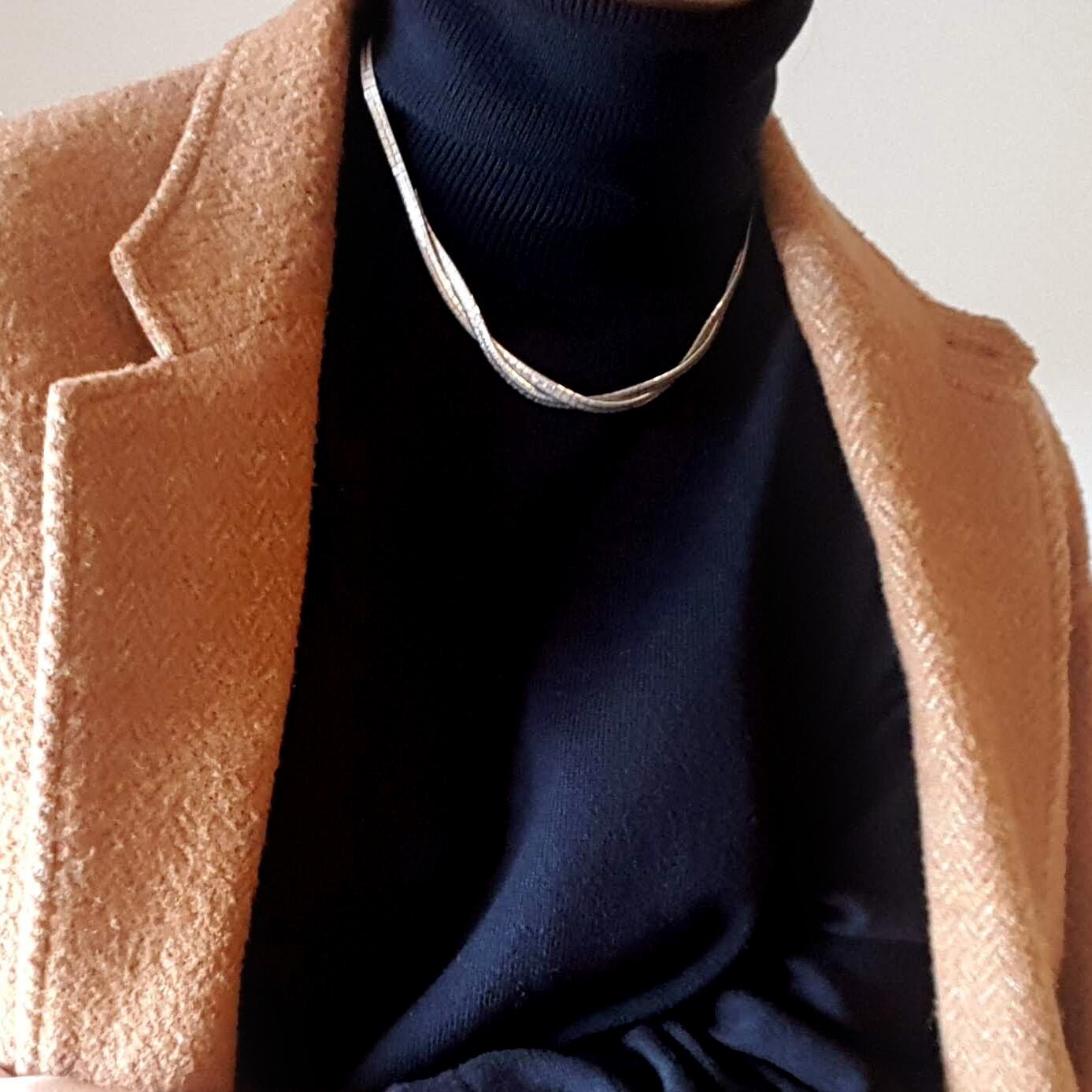 タートルネックなどで合わせていただくと、ネックレスもより美しく綺麗に映えそうです。