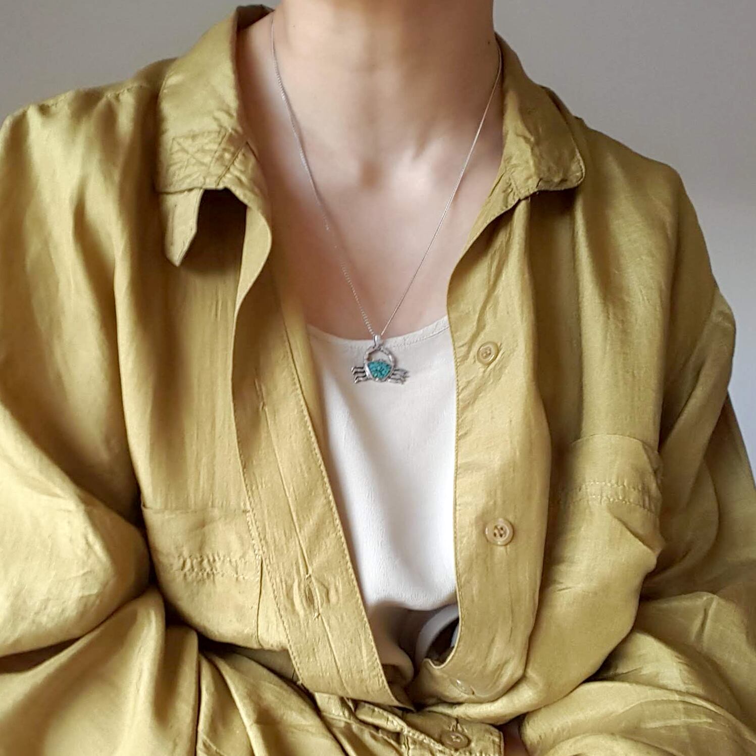 Turquoise crab 蟹座のシルバーネックレス (z-72)