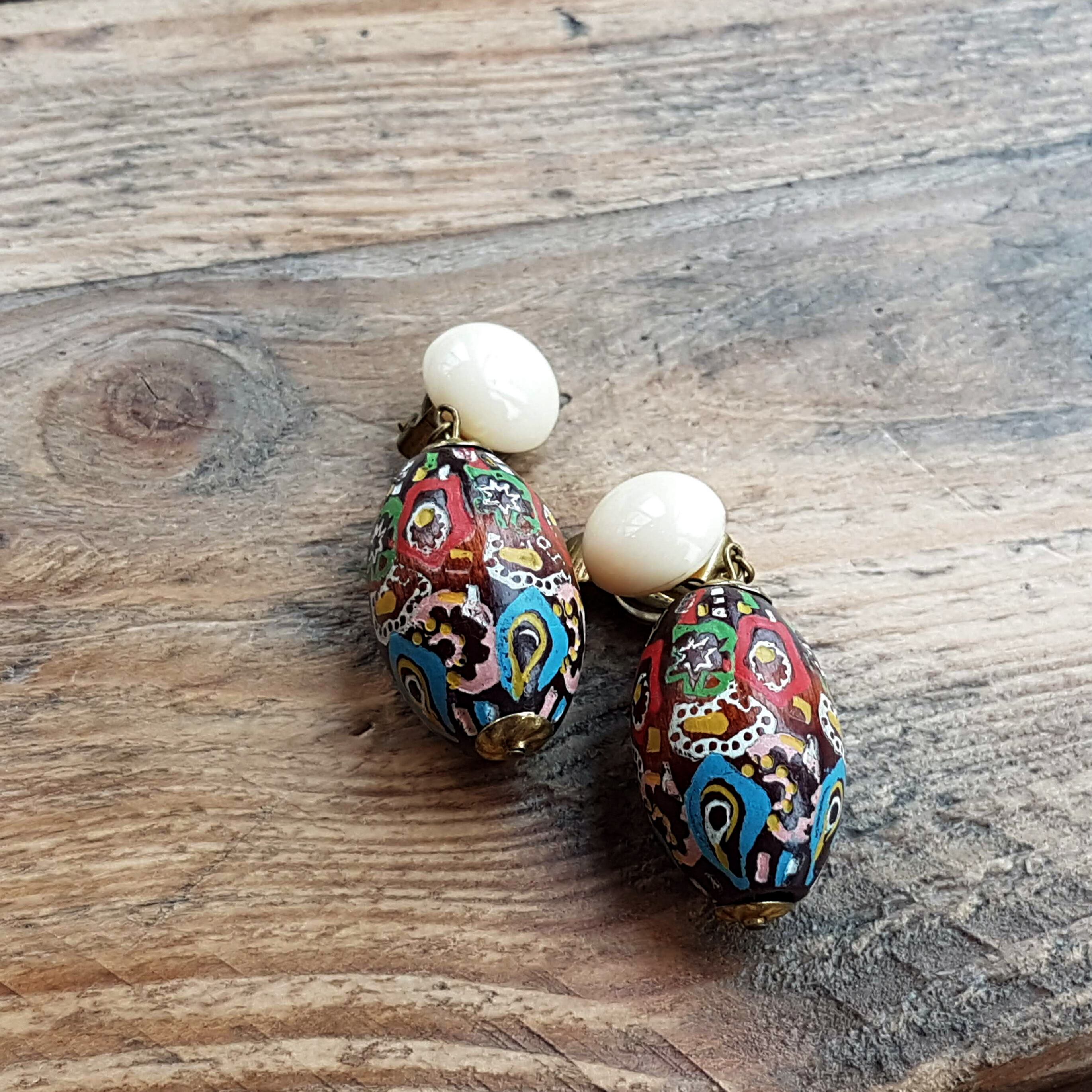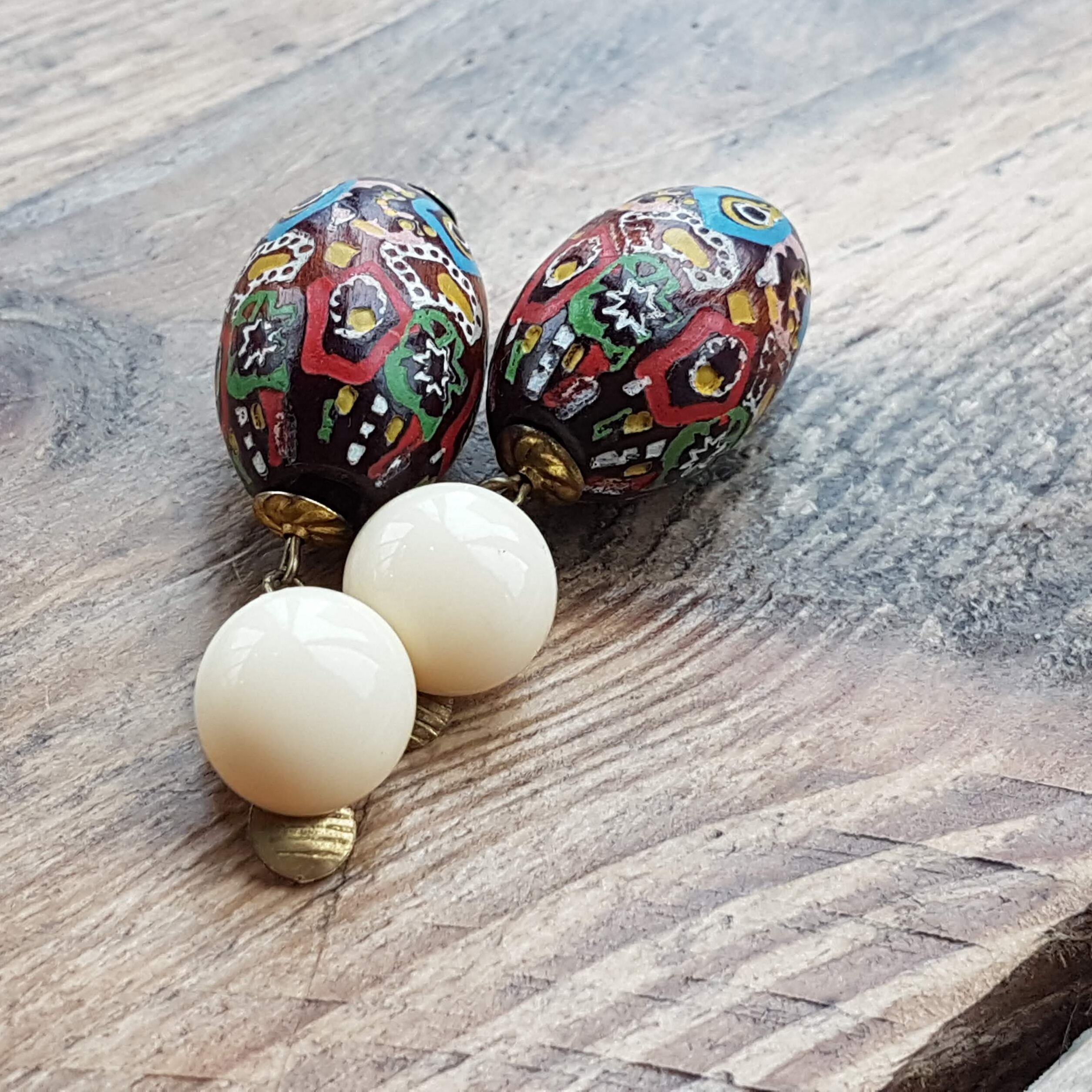 20世紀半ばに、軽さを重視した木製モチーフをガラス風に見せるイヤリングが流行した時期がありました。