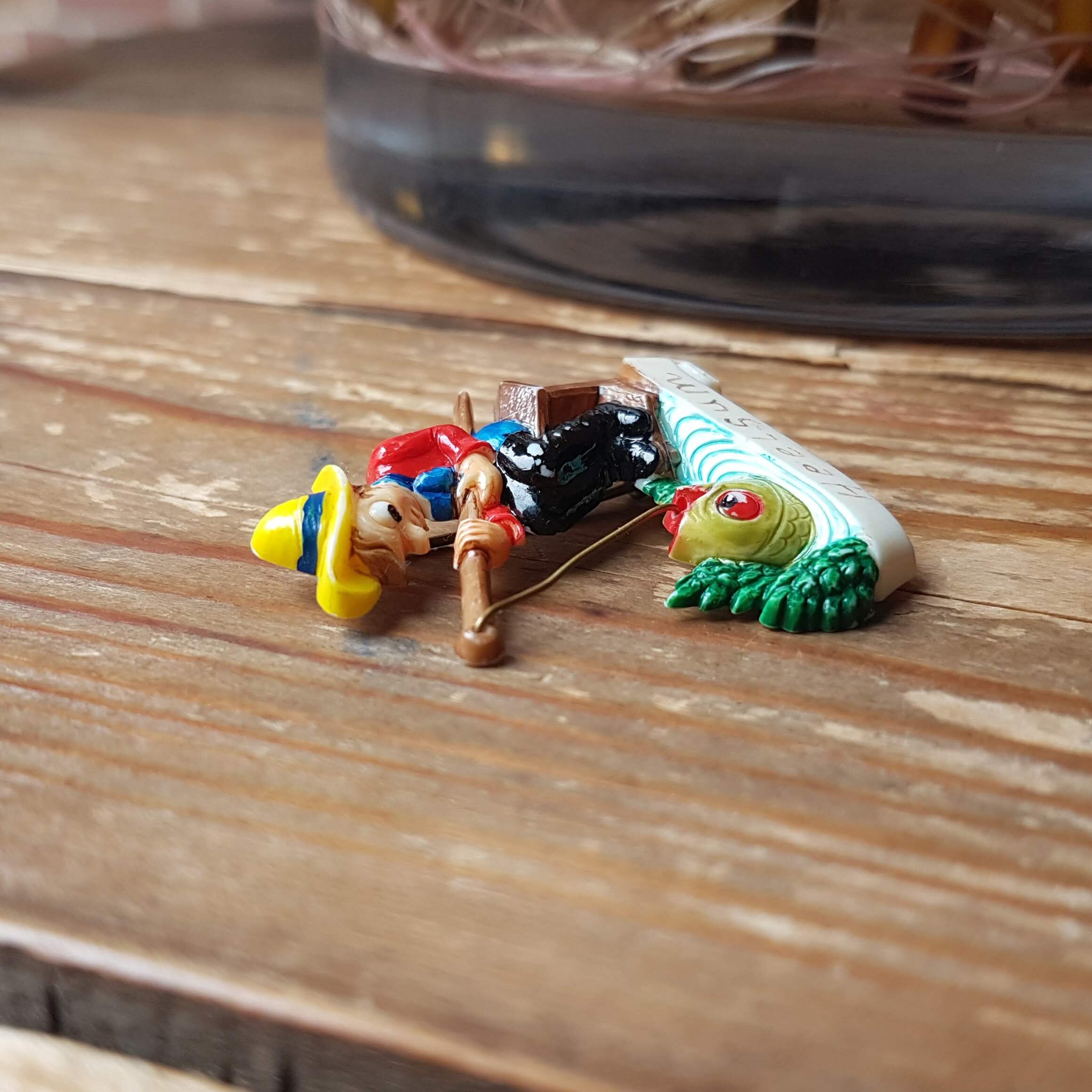 なんだか不気味?な魚が釣れて、驚いているような様子。クスッとしてしまう一品です。
