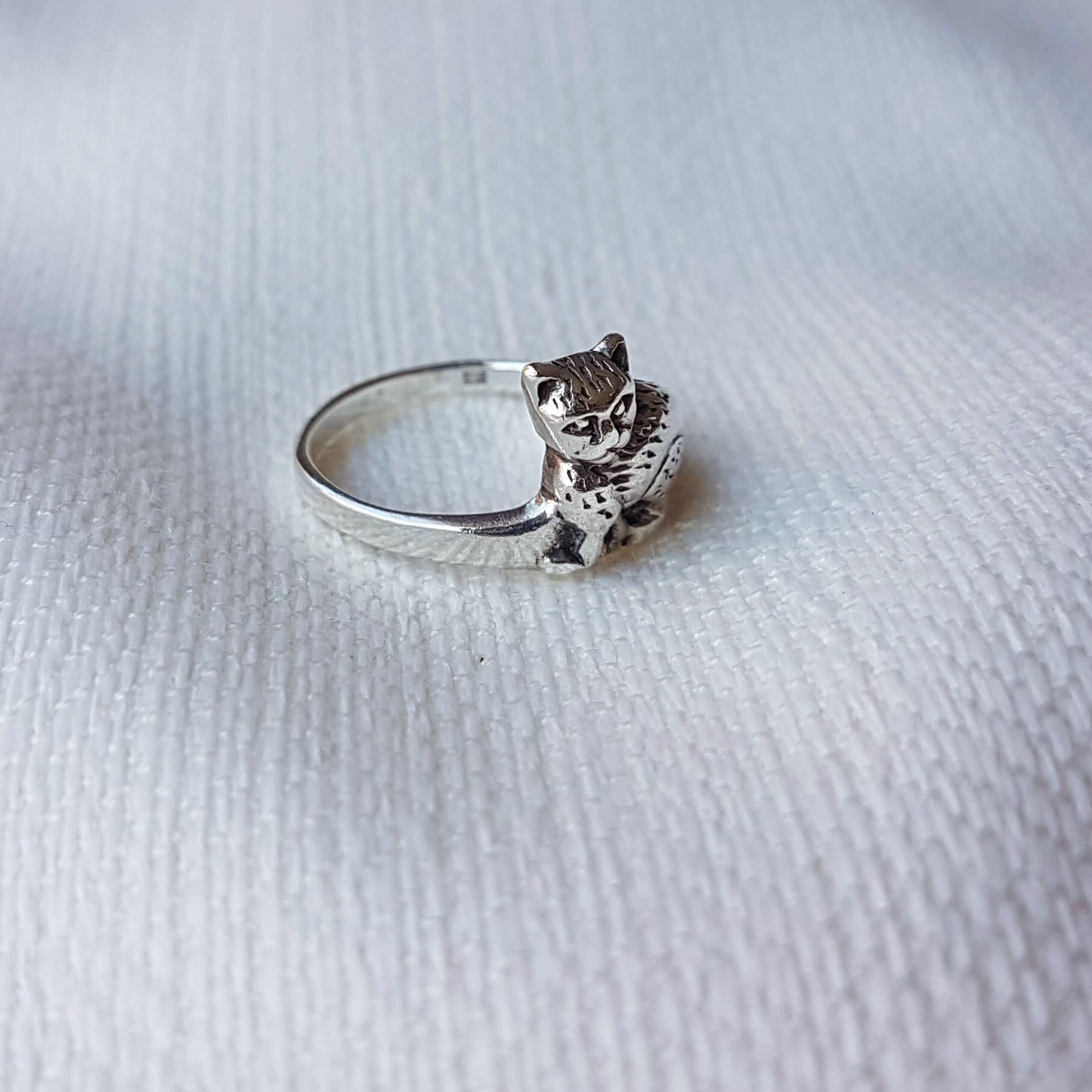 細かく彫金された毛並みや、足元、少し不機嫌にも見える表情。全てが愛おしい。