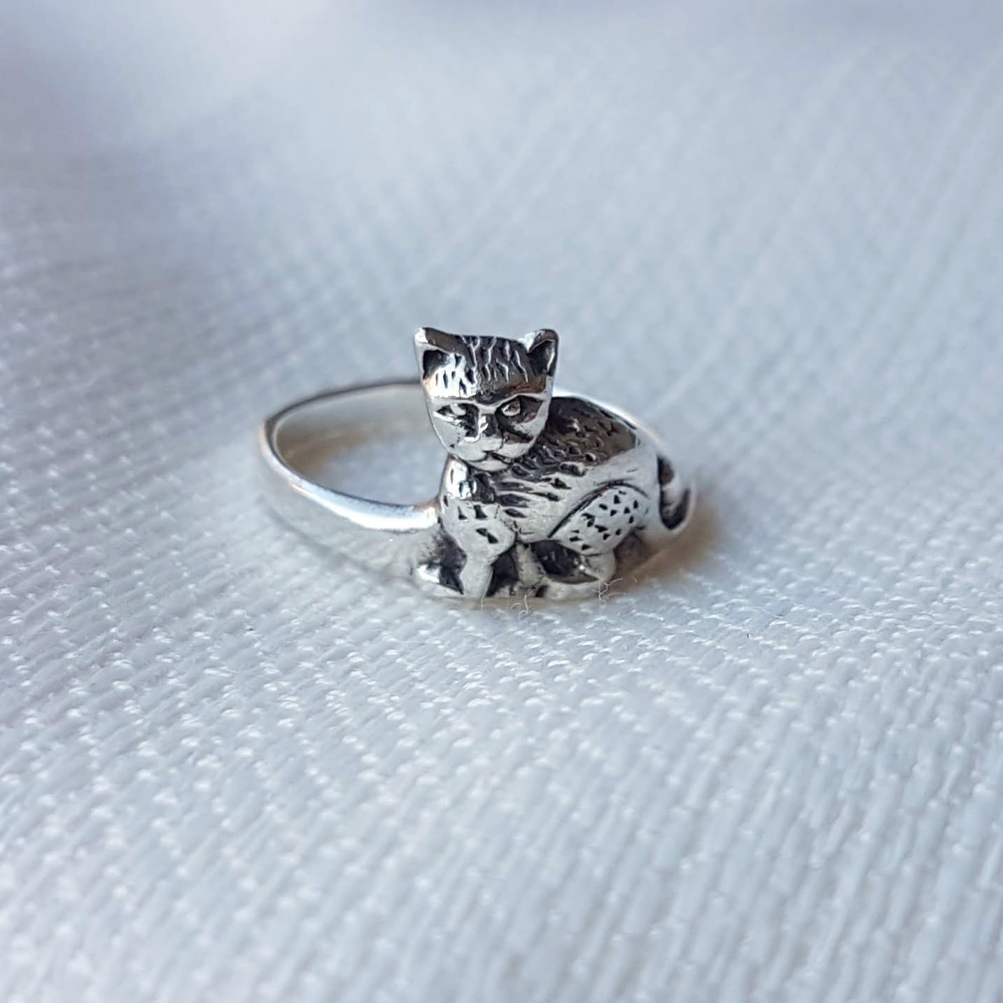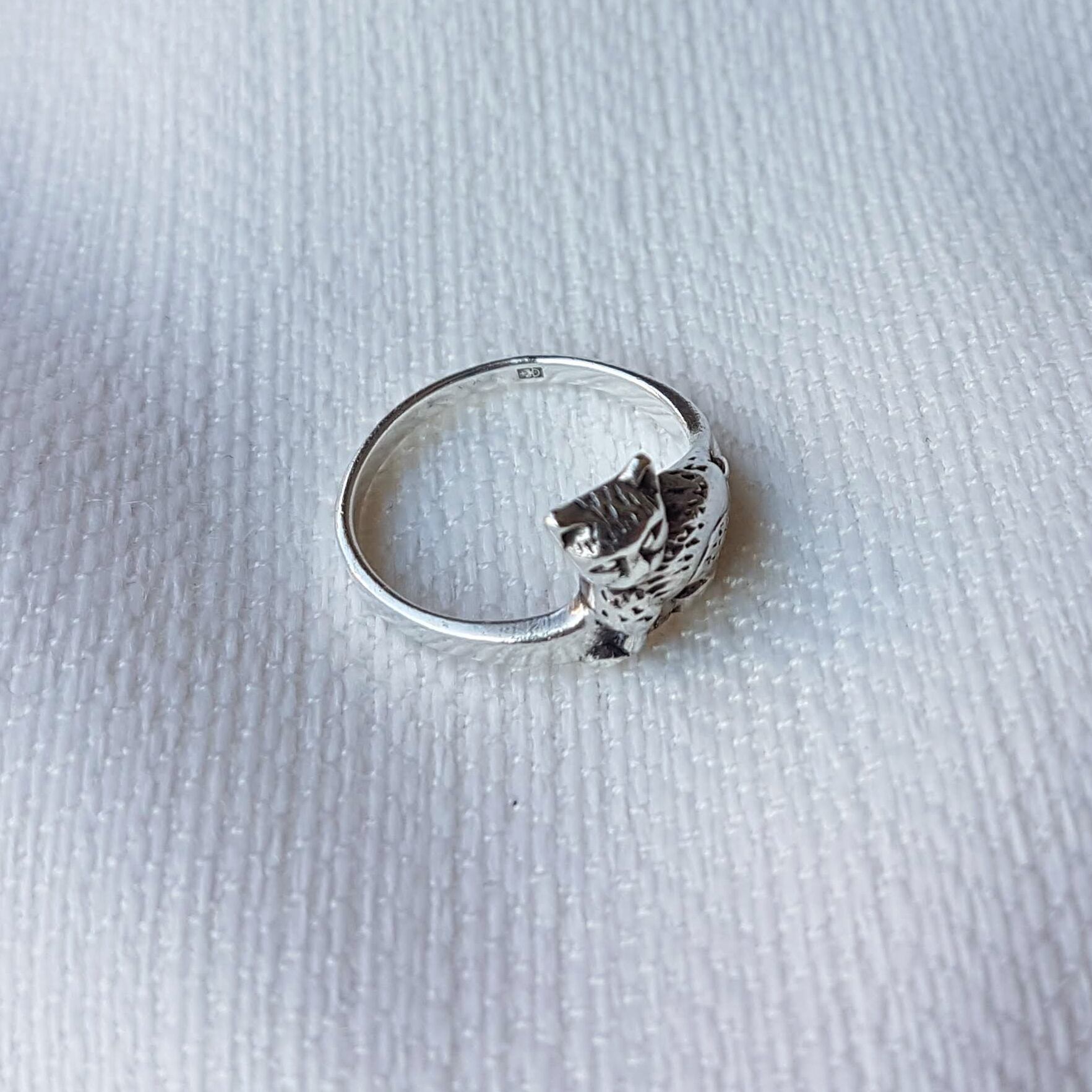 山猫がこちらを振り向いている瞬間が切り取られた、とってもかわいいヴィンテージリングです。