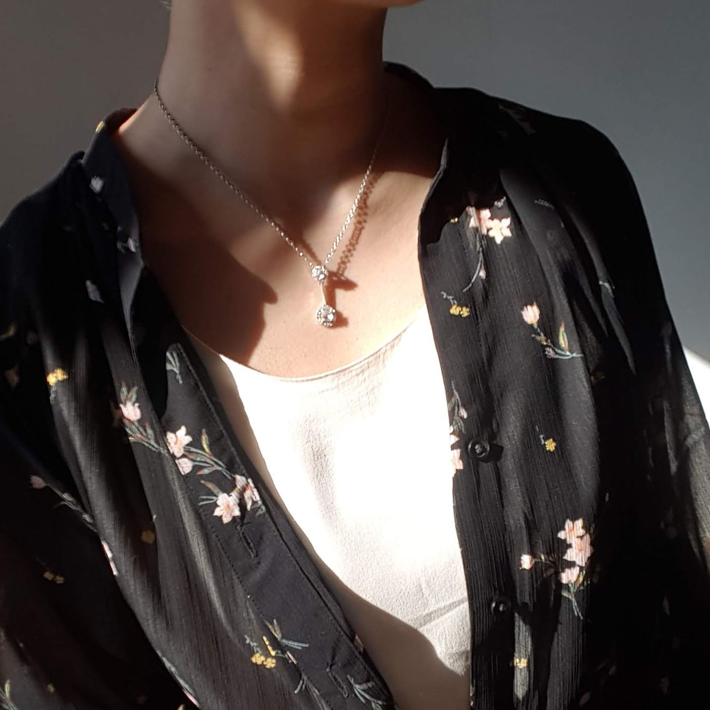 胸元でさりげなく揺れるデザインが印象的な一品です。