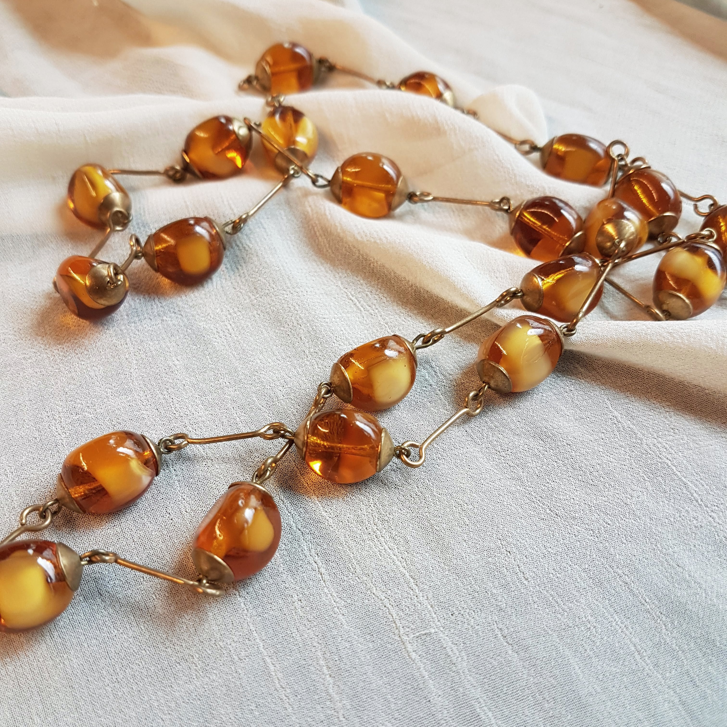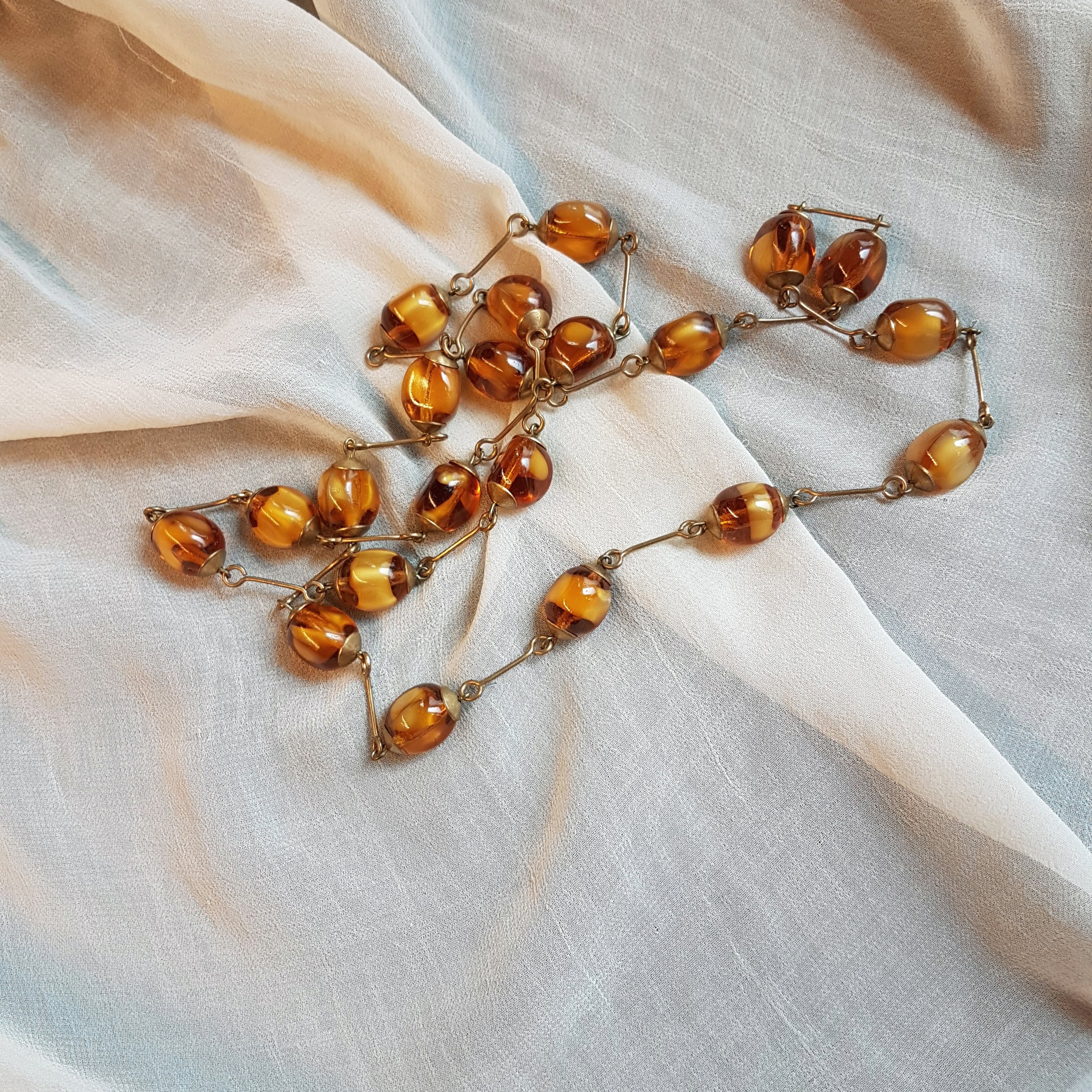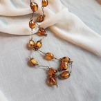 マーブル柄のアンバーカラーが素敵なロングネックレスです。