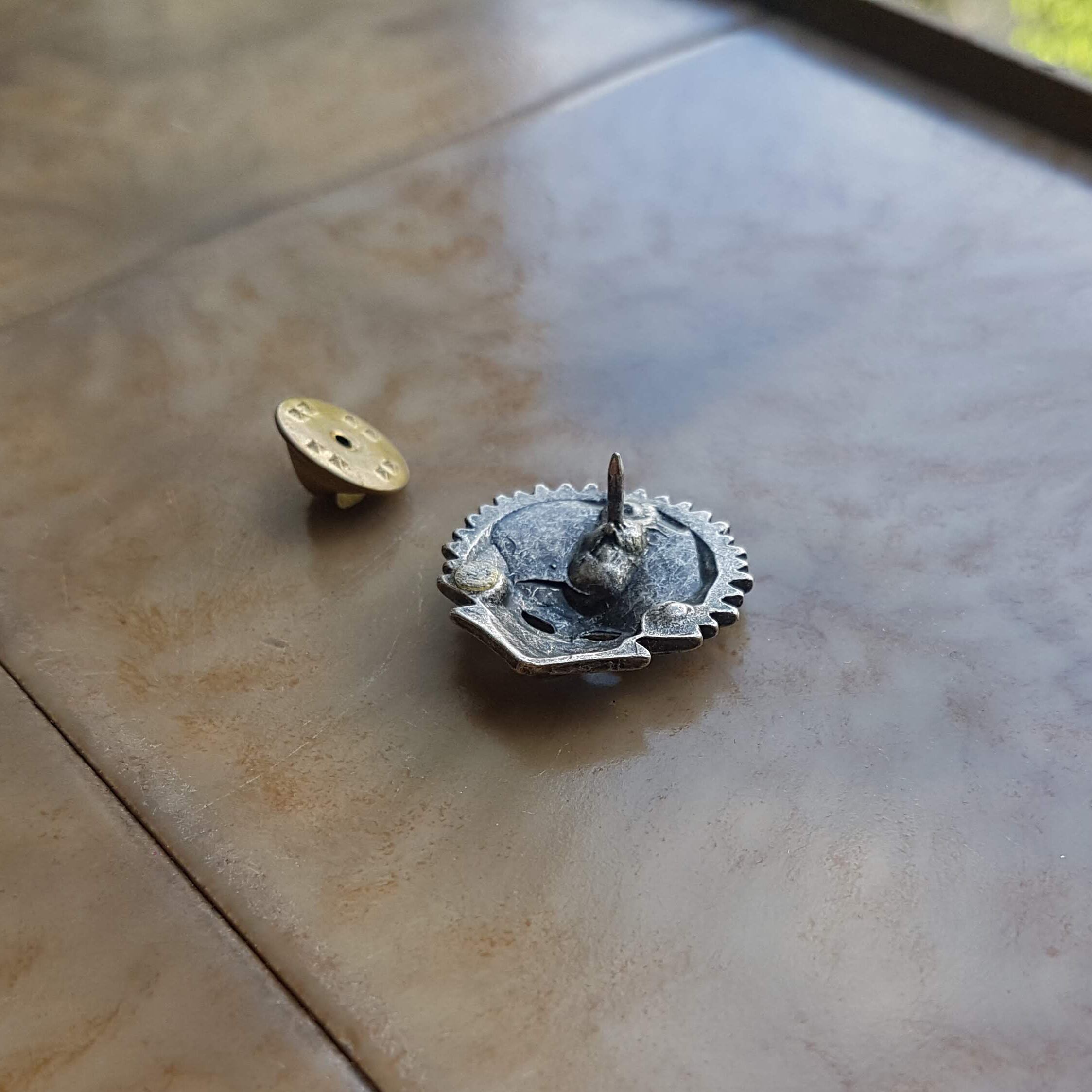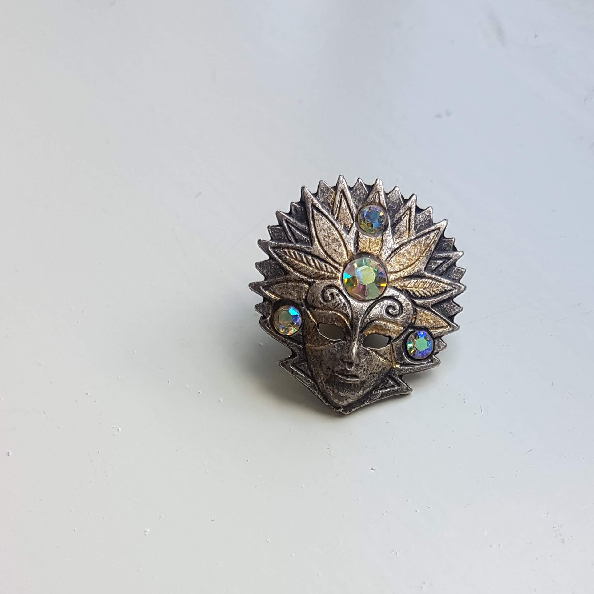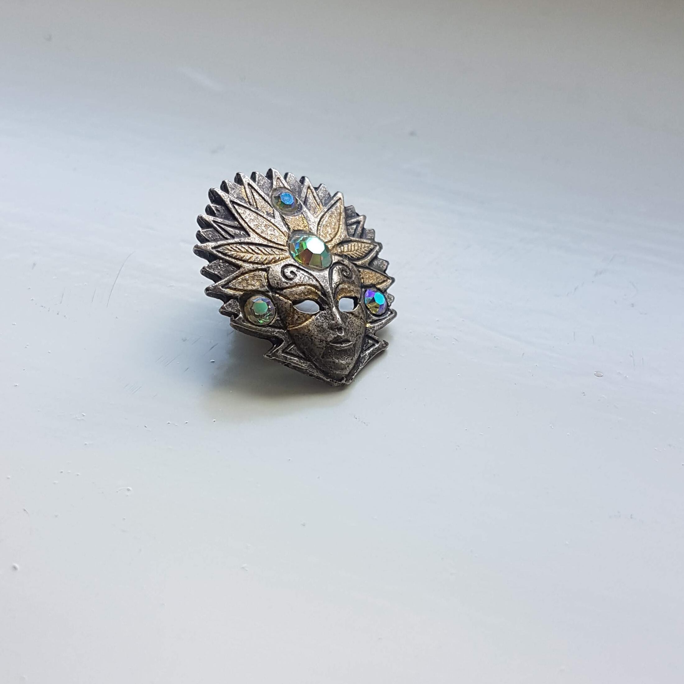 仮面モチーフのピンバッチです。