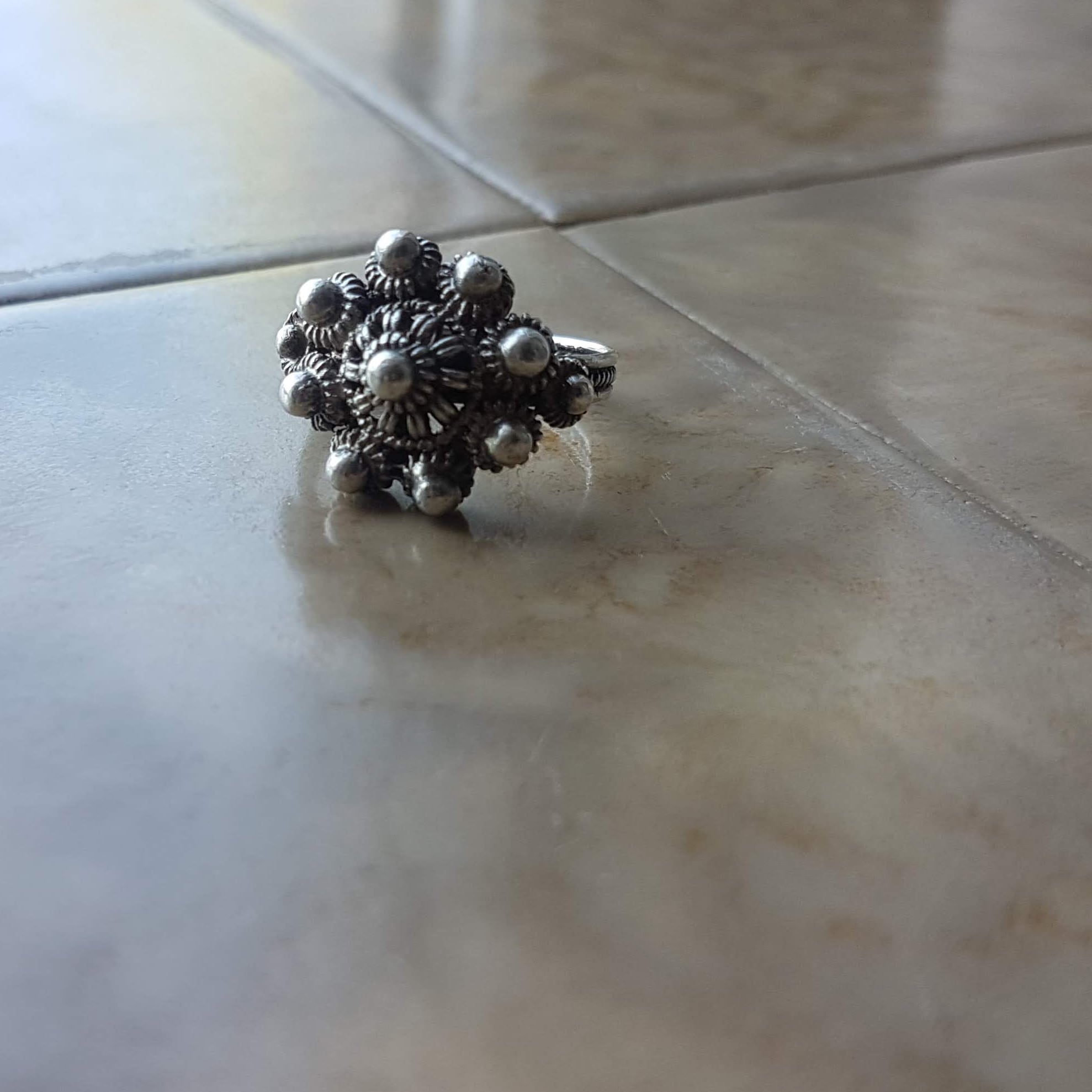 オランダ南部の伝統装飾「ゼーラントボタン」がモチーフとなったシルバープレート製のリングです。