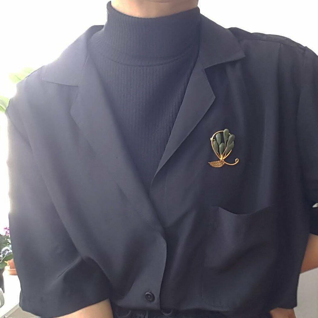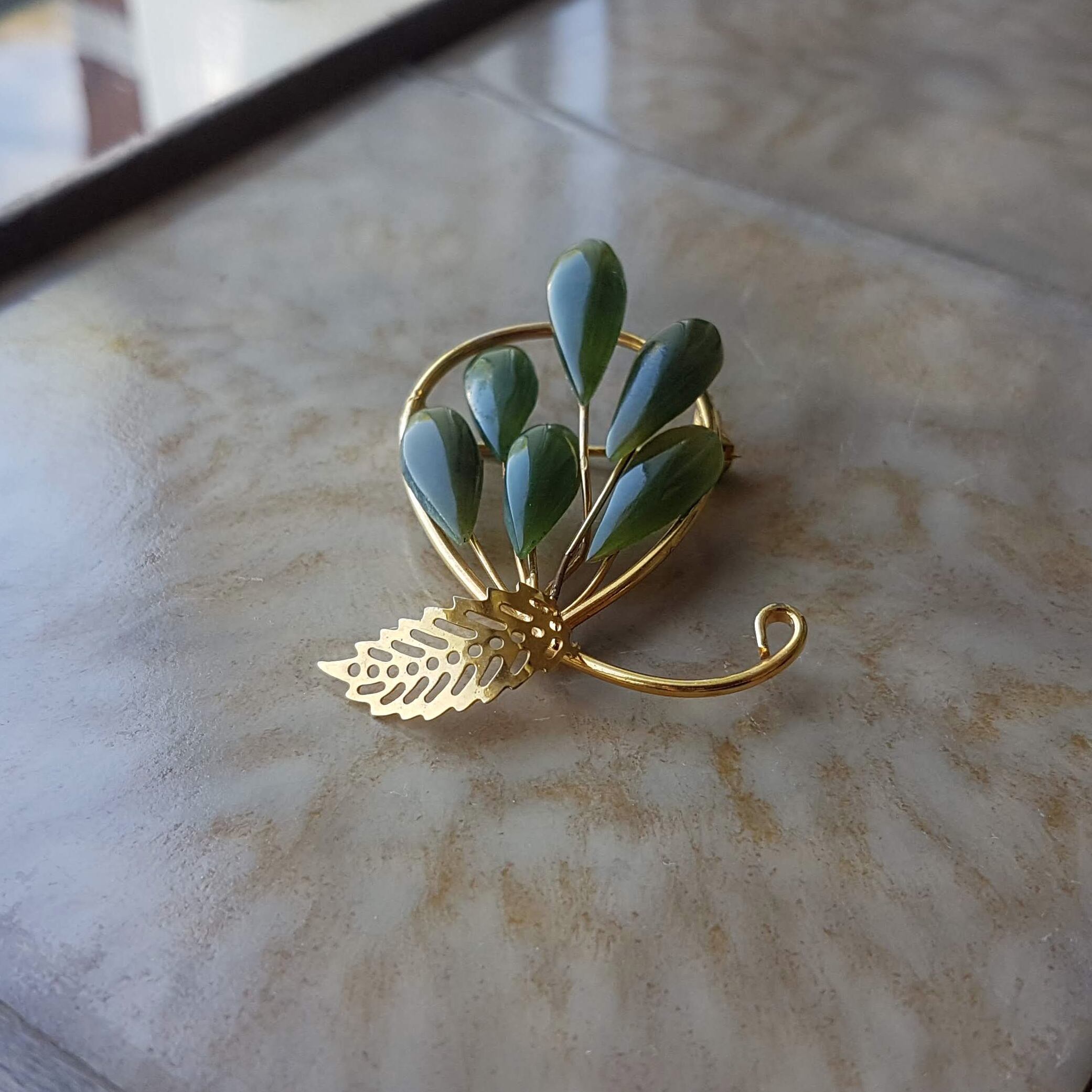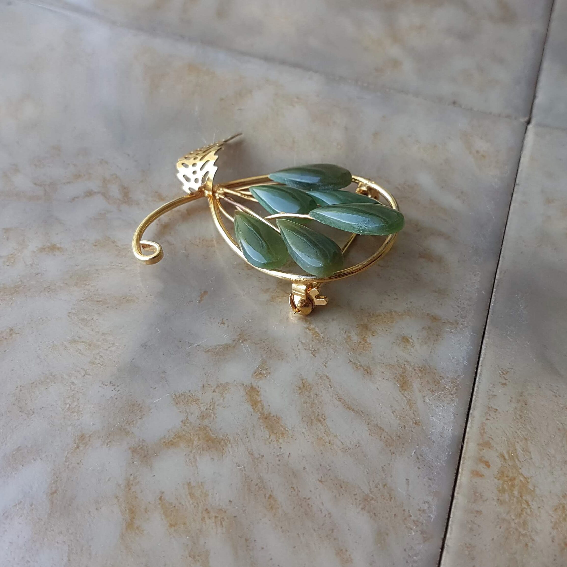微かに透け感のある緑色×彫金の組み合わせが上品な印象の一品です。