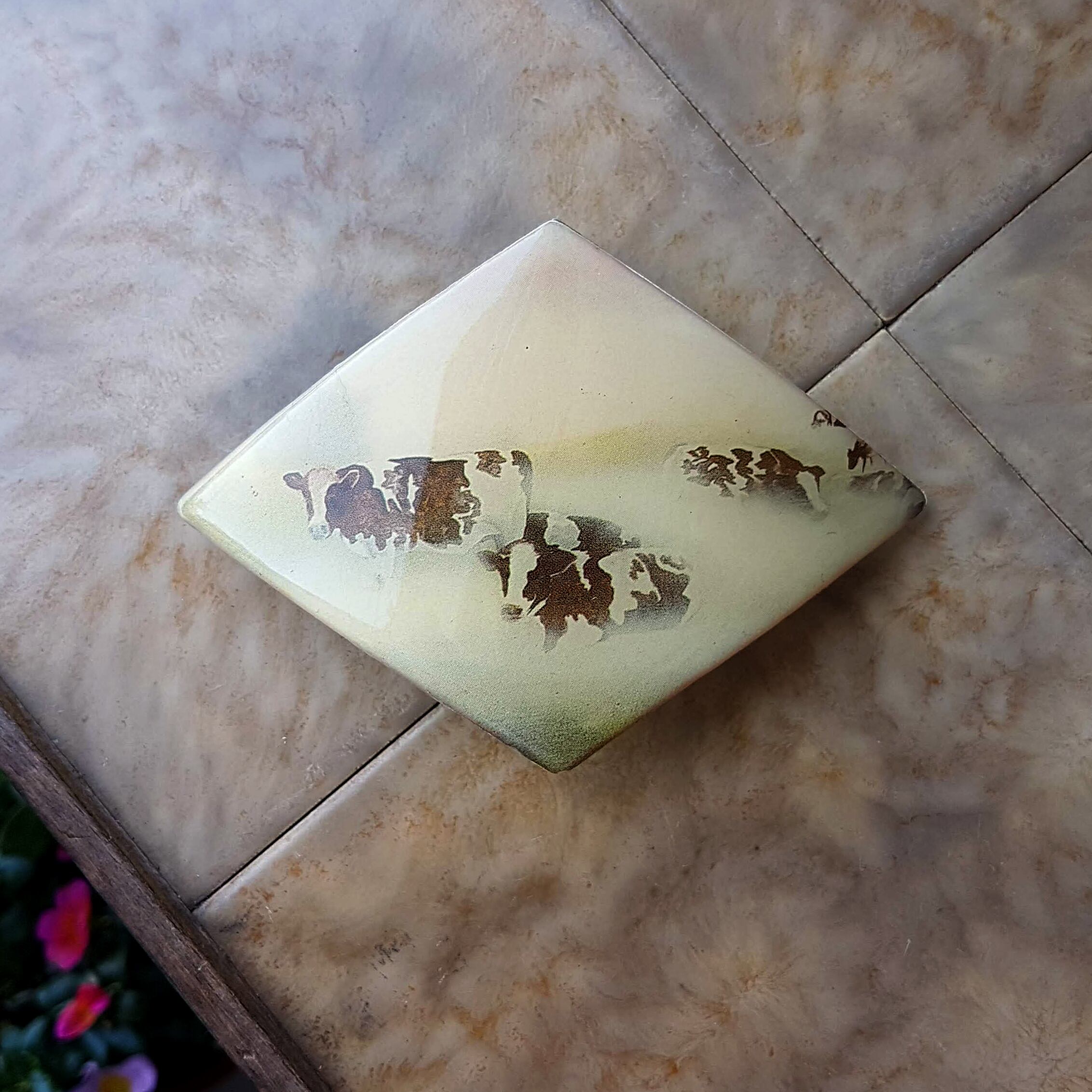 クリーム地にグレージュがかったブラウンで牧場の様子が描かれてあります。