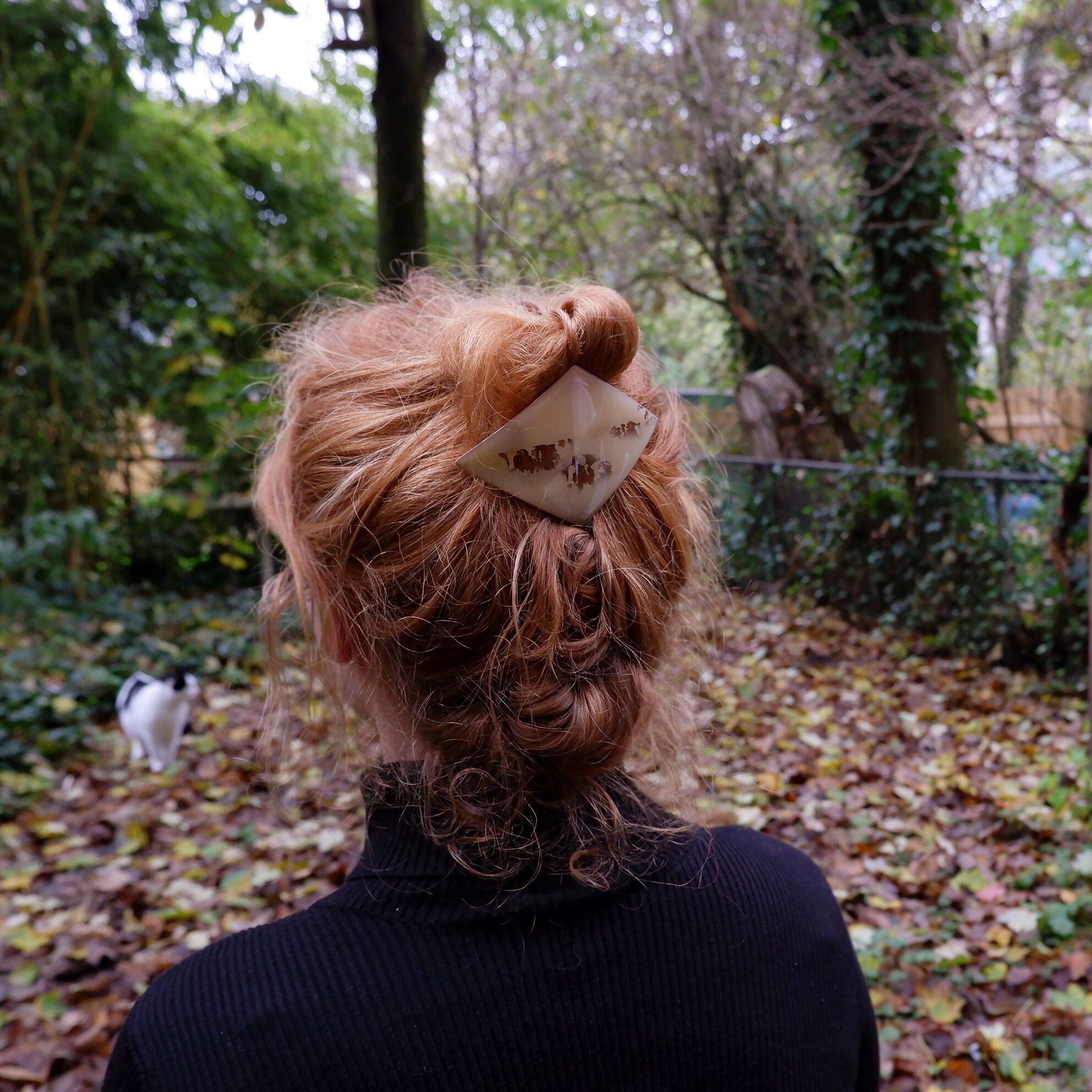 留め具にMADE IN FRANCEと刻印されたフランス製のバレッタです。