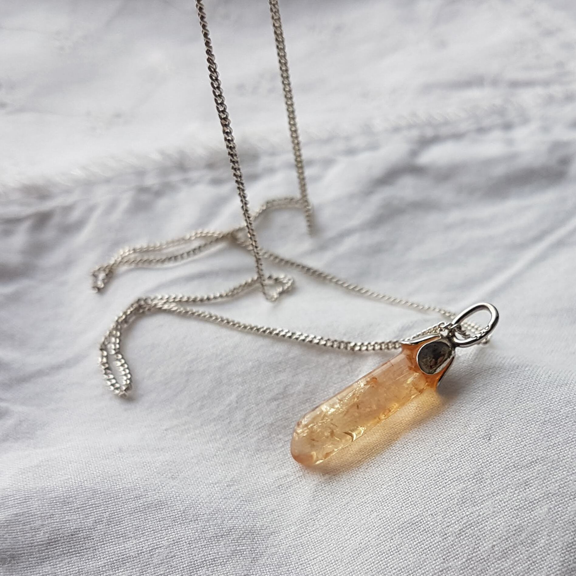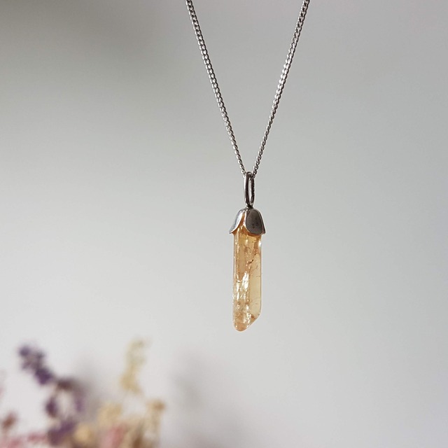 黄水晶という和名を持つ、シトリンクォーツがモチーフとなったシルバー製のネックレスです。