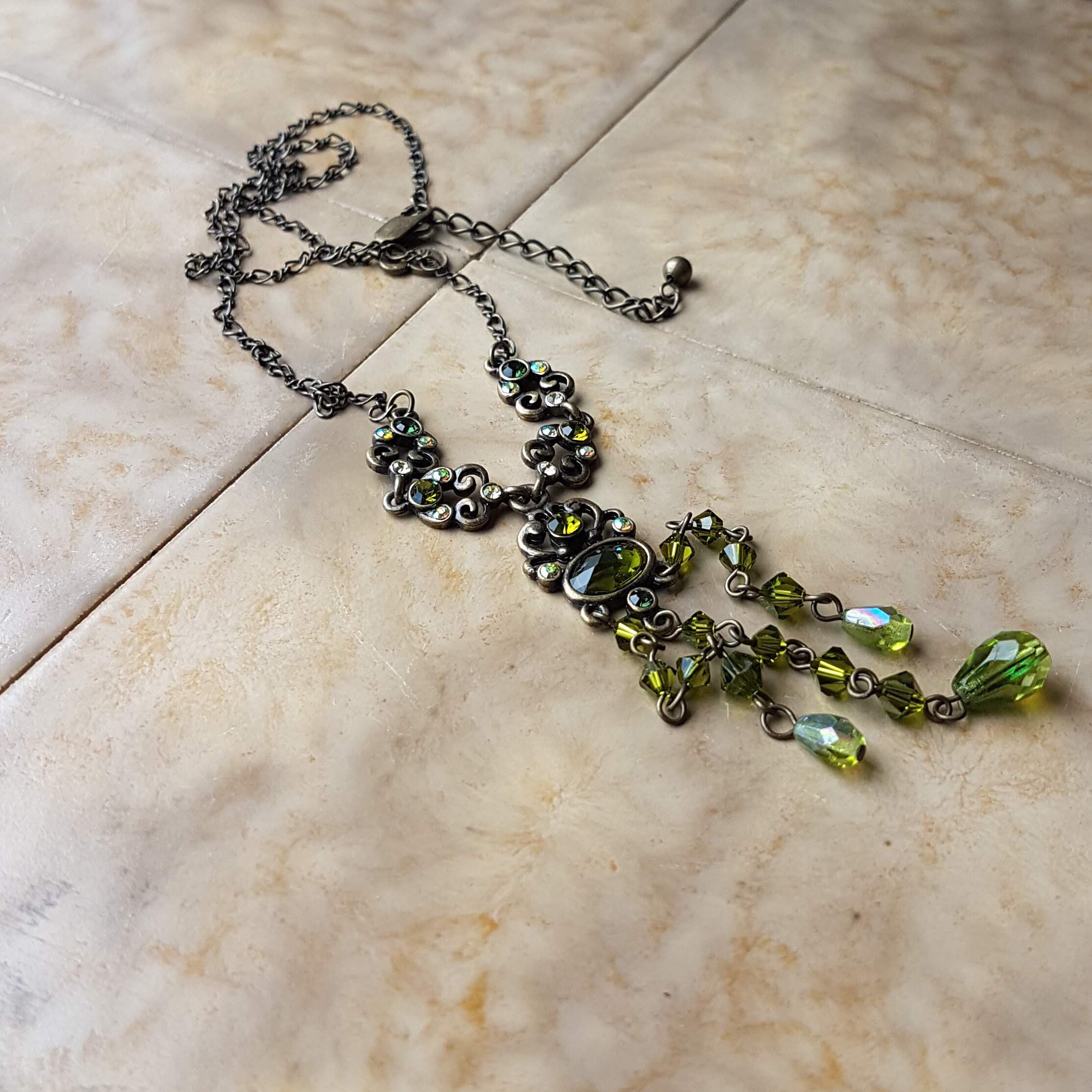 動きのあるガラスビジューペンダントの真鍮製ネックレスです。