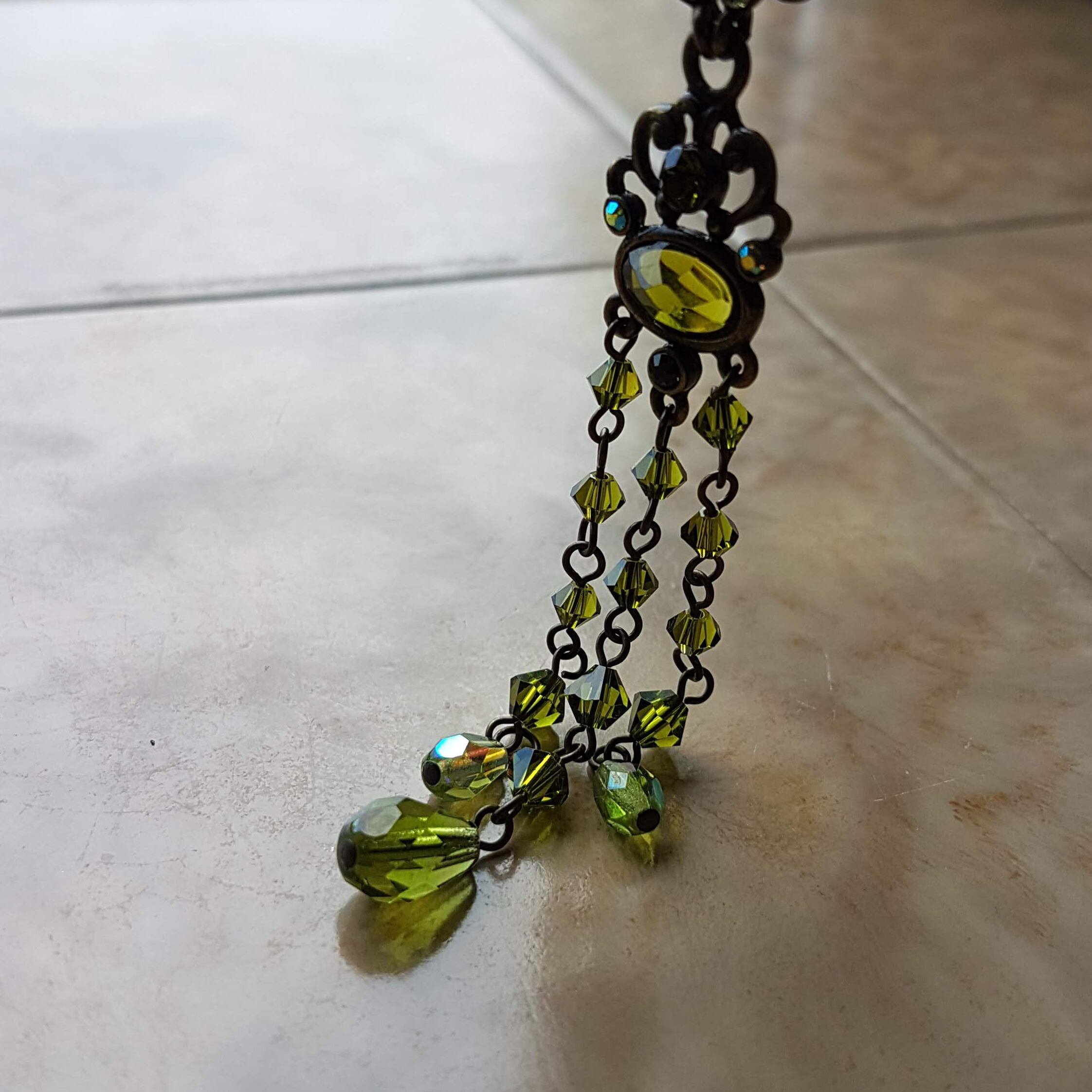 落ち着いたグリーンは光の角度によって表情を変え、胸元に深みをもたらしてくれます。