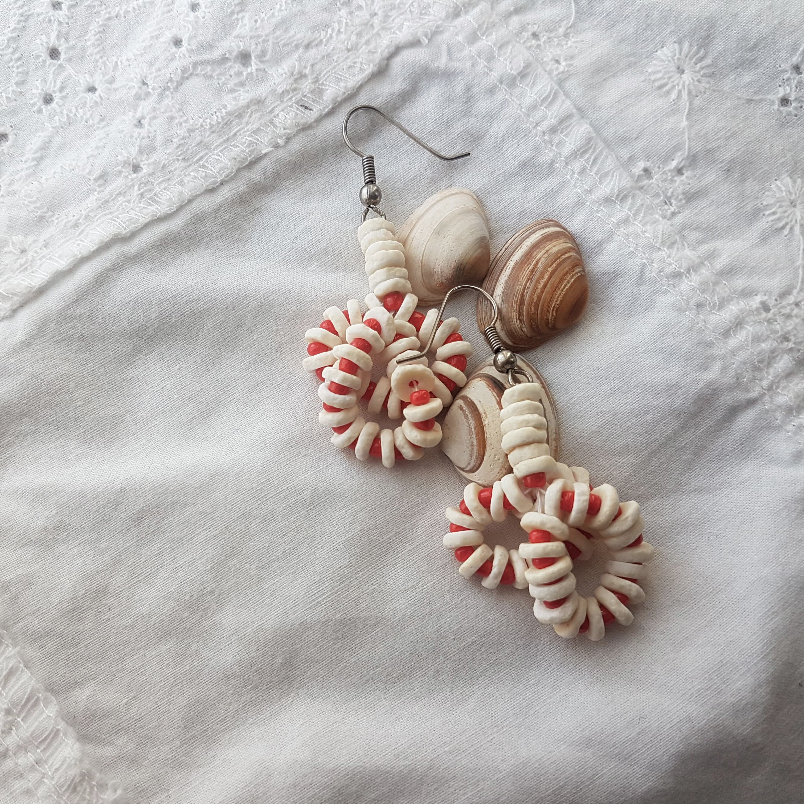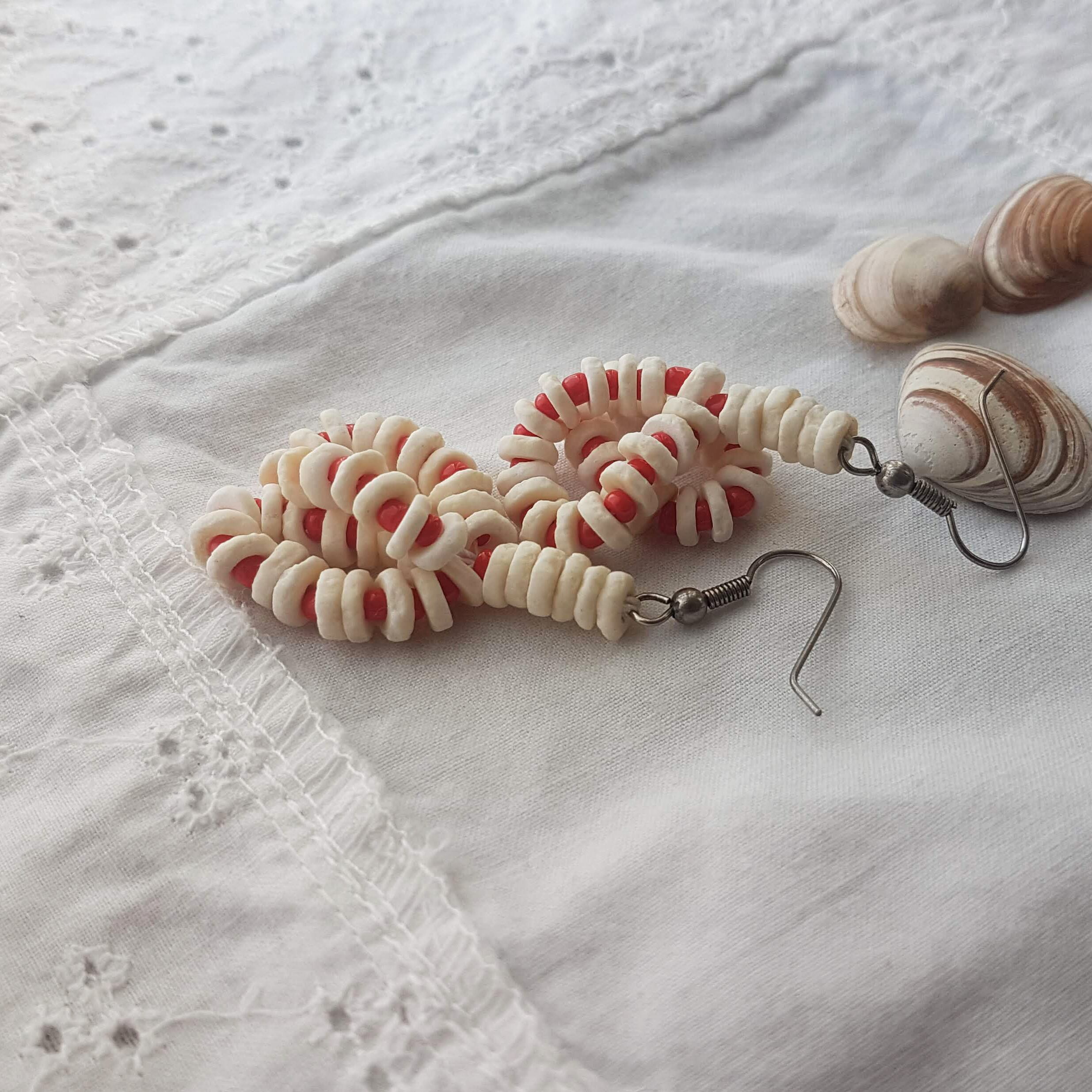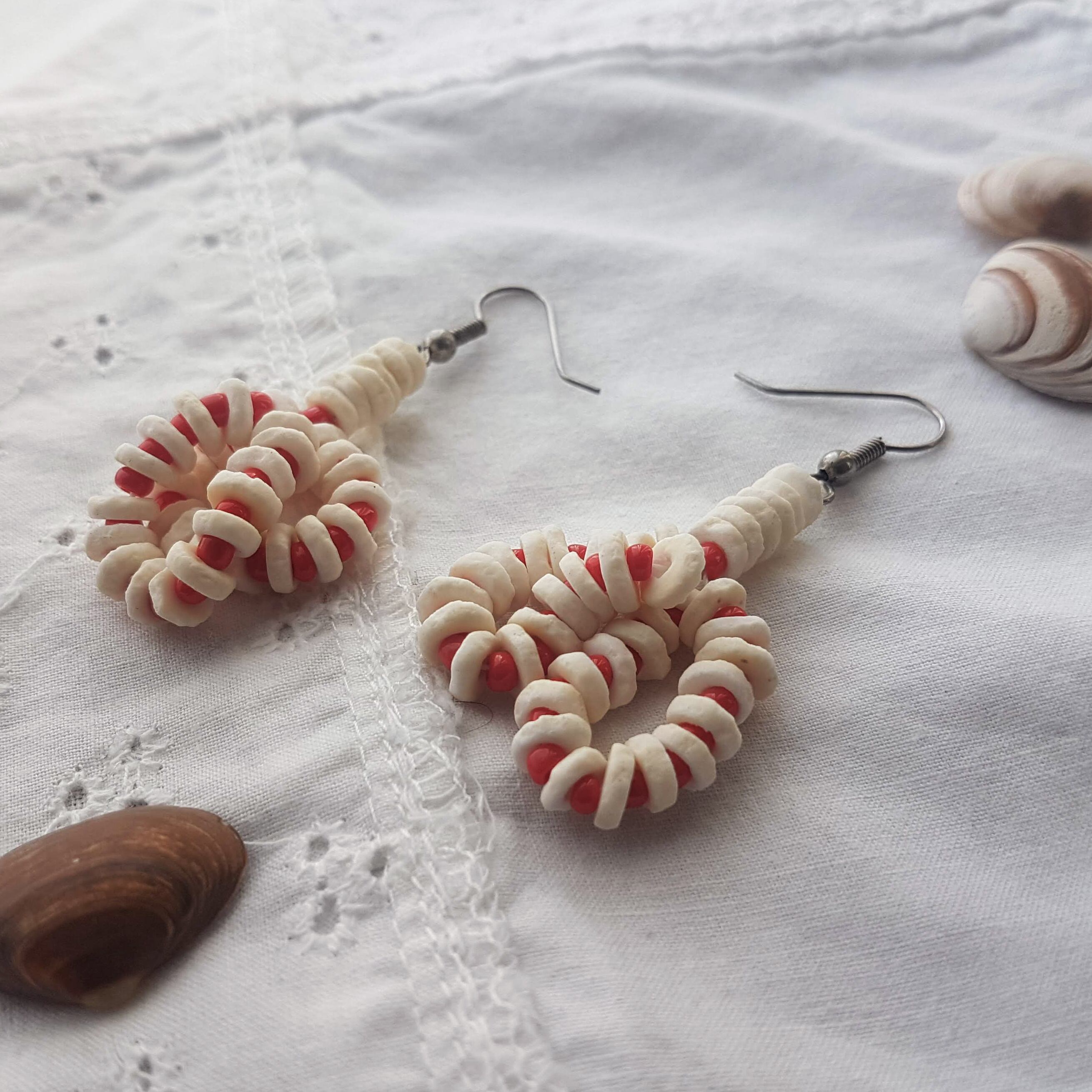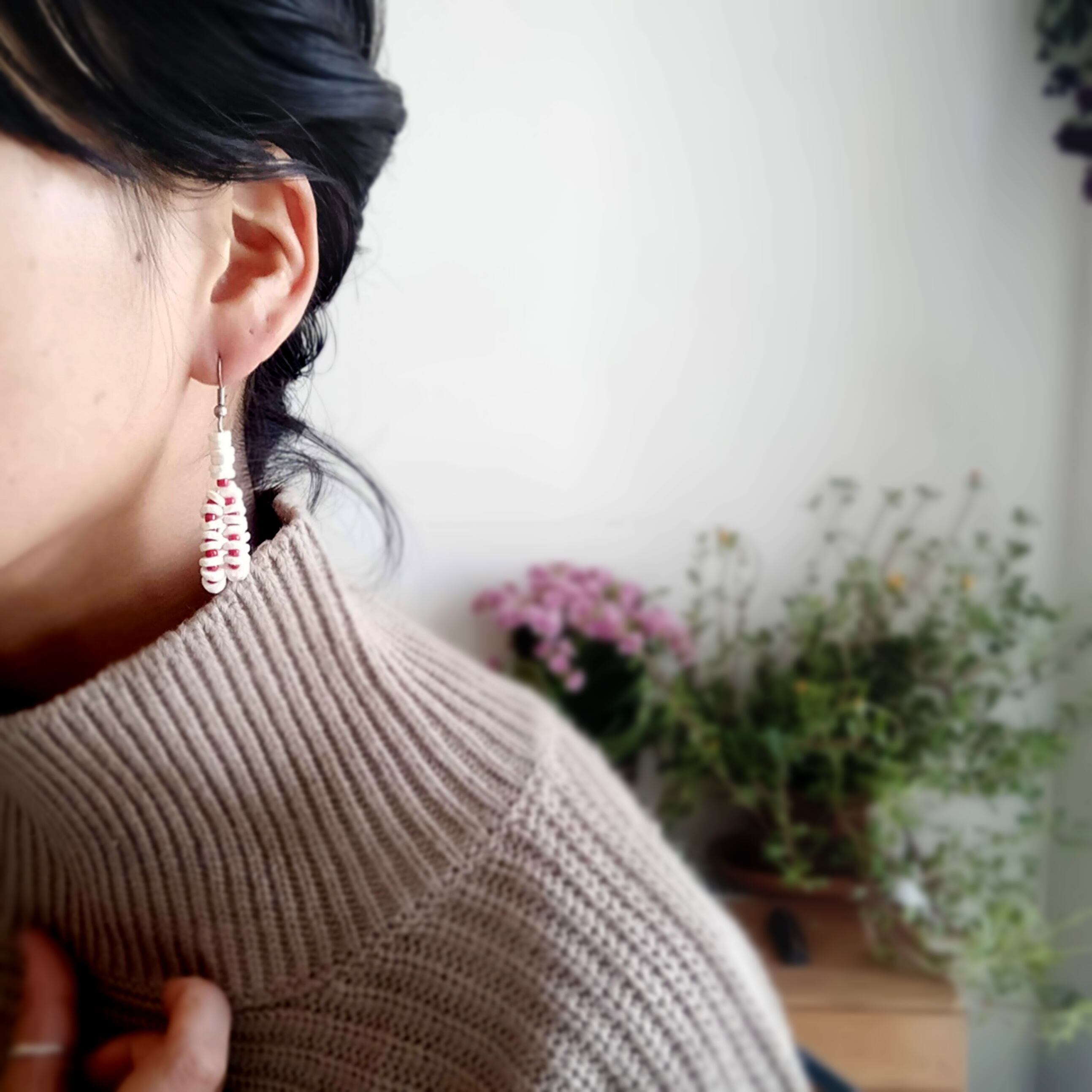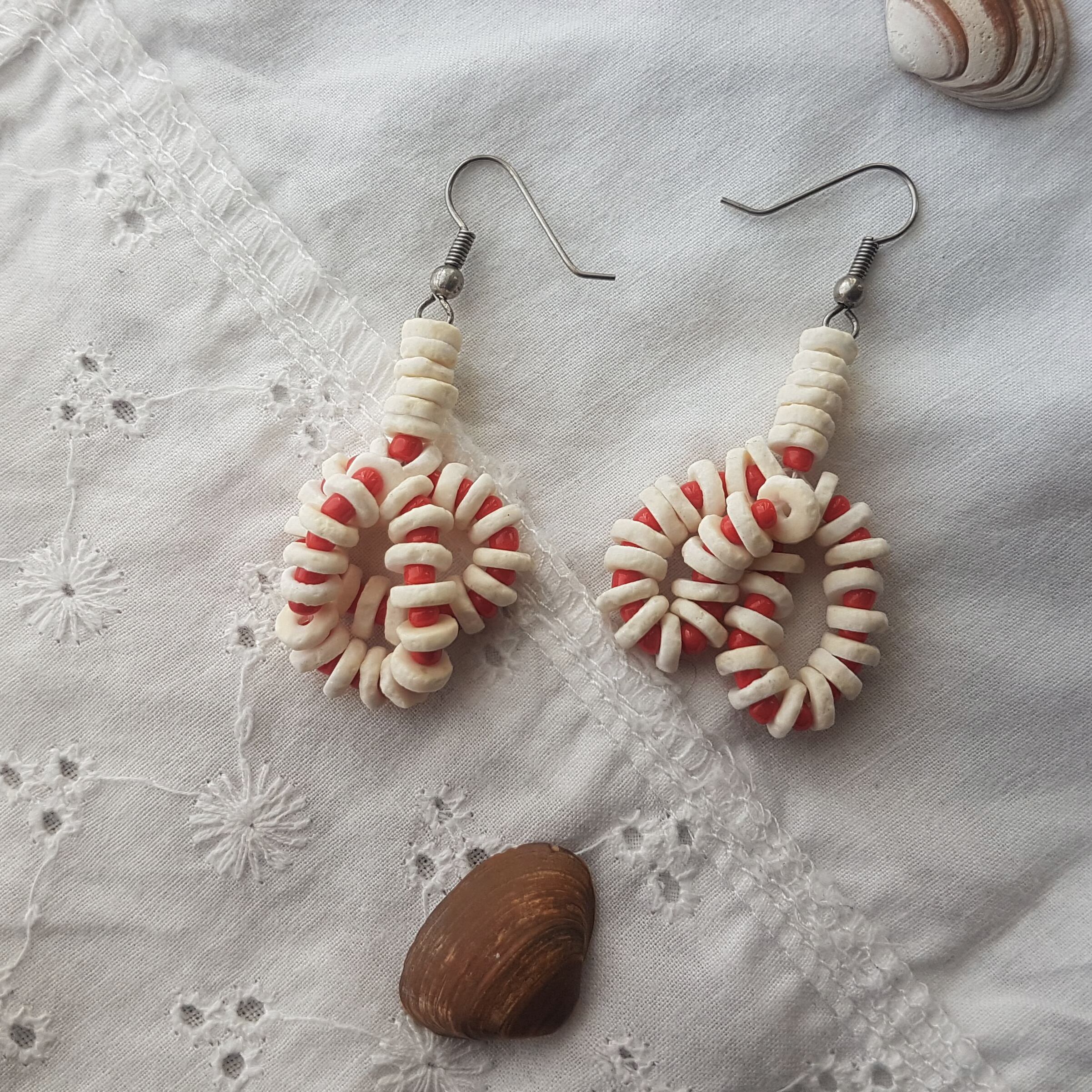 赤と白で構成された、珊瑚を想わせるようなモチーフのデザインピアスです。
