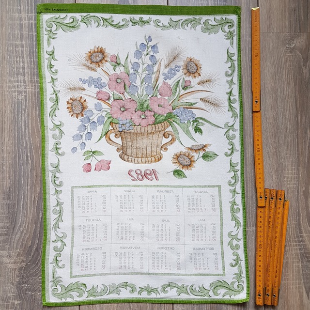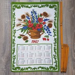 色鮮やかにお花の絵が描かれた、コットン製の1982年度カレンダーです。
