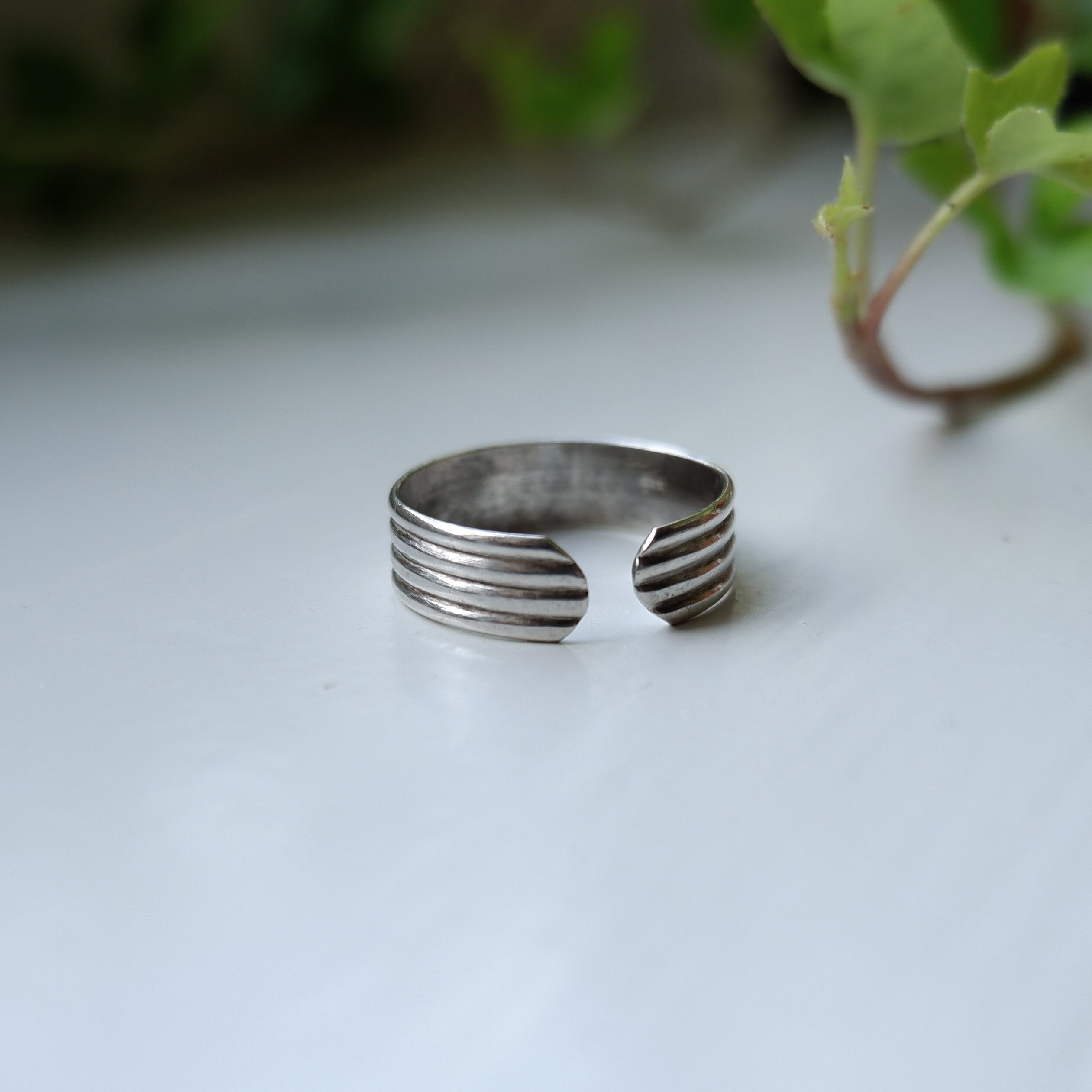 ライン細工が施されたシルバー製のヴィンテージリングです。