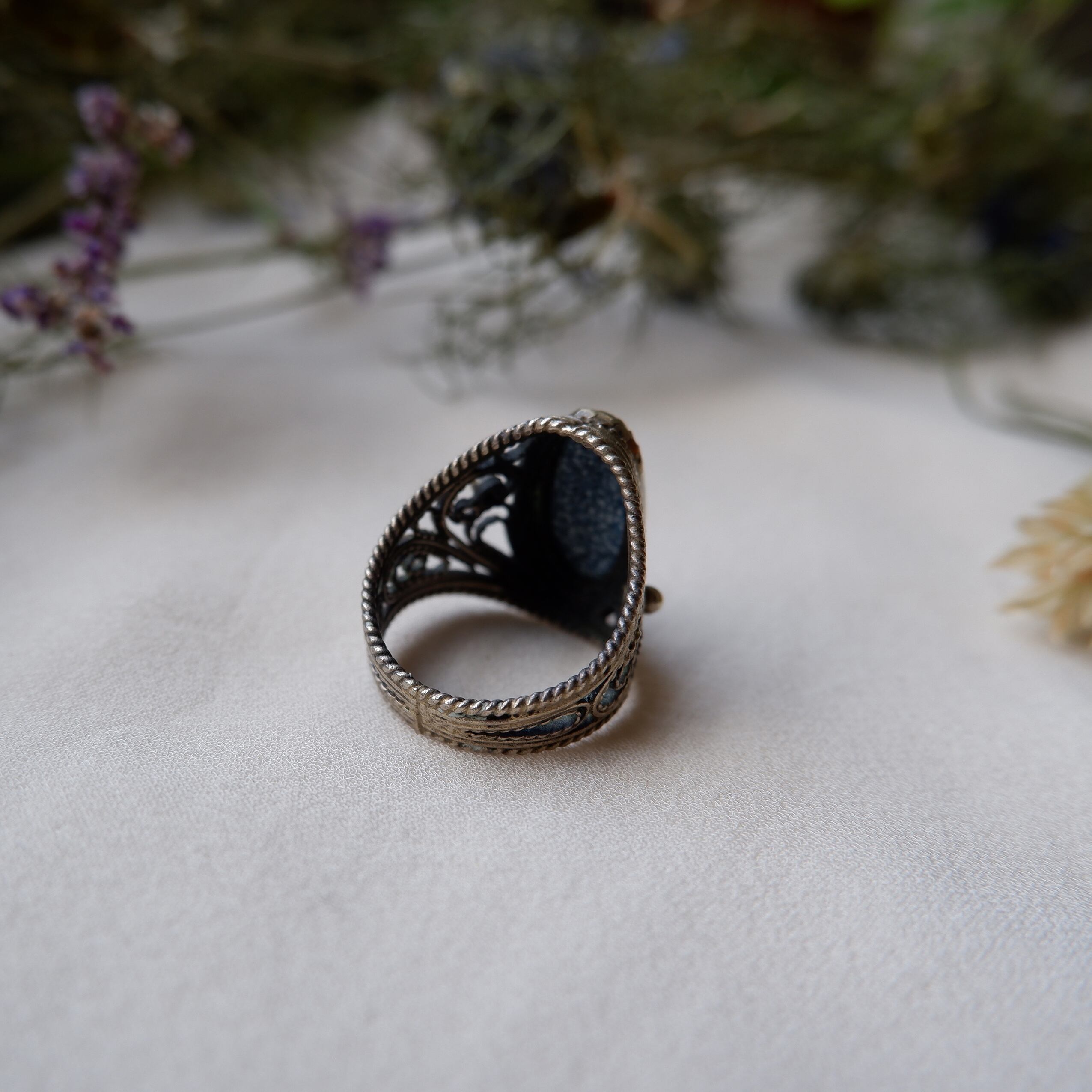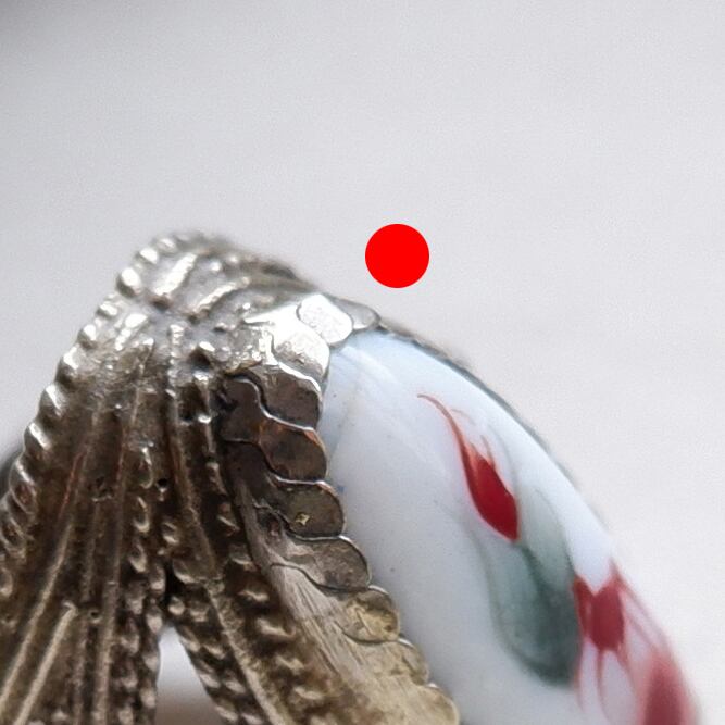 ・近づいてよく見るとガラスモチーフに線が入っているのが確認できます。リング自体はしっかりした造りで状態もとても良いです。