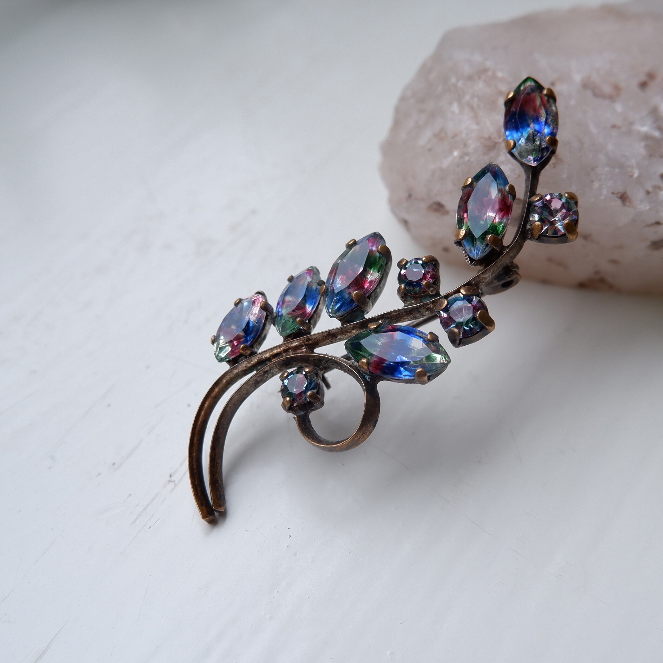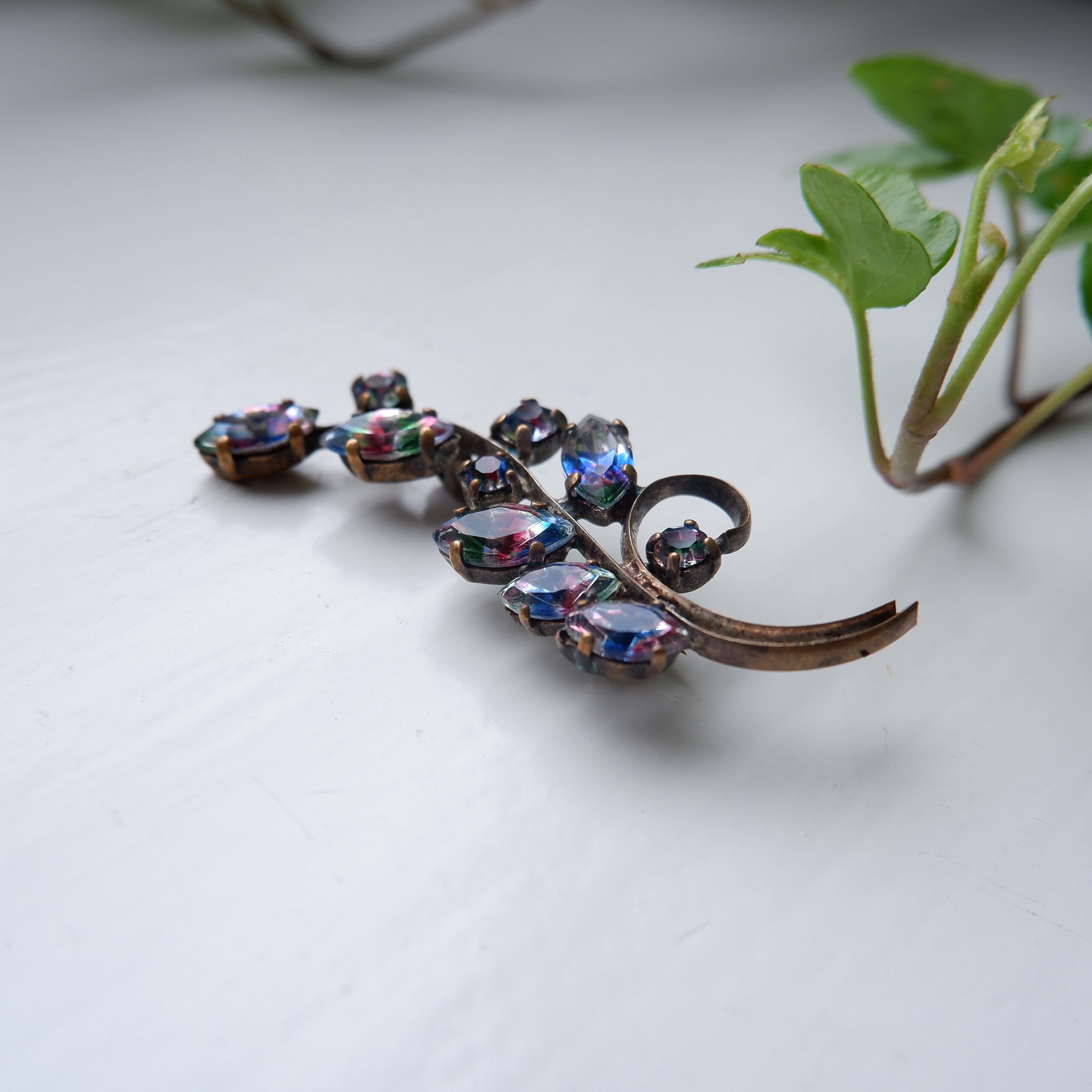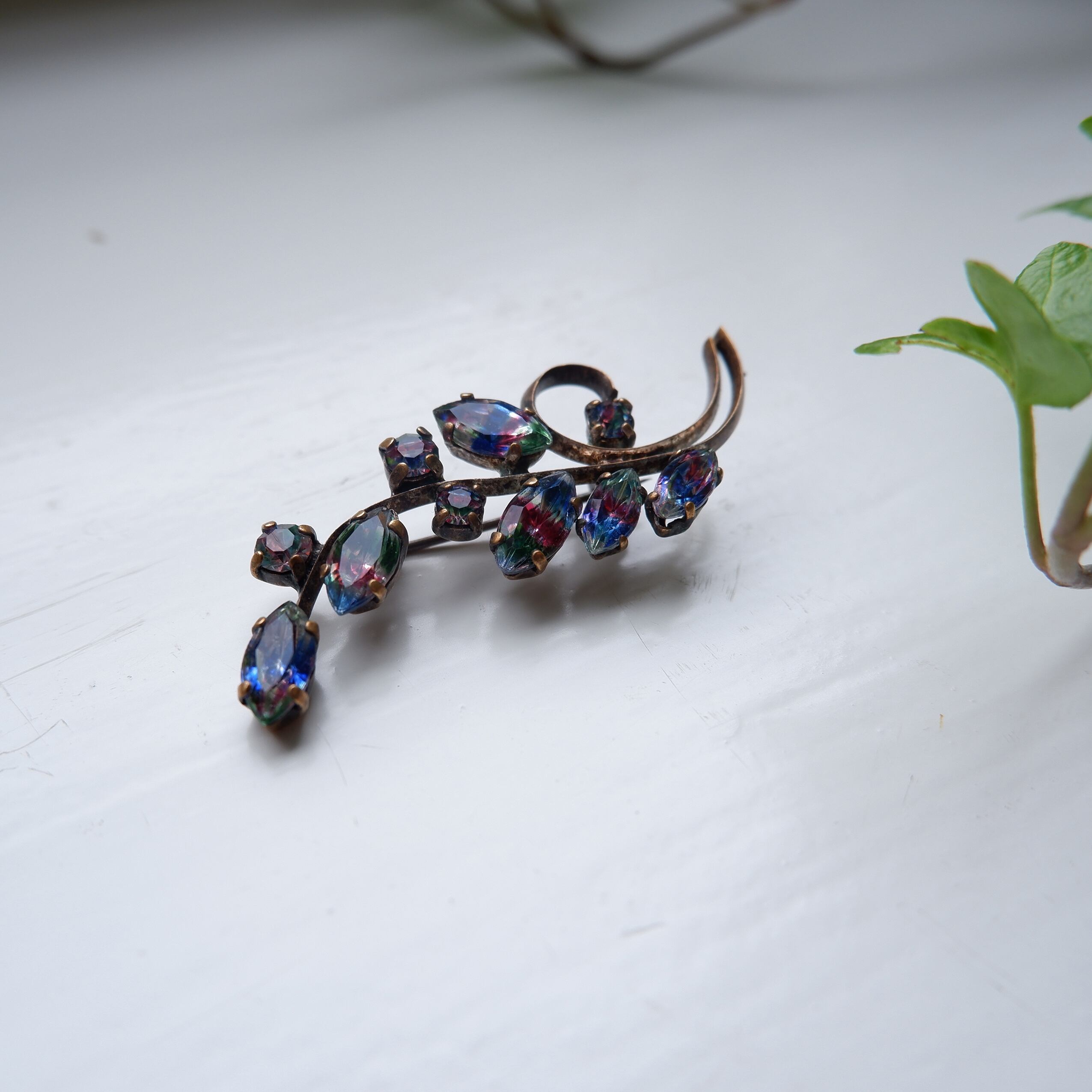 虹色に光るガラスで葉っぱと実が象られた趣きのある一品。