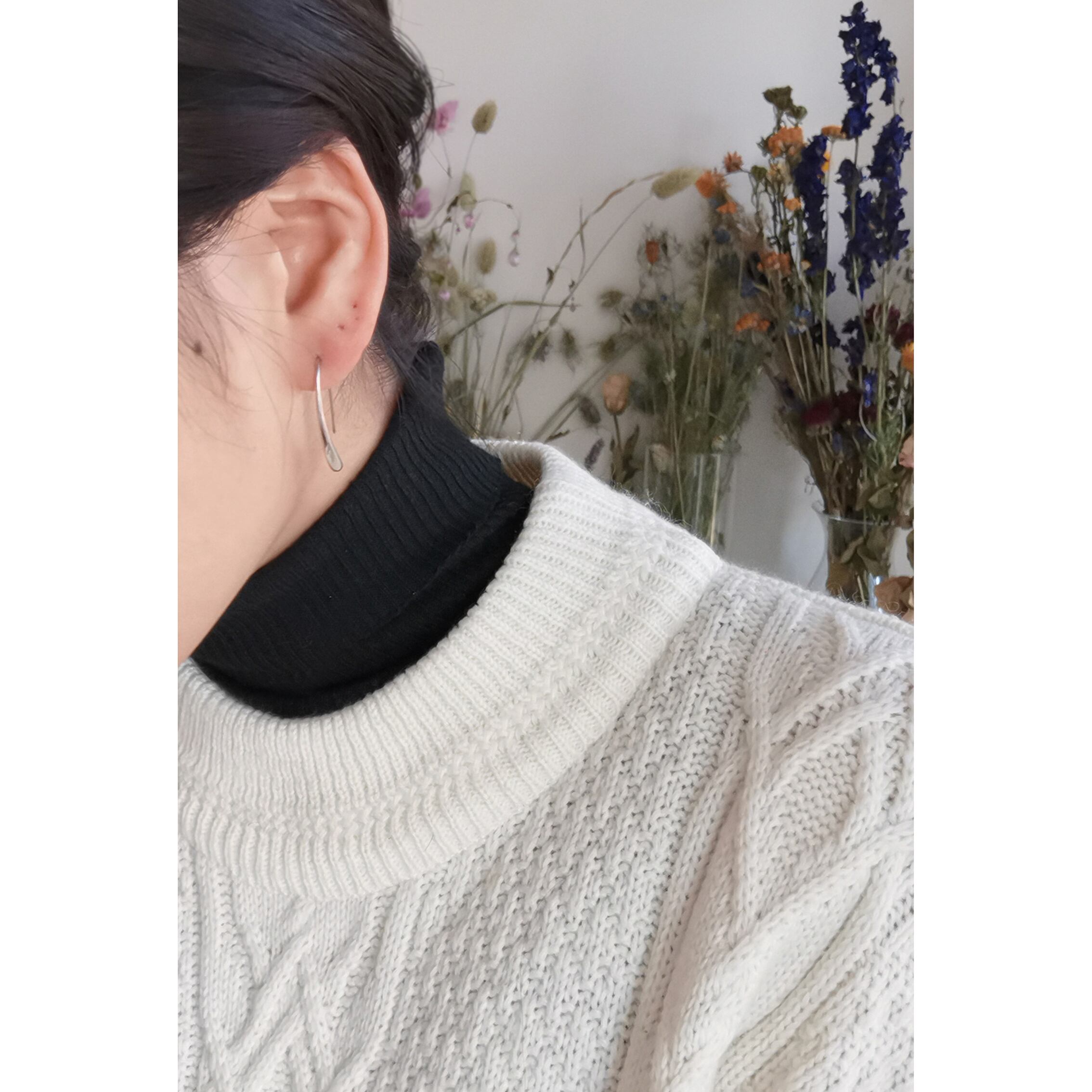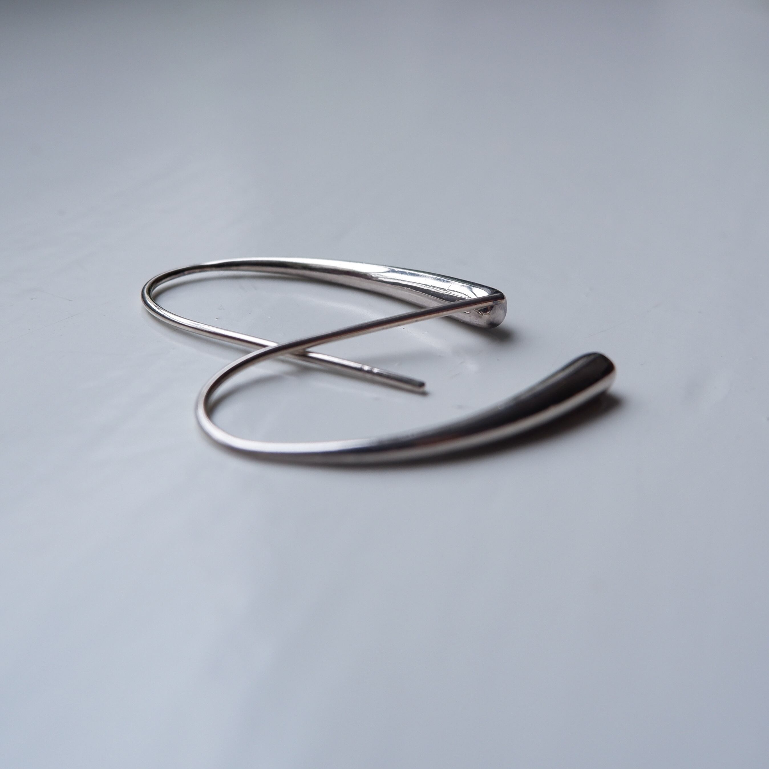 ゆったりとした曲線は身につけると耳元で雫のような柔らかい表情を作ります。シンプルな中にクールさとフェミニンさのある一品です。