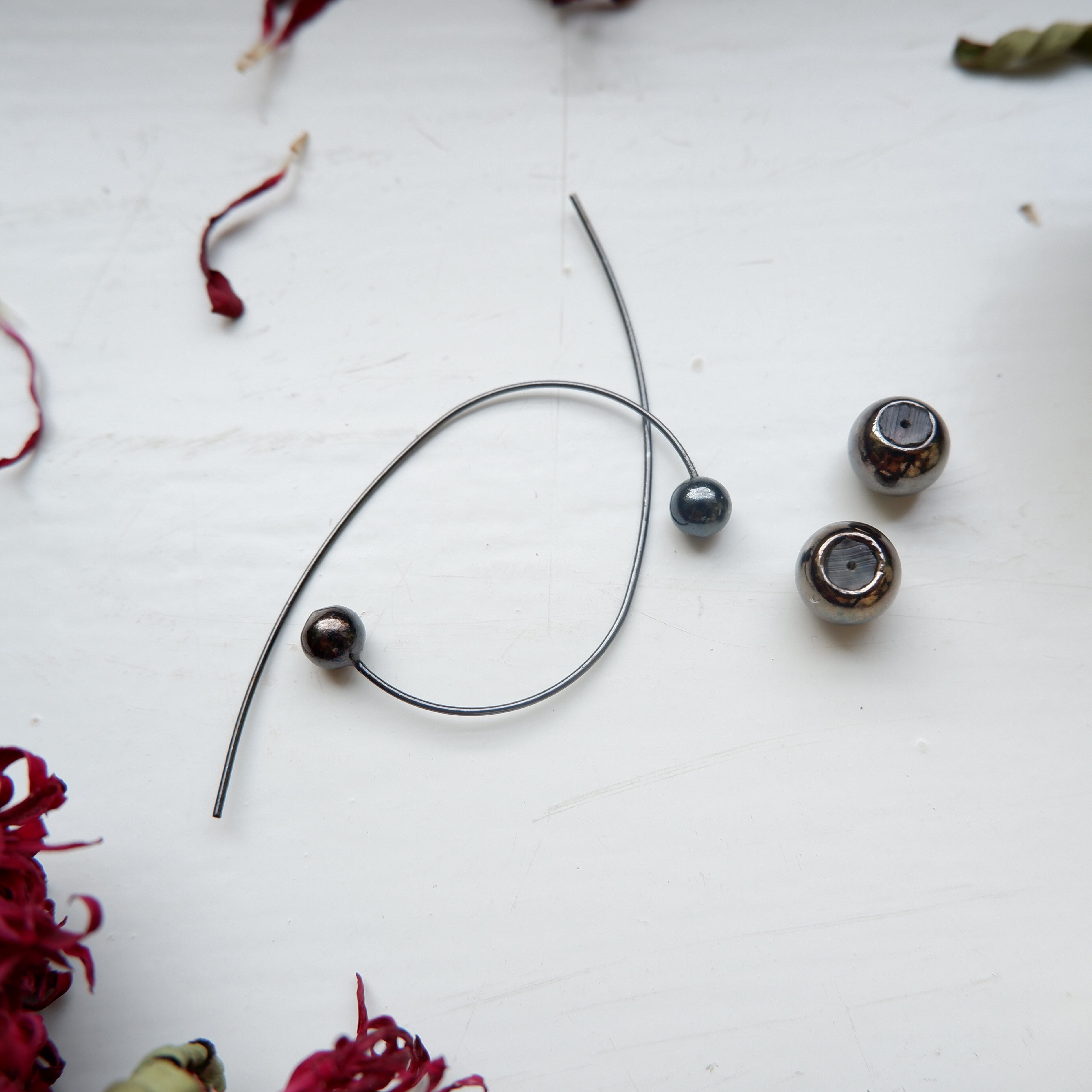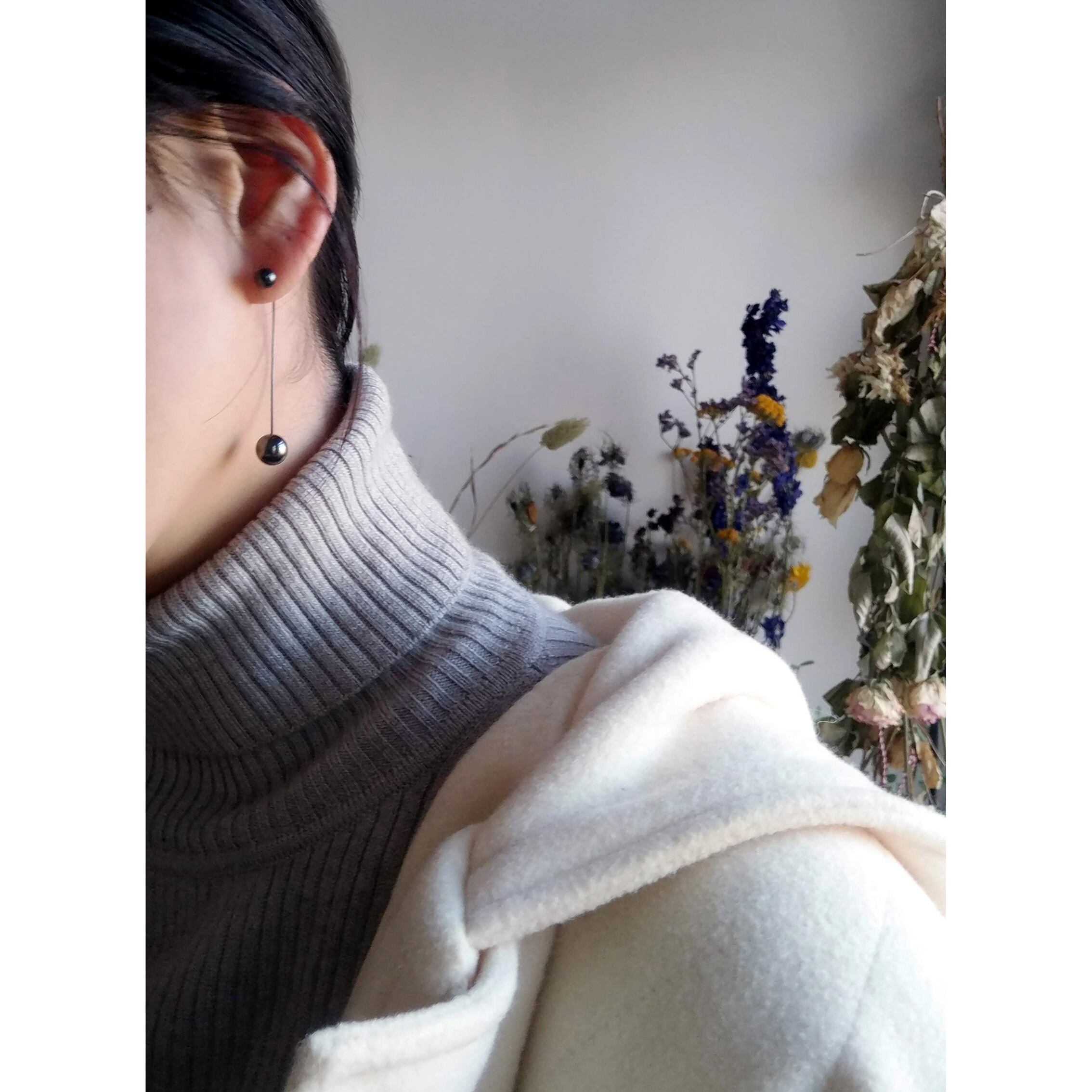 メタルボールのキャッチャーそのものがモチーフとなった、揺れるデザインのラインピアスです。