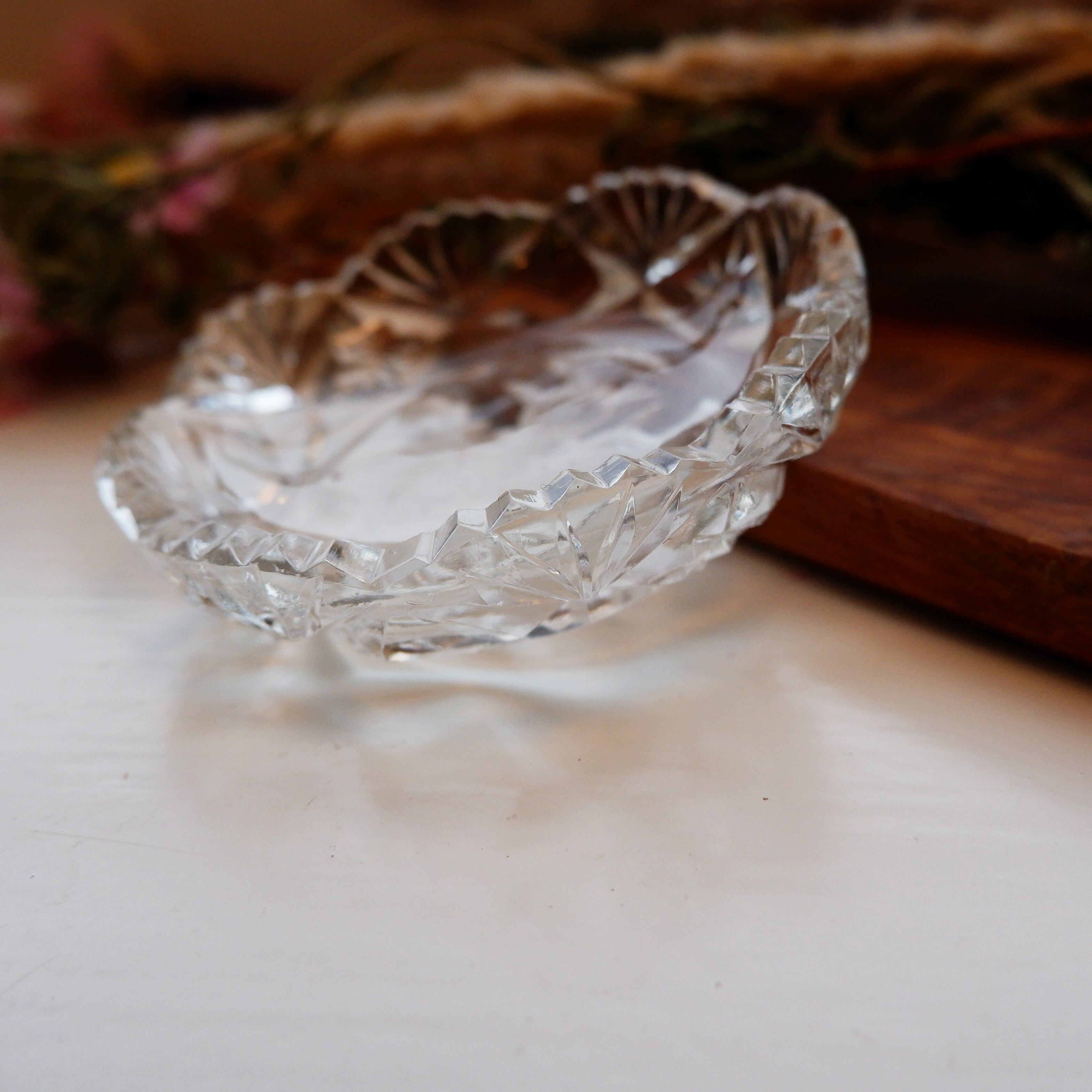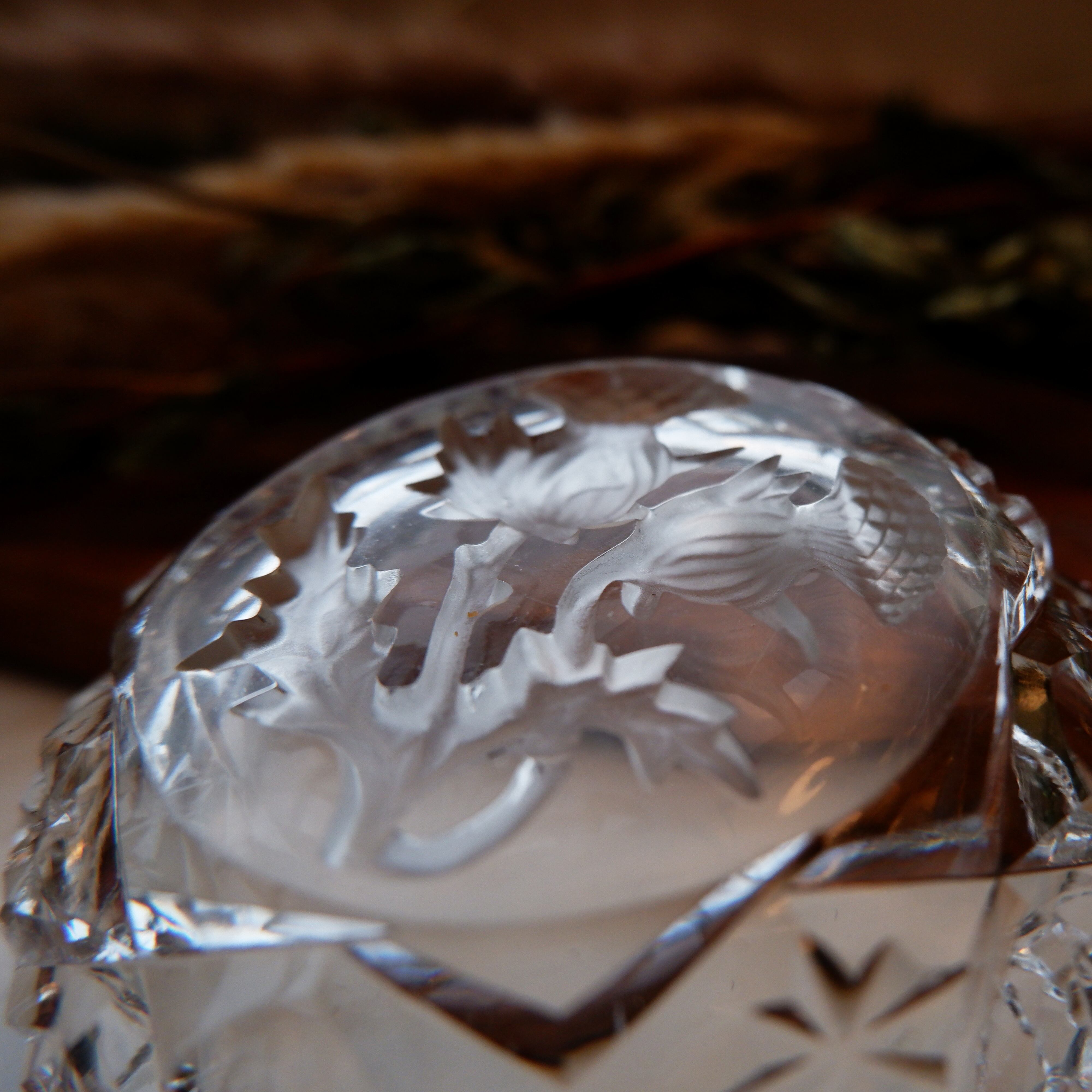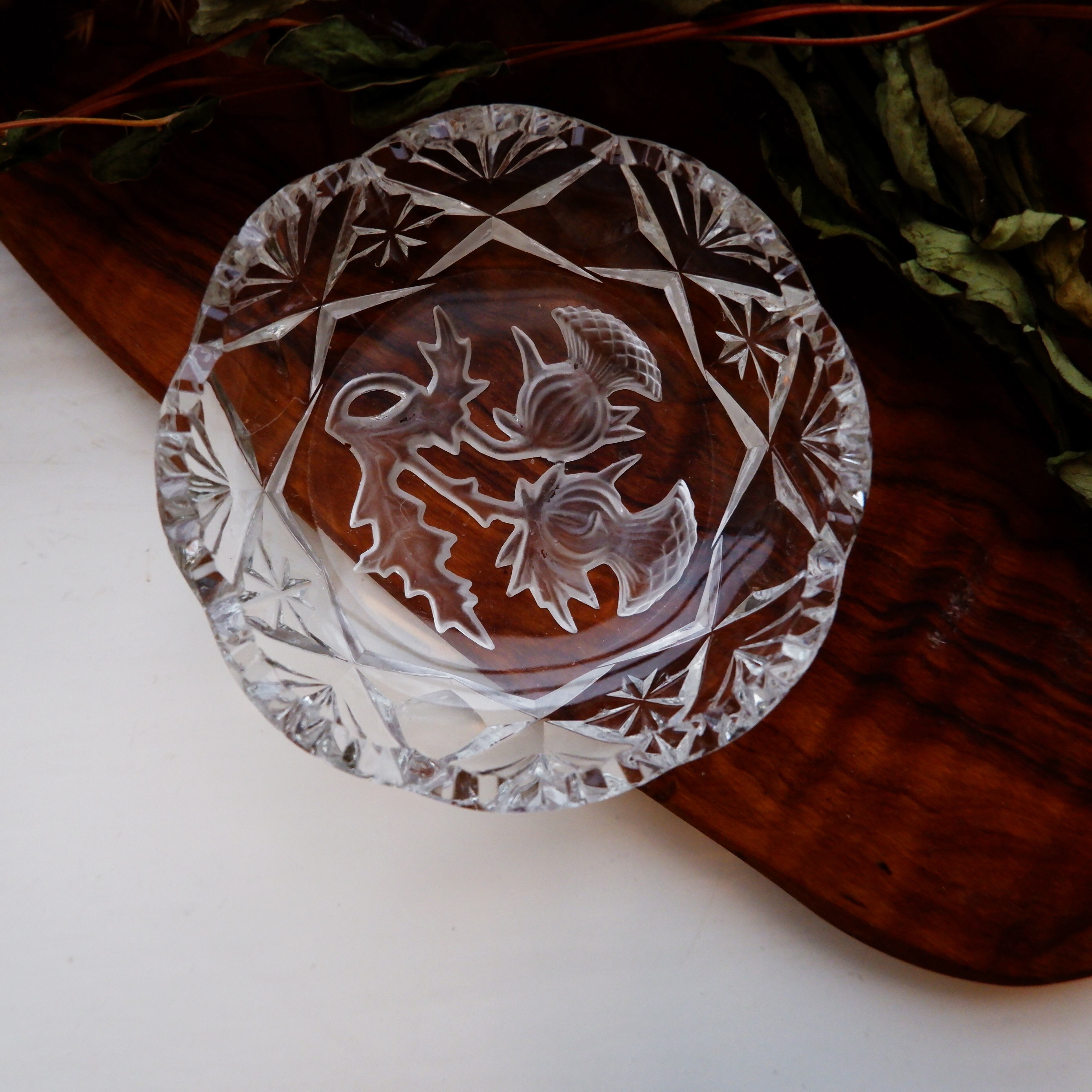 スコットランドの国家アザミの花が描かれたガラス製の小皿です。