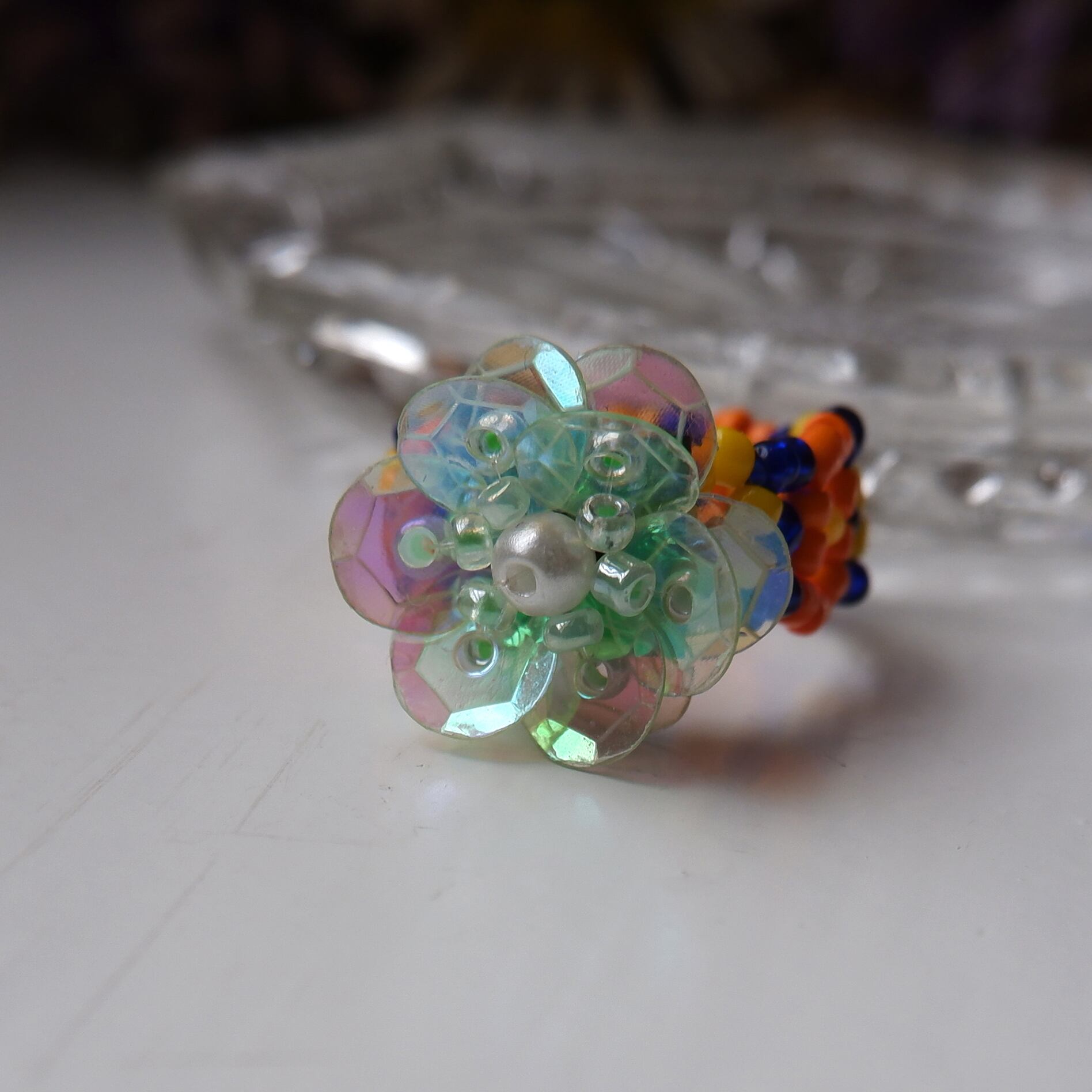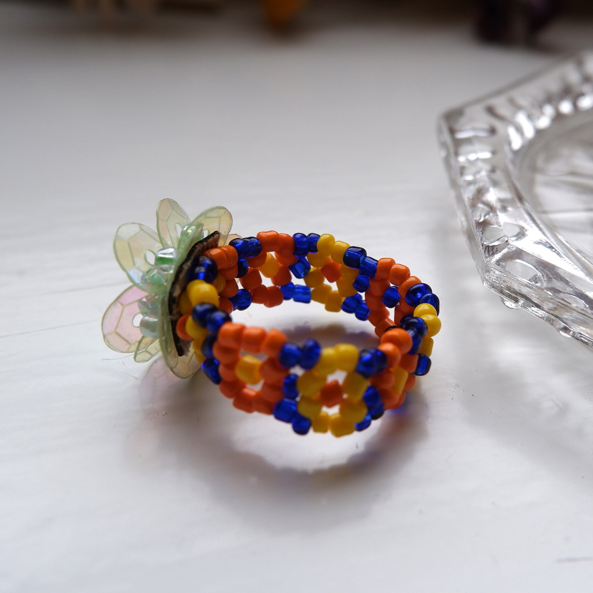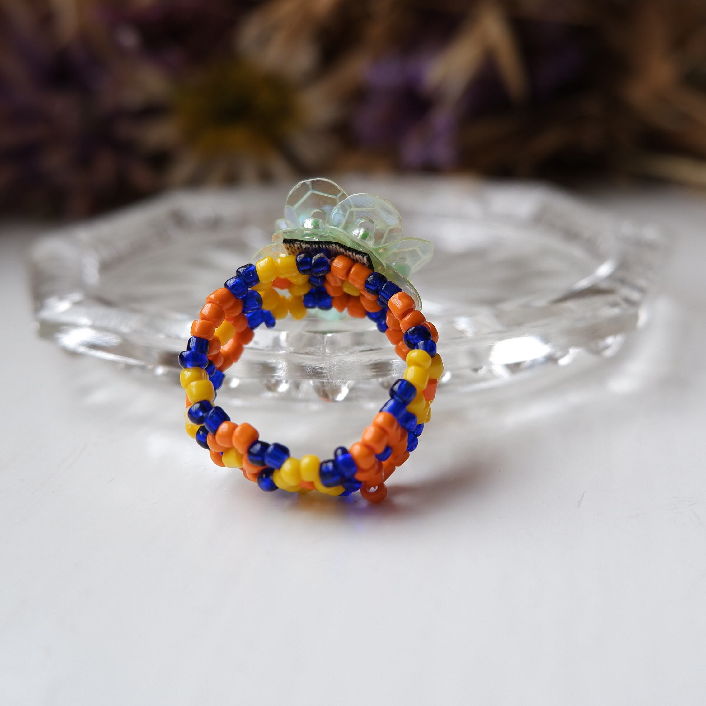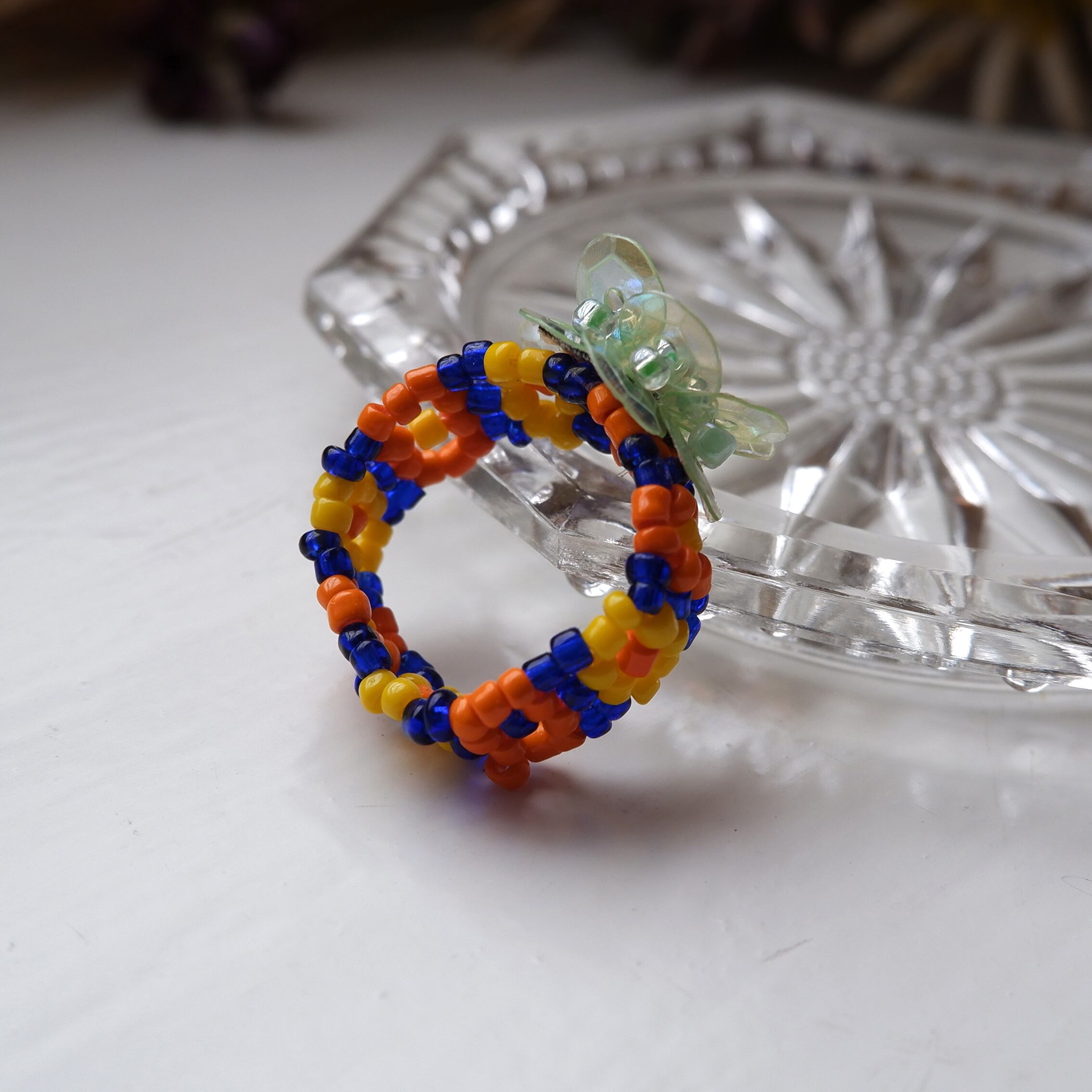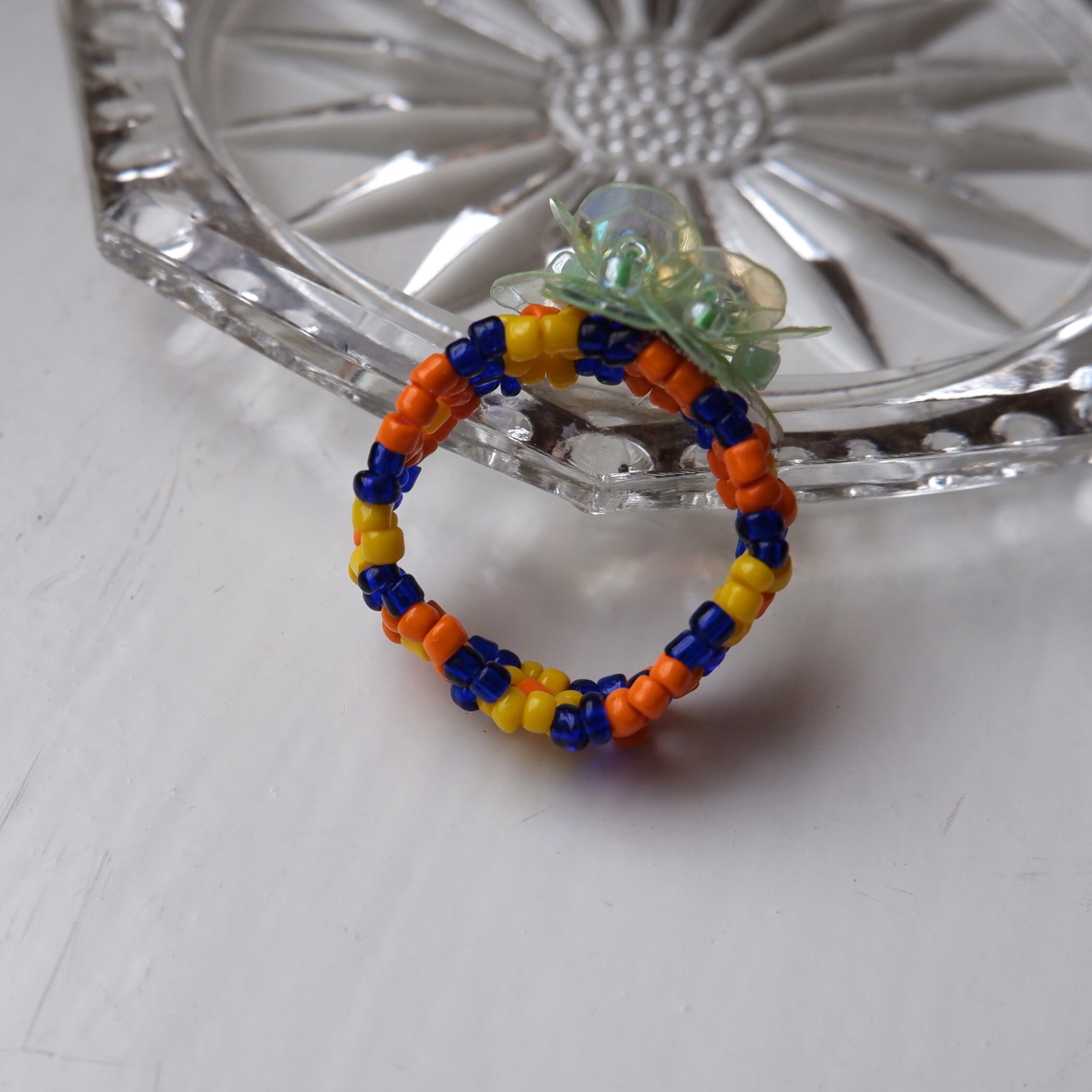 カラフルなビーズで構成された楽しいデザインの指輪です。