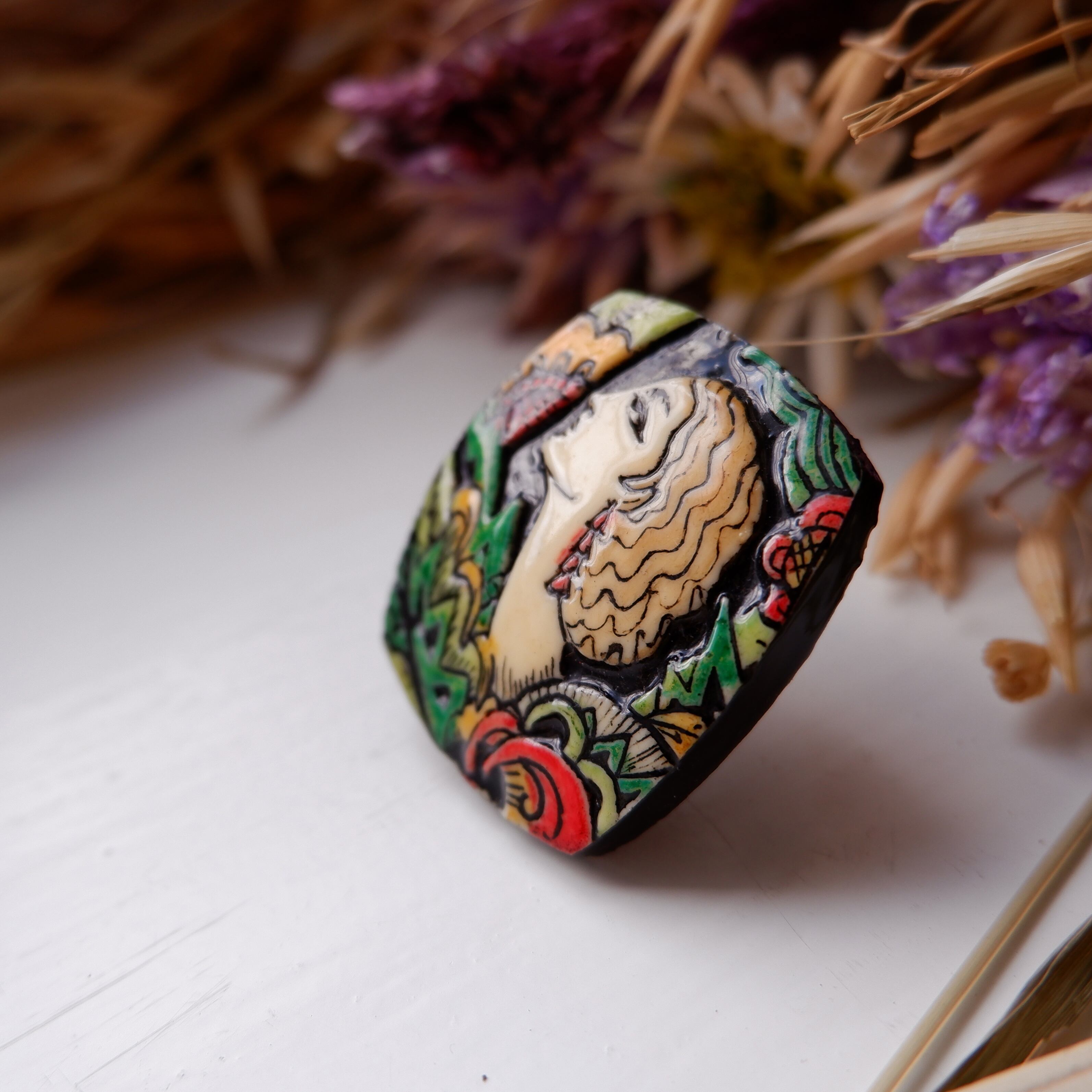 樹脂素材のハンドペイント製ヴィンテージブローチです。