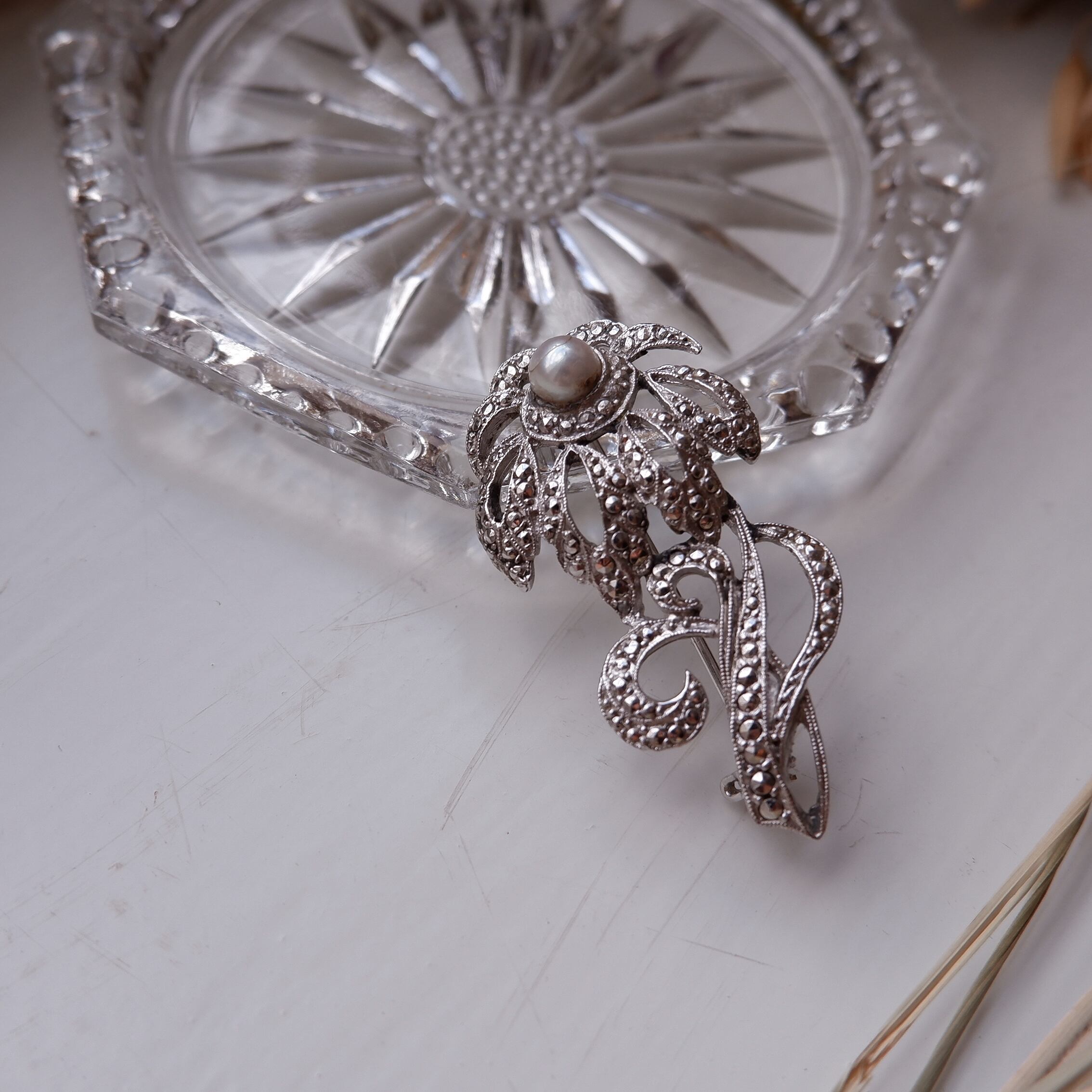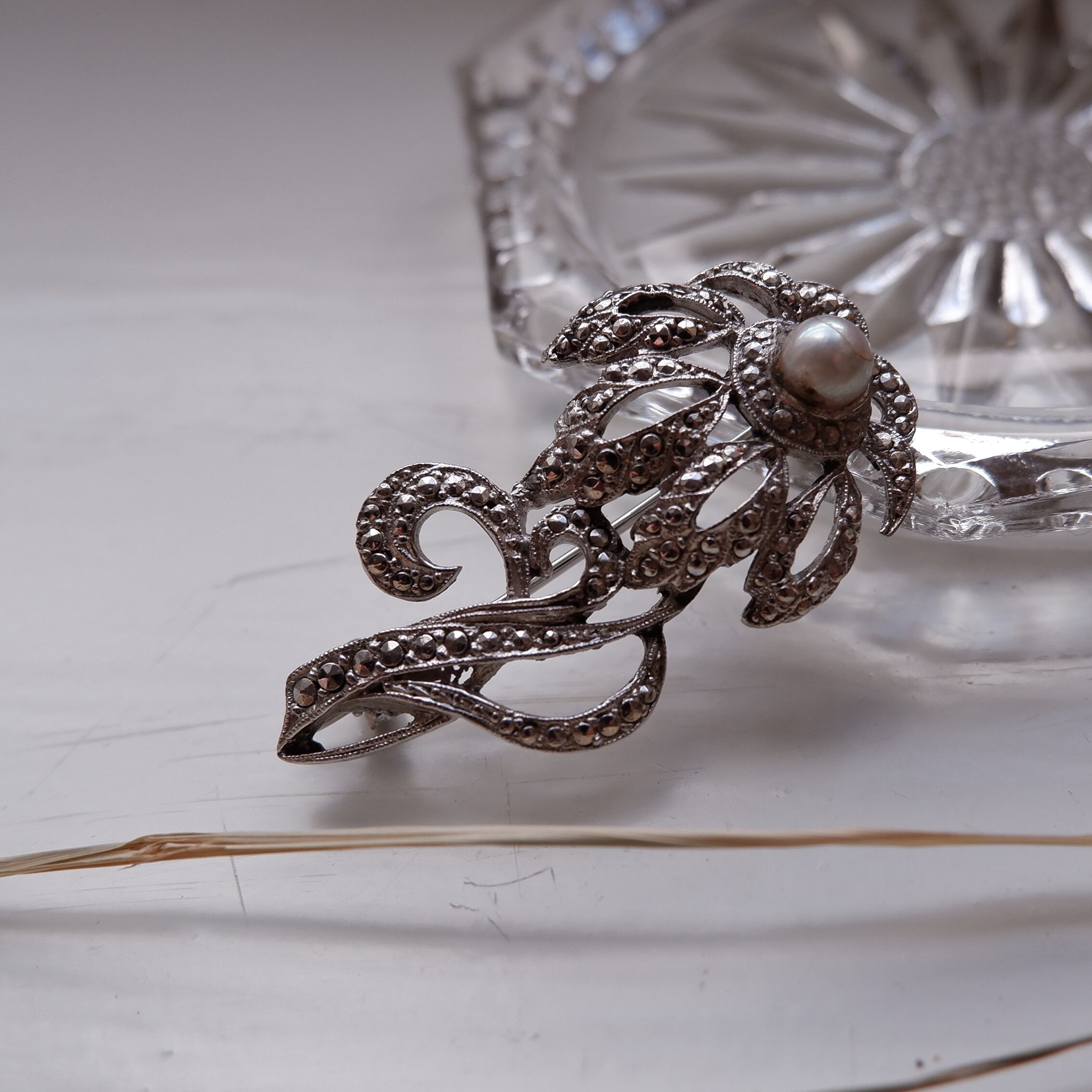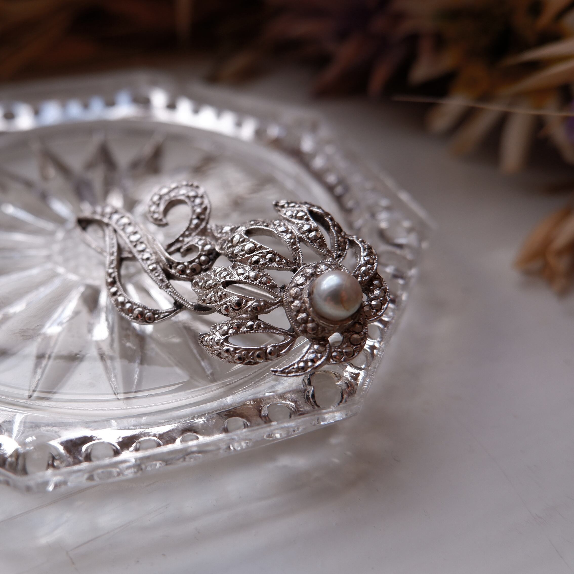 Flowing lines 銀色の花のブローチ (vijg-17)