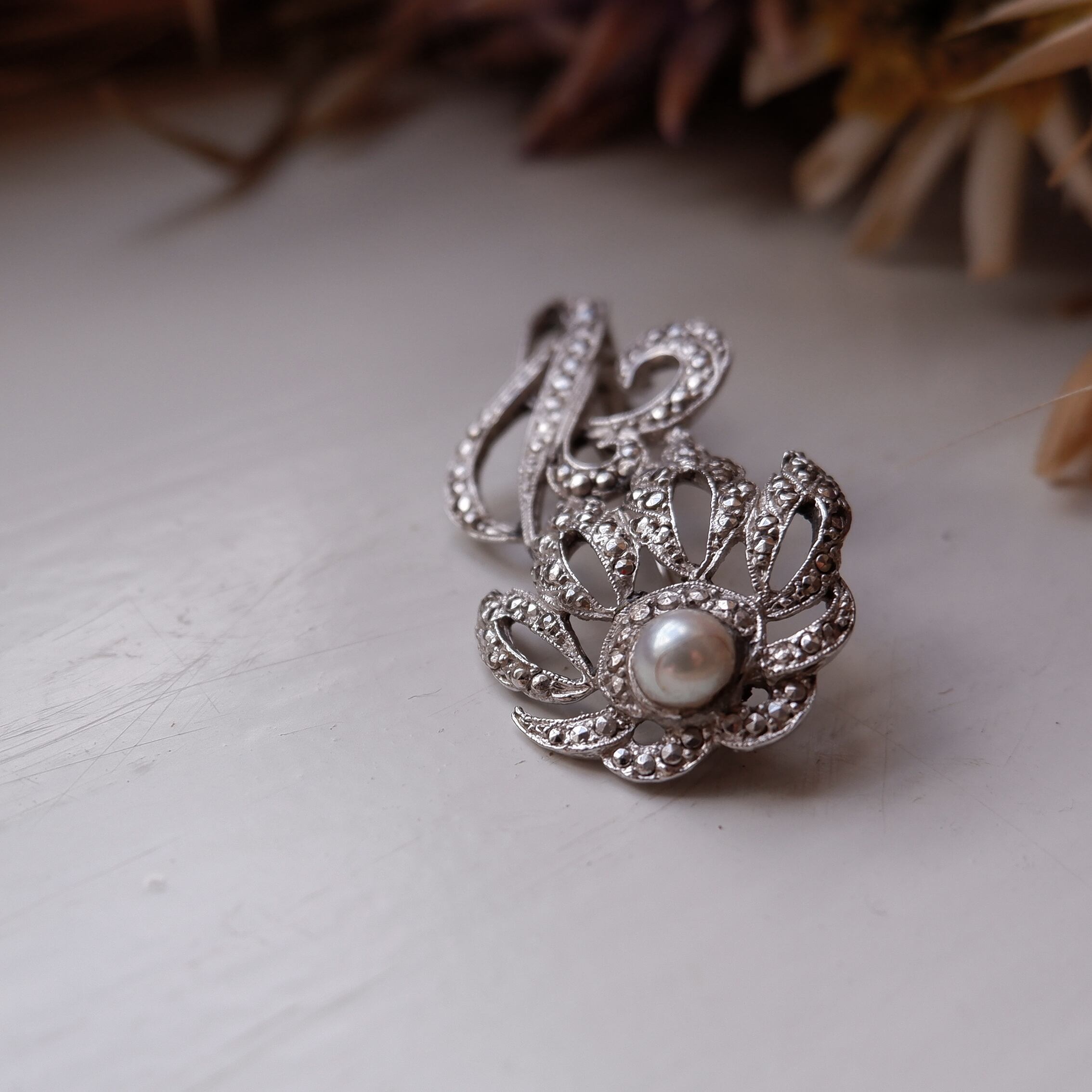 一輪花がモチーフとなったヴィンテージブローチです。