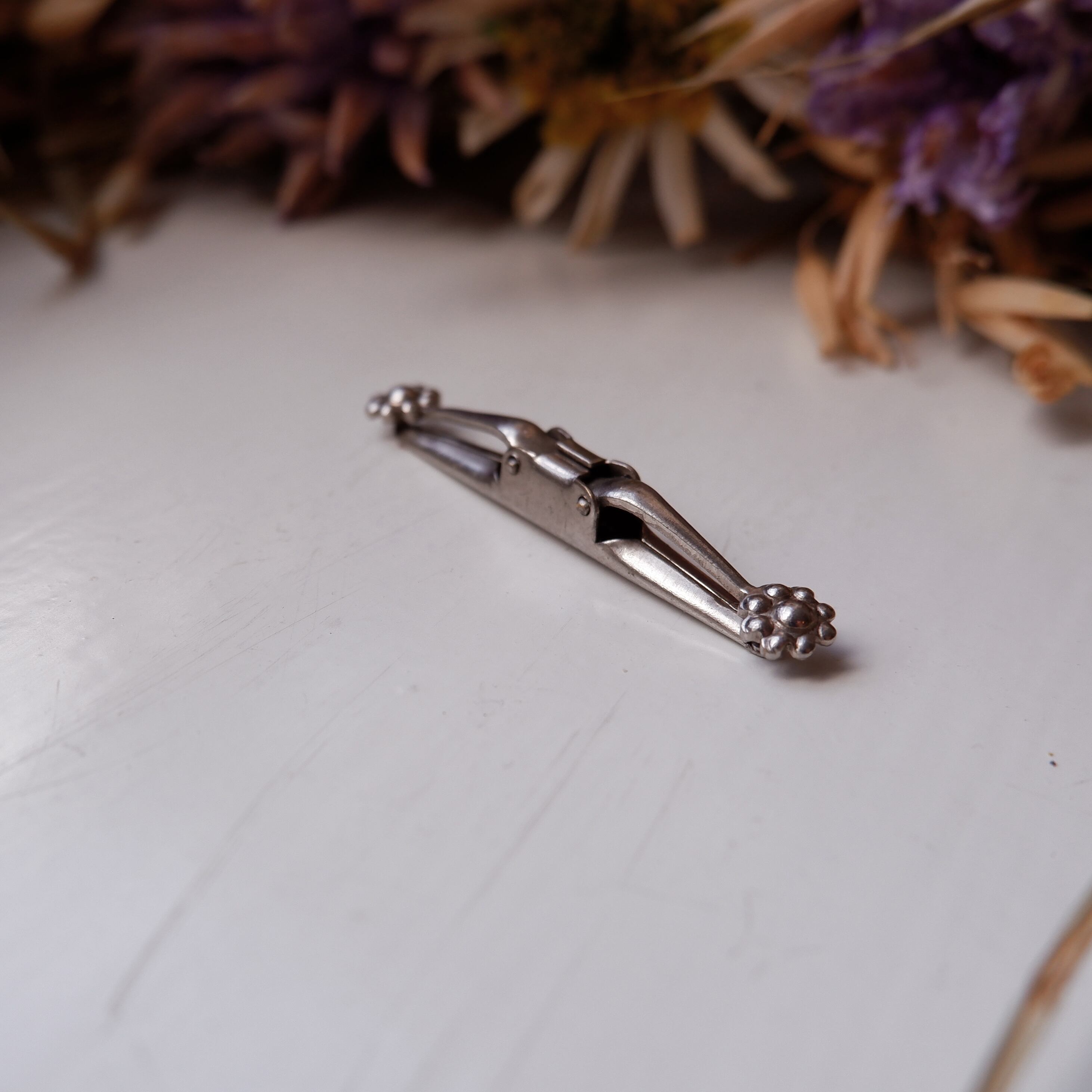 カラークリップと呼ばれる、襟につけるタイプのブローチです。