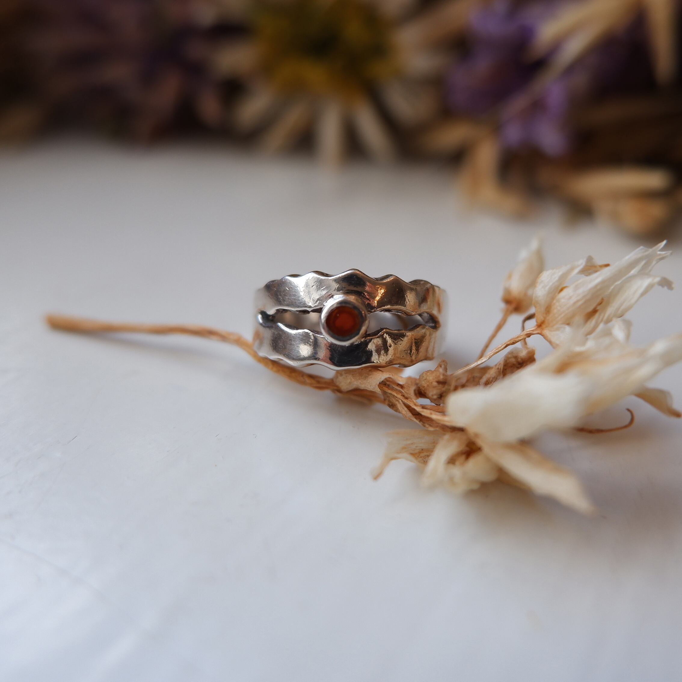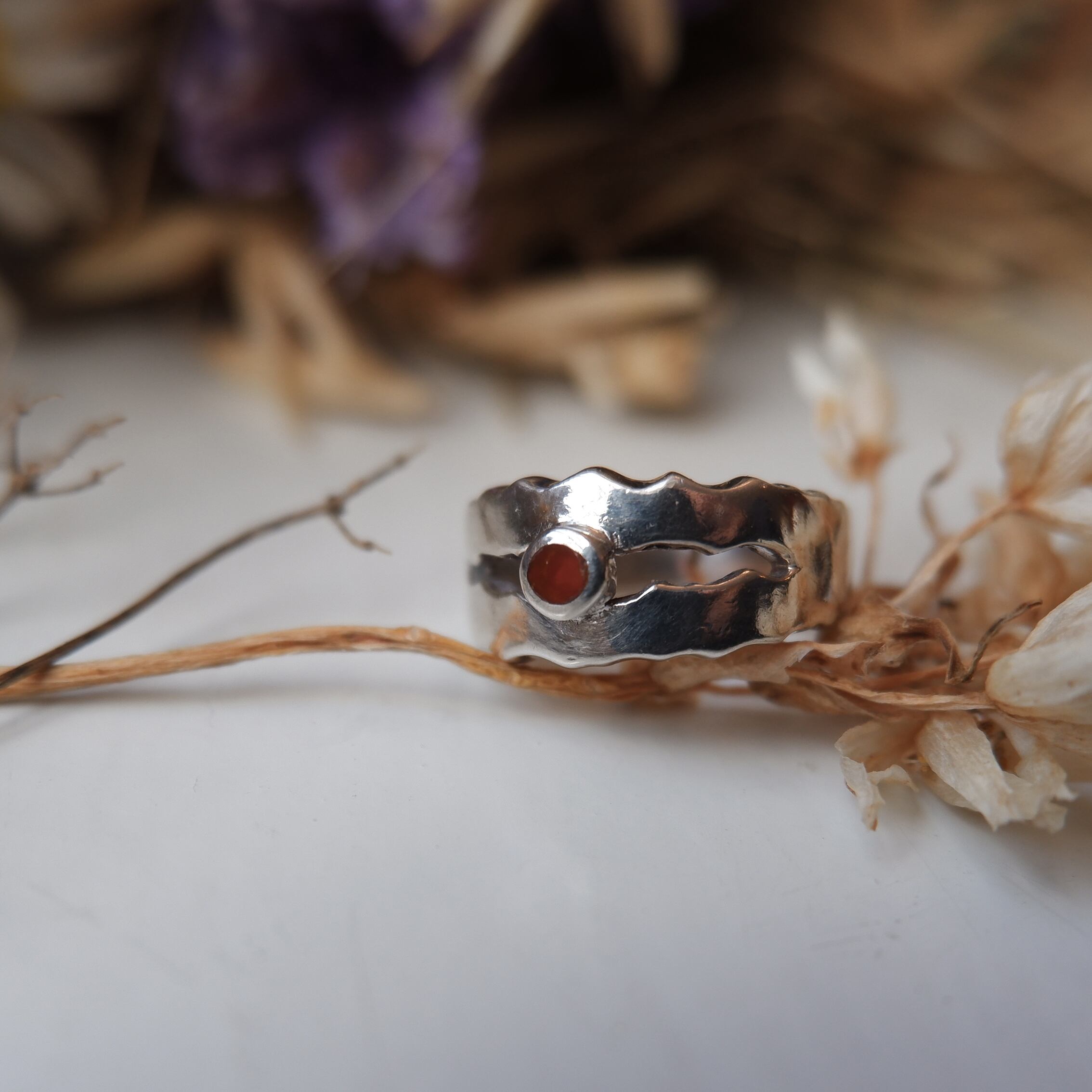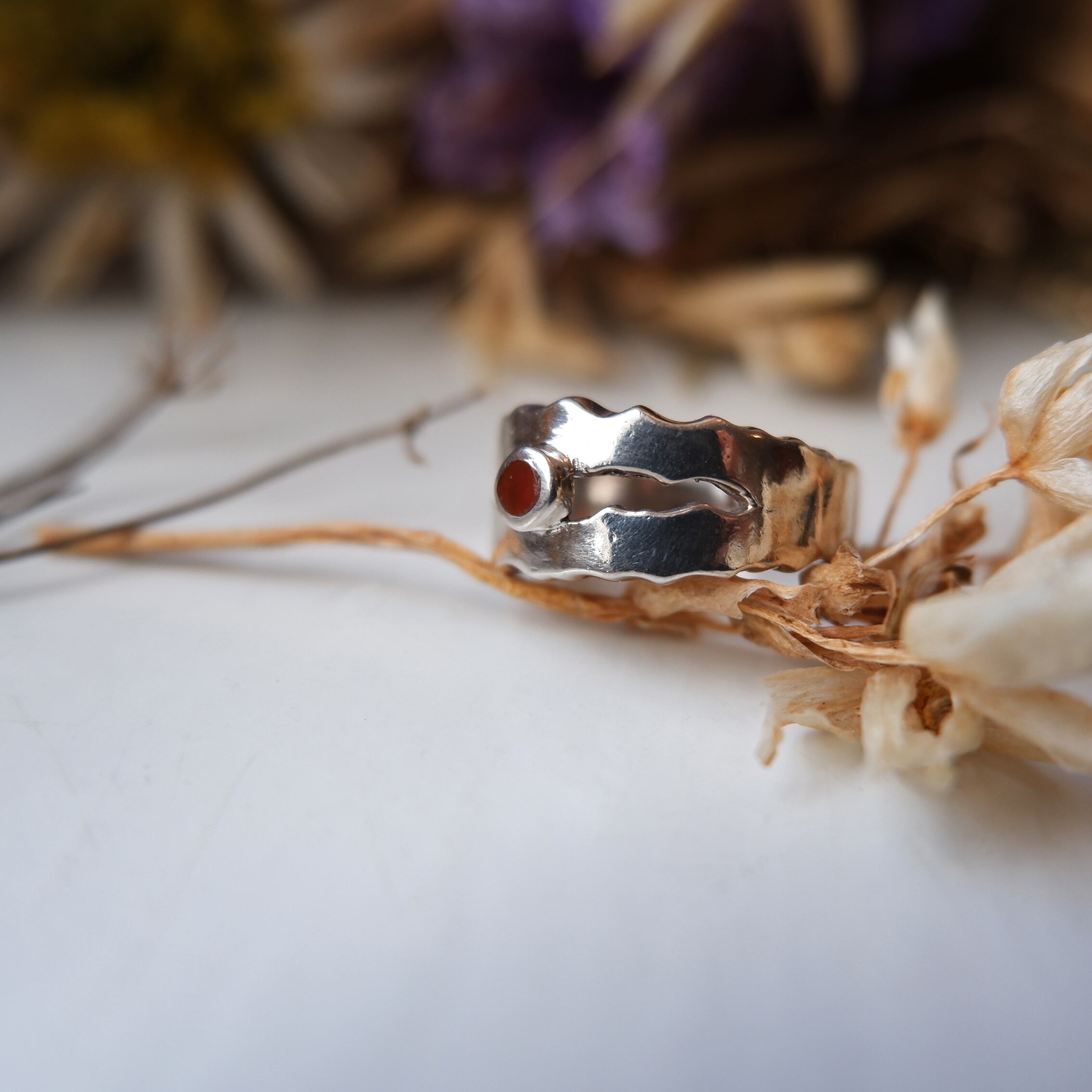 深みのあるオレンジを発色するカーネリアンの石が充てがわれています。