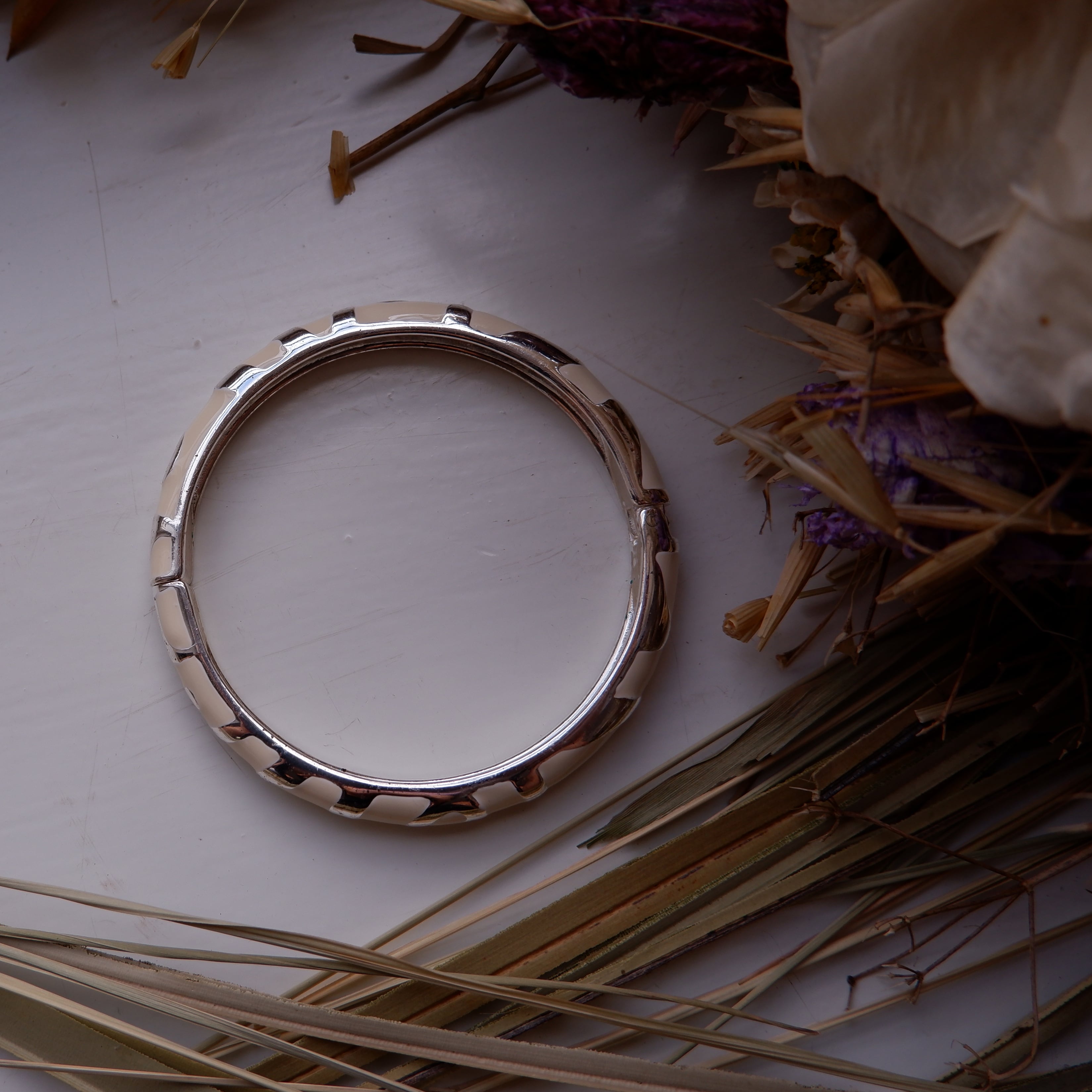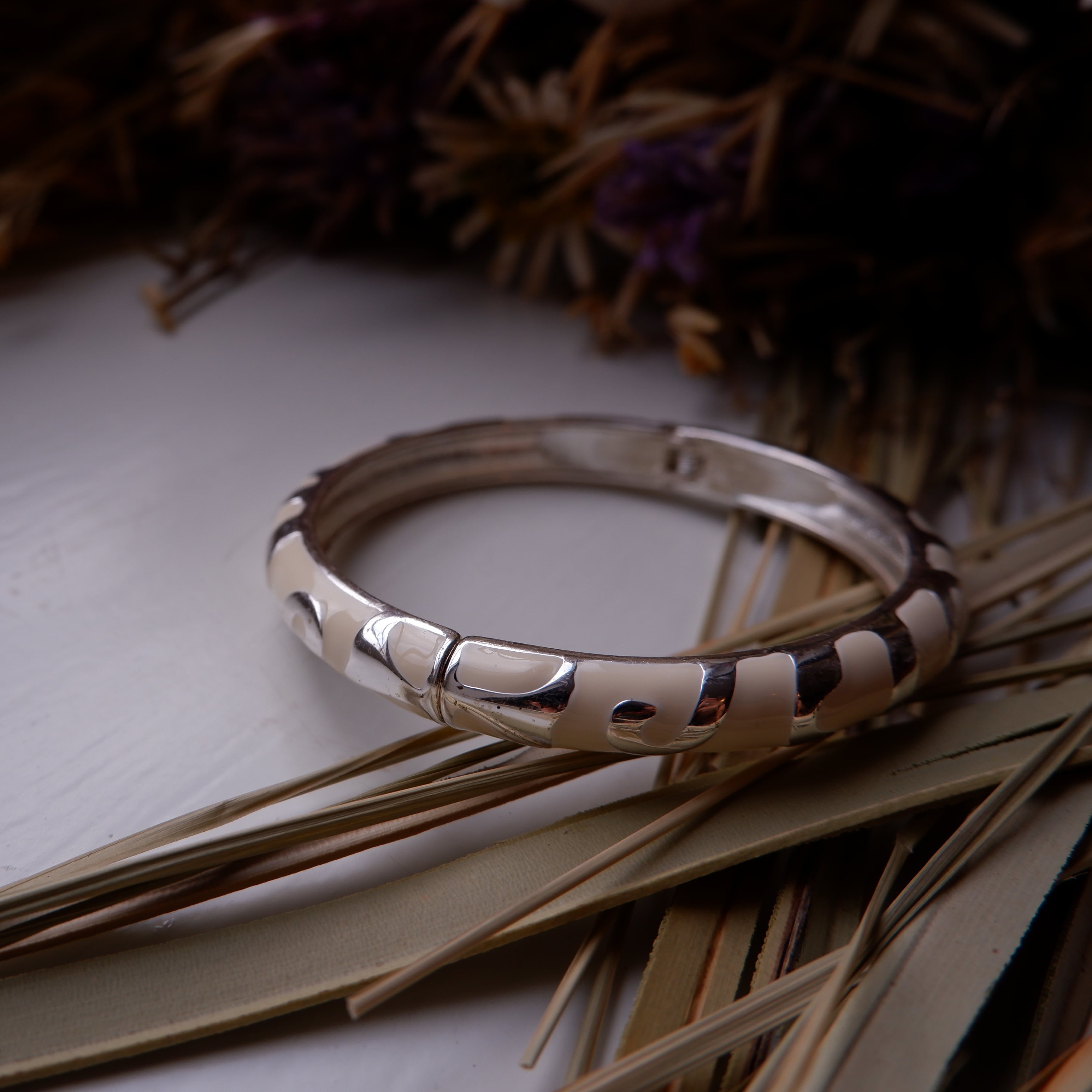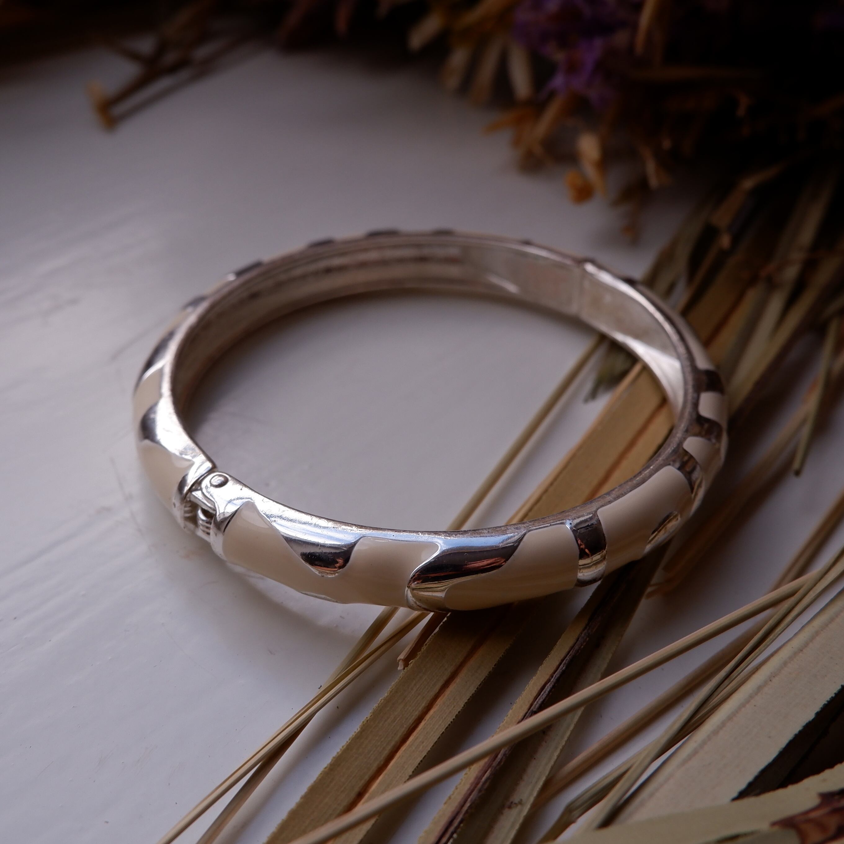 アイボリーカラーのバネのバングル (vijg-34)