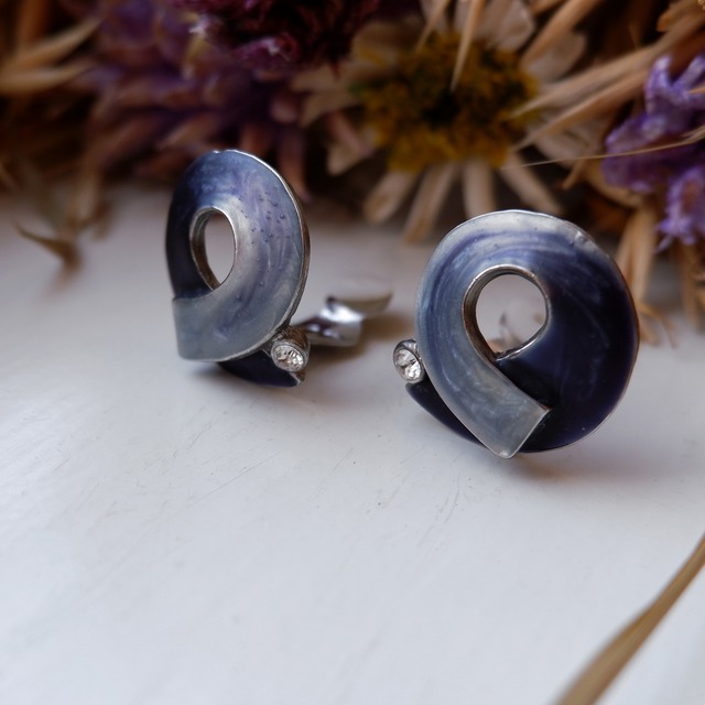 デニムブルーからライトブルーへのグラデーションが綺麗な、クリップ式のヴィンテージイヤリングです。
