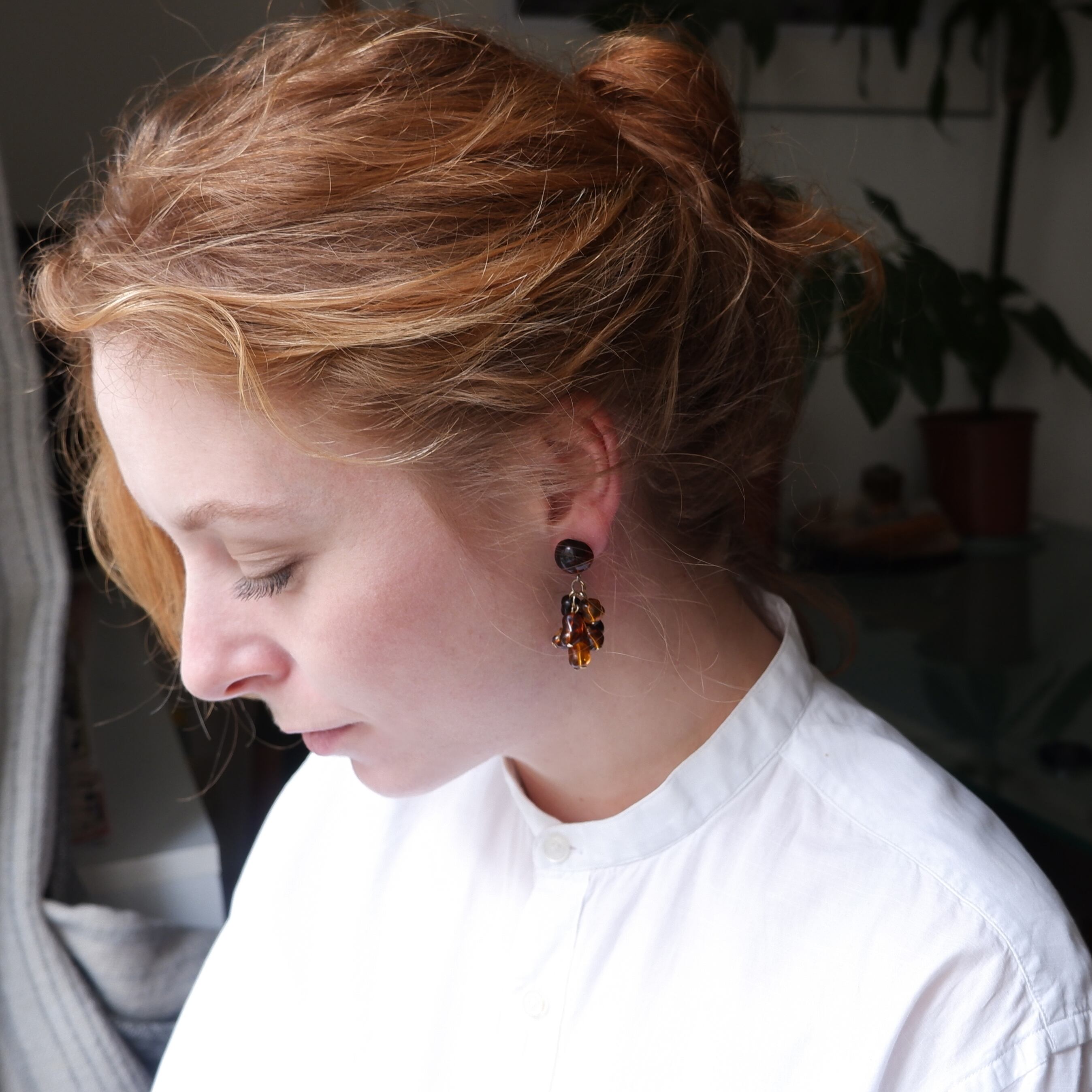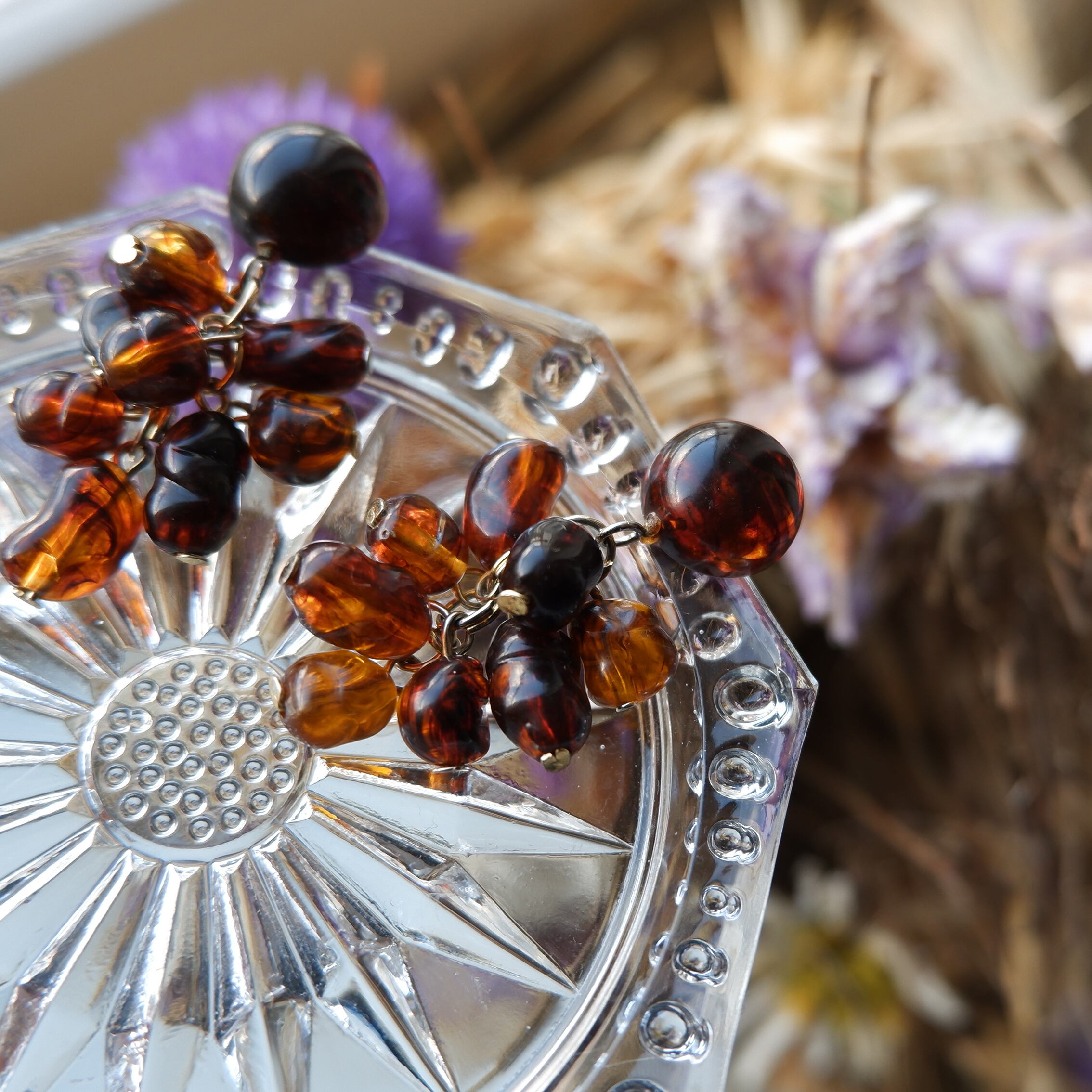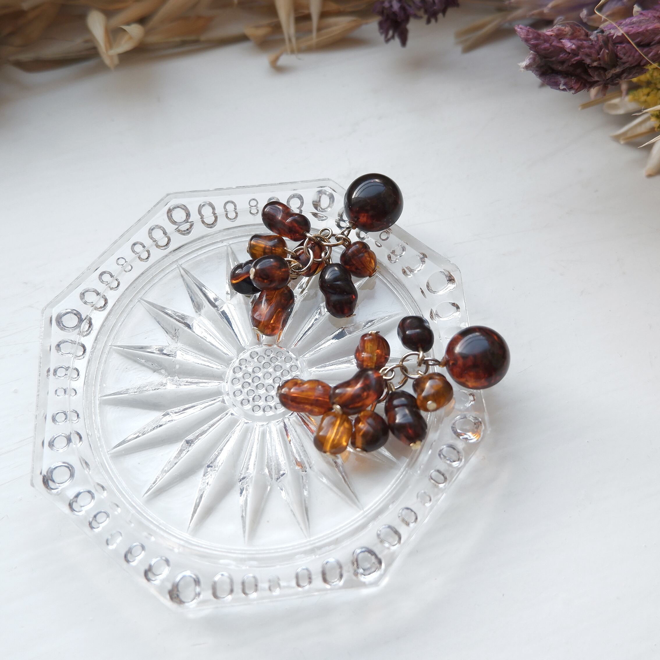 アンバーカラーのフェミニンなピアス (vijg-58)