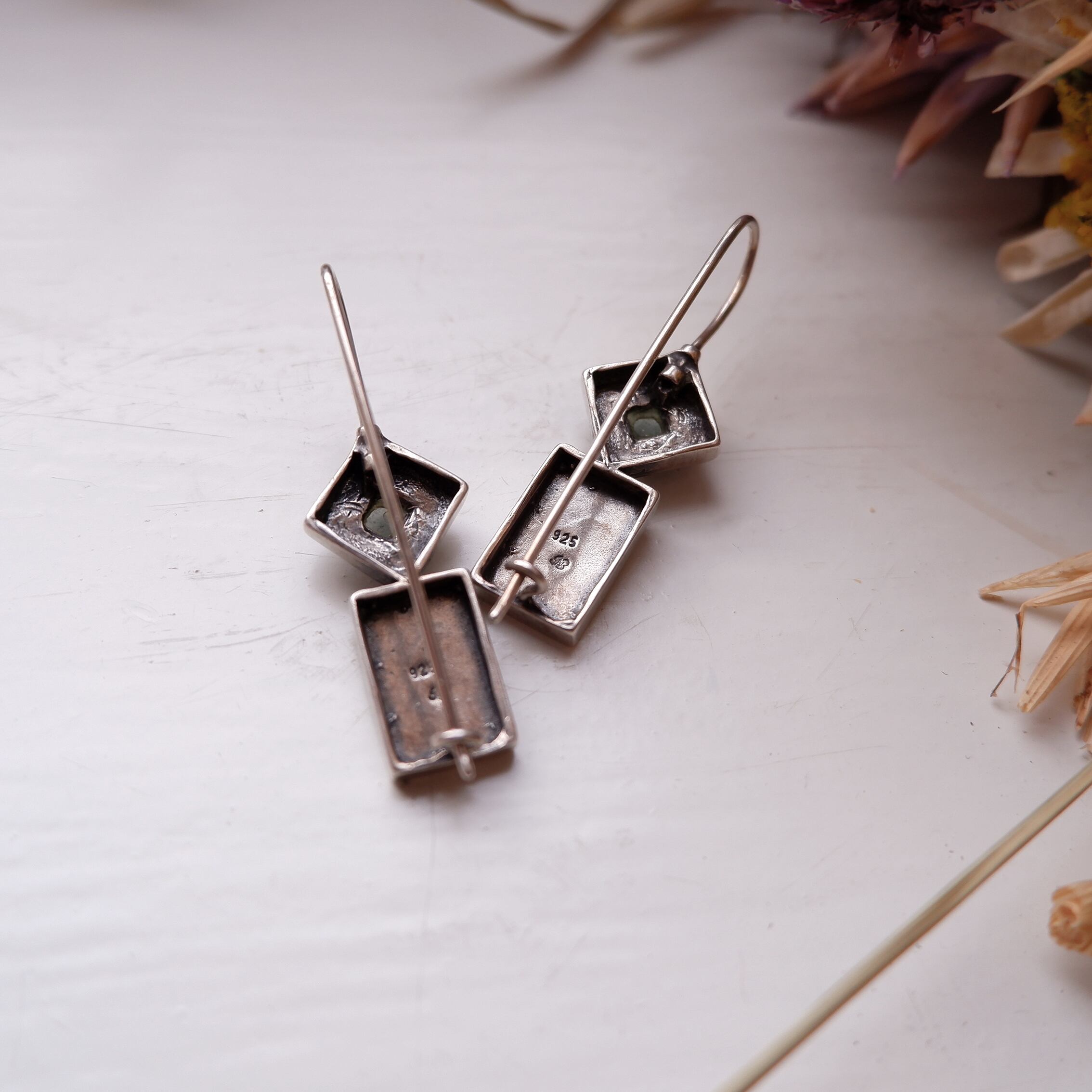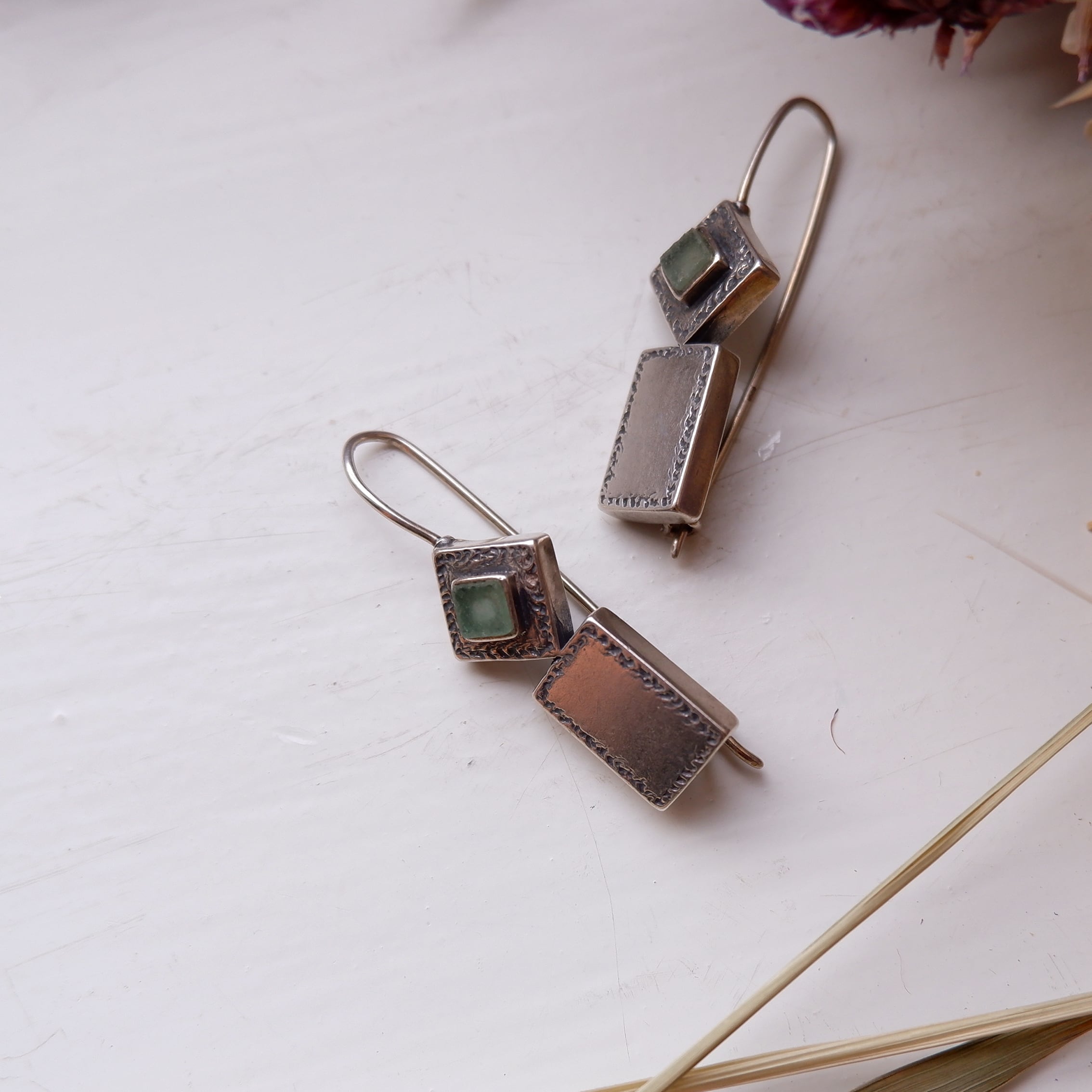 風合いのあるヴィンテージ製の銀に、手彫り、モスグリーン色の石の合わせがとても綺麗です。