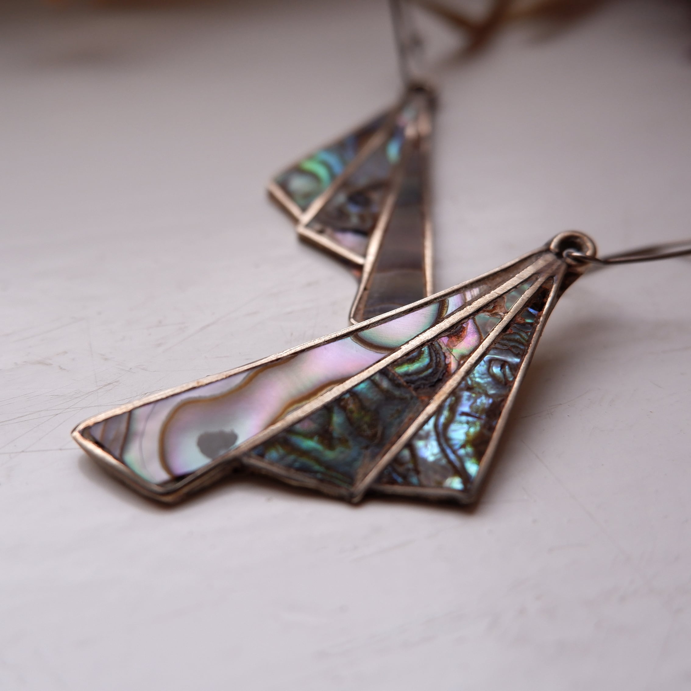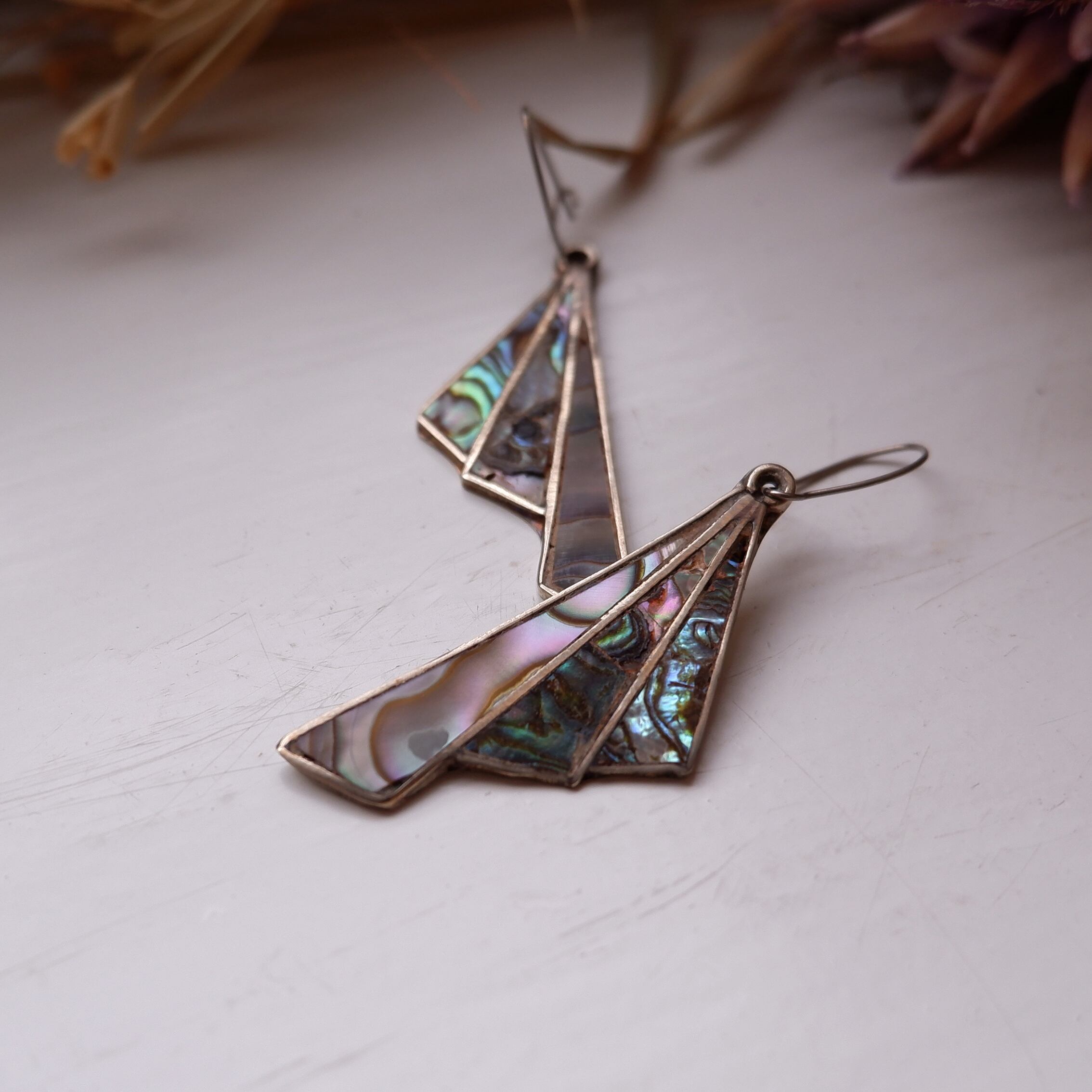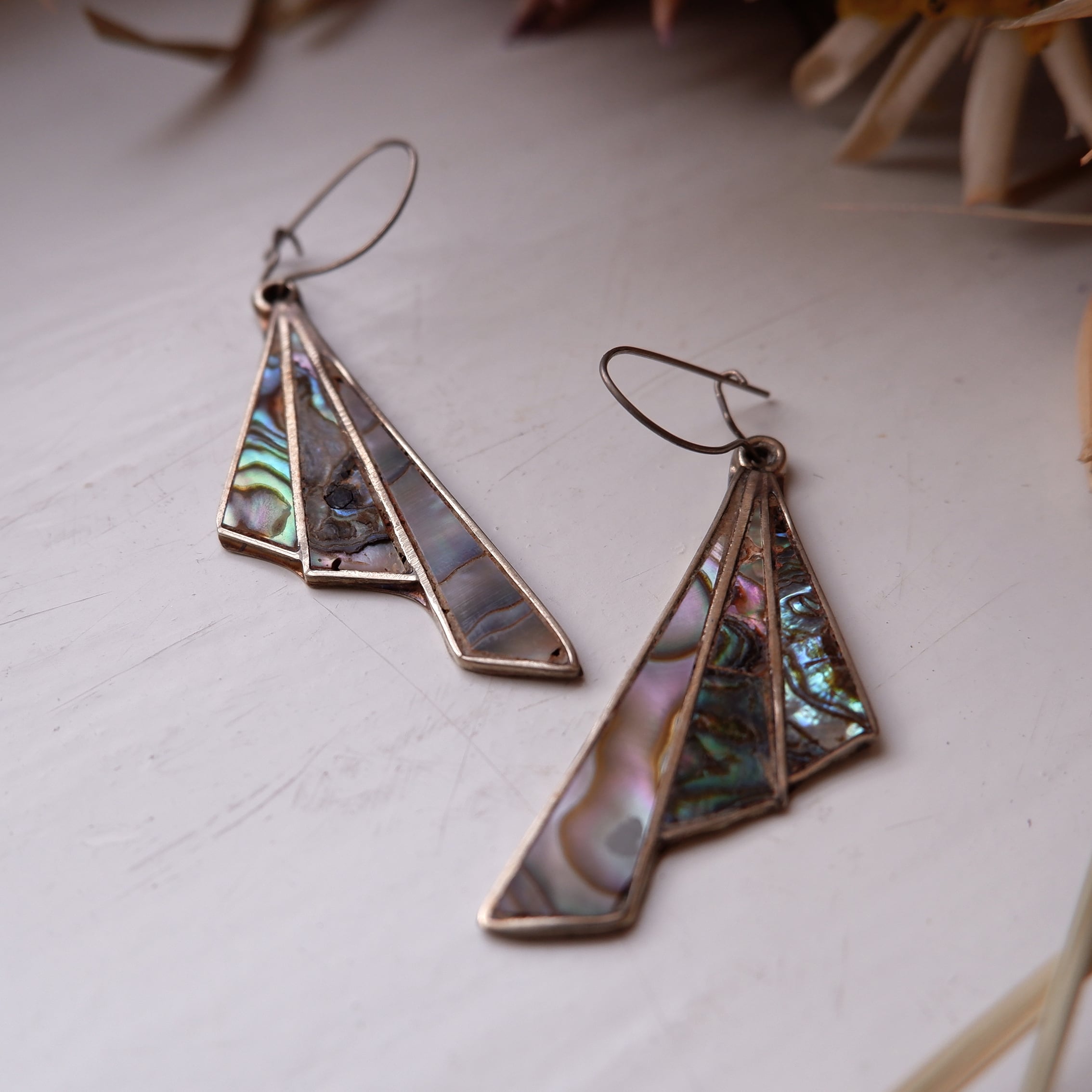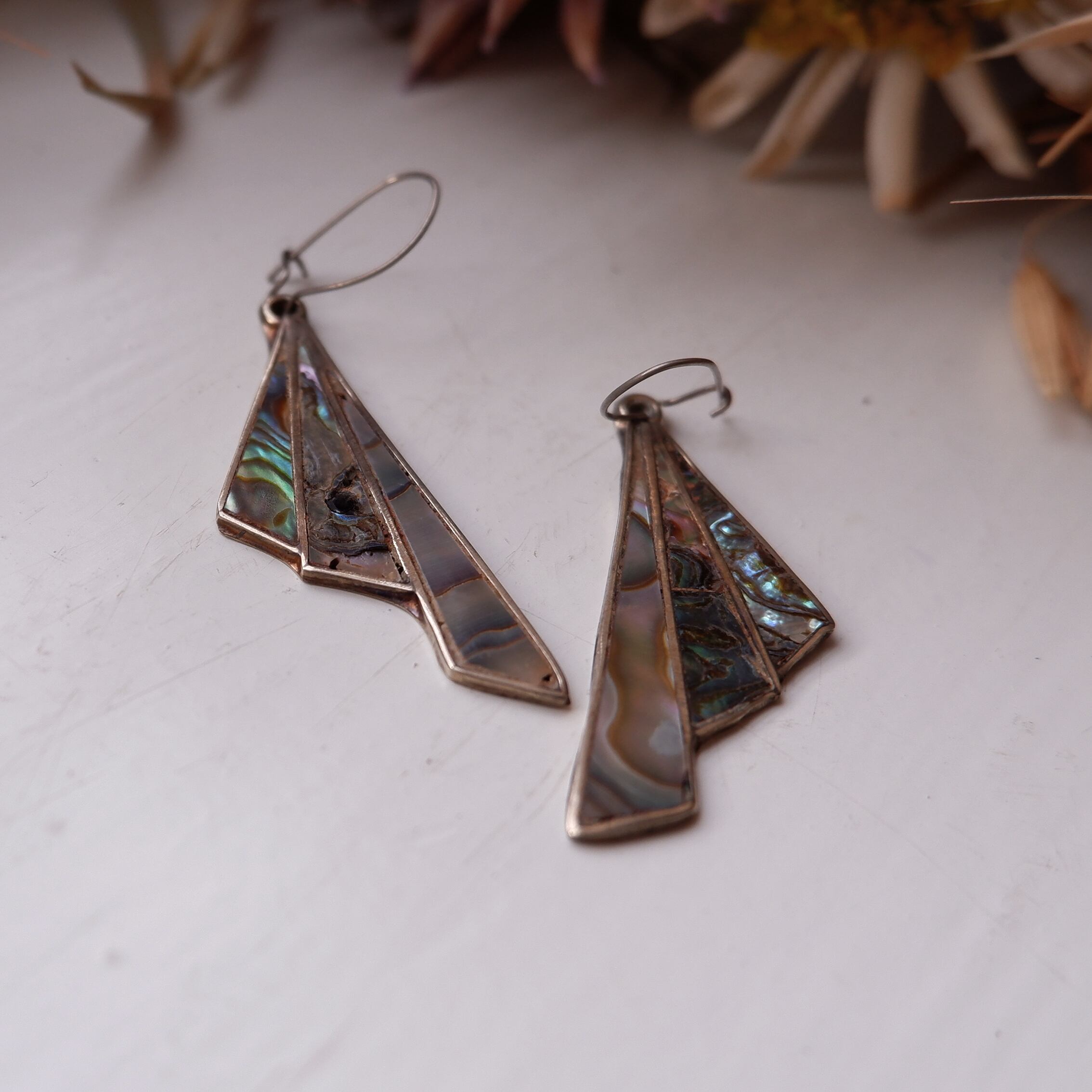 天然貝が充てがわれたシルバー製のヴィンテージピアスです。