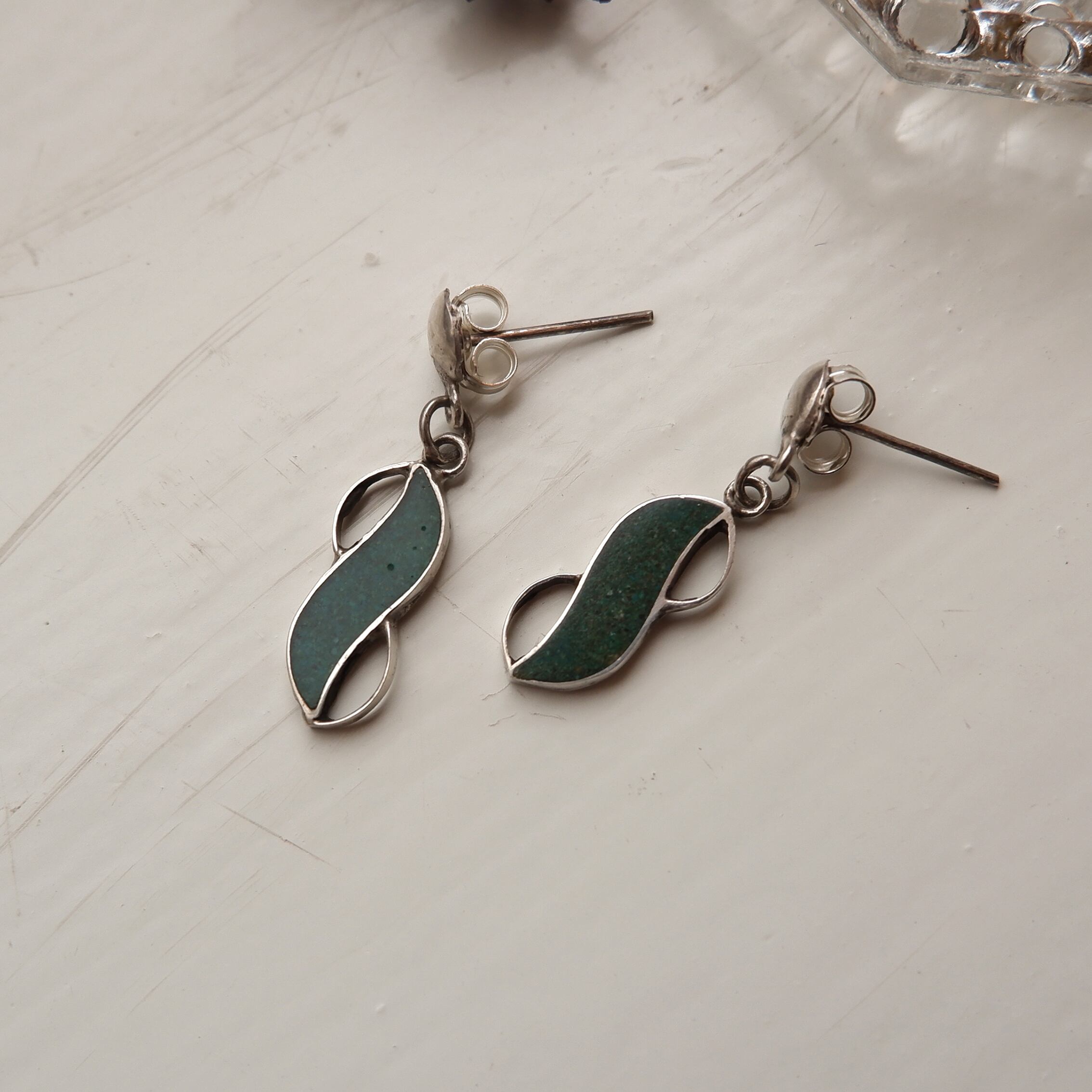 銀線で模様が描かれたモチーフのシルバーピアスです。