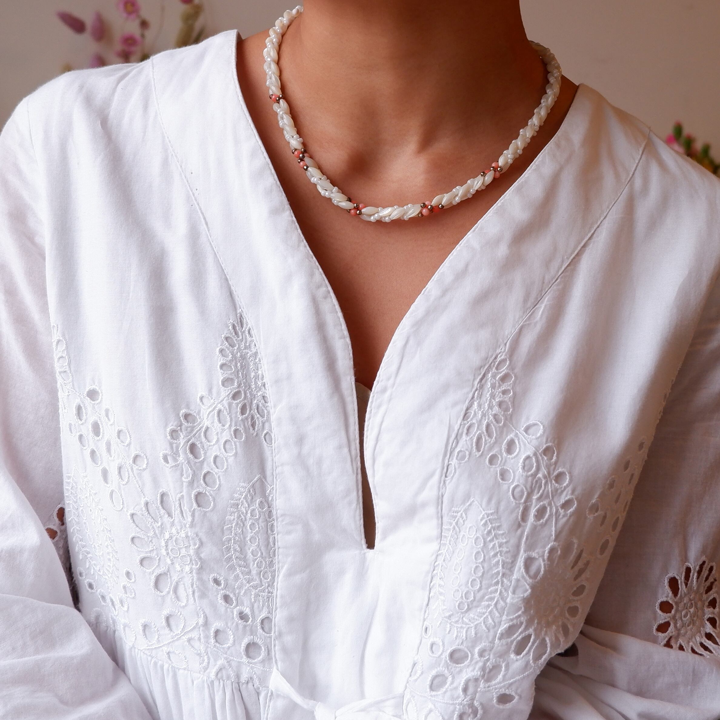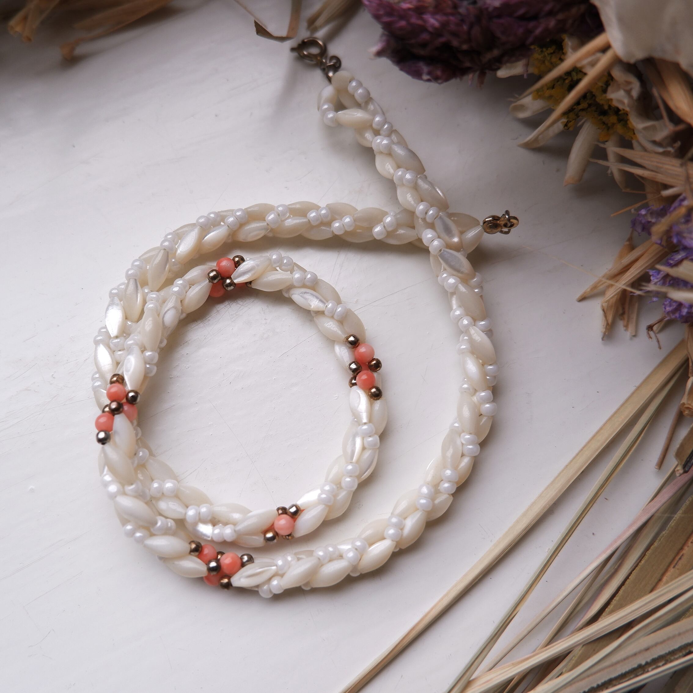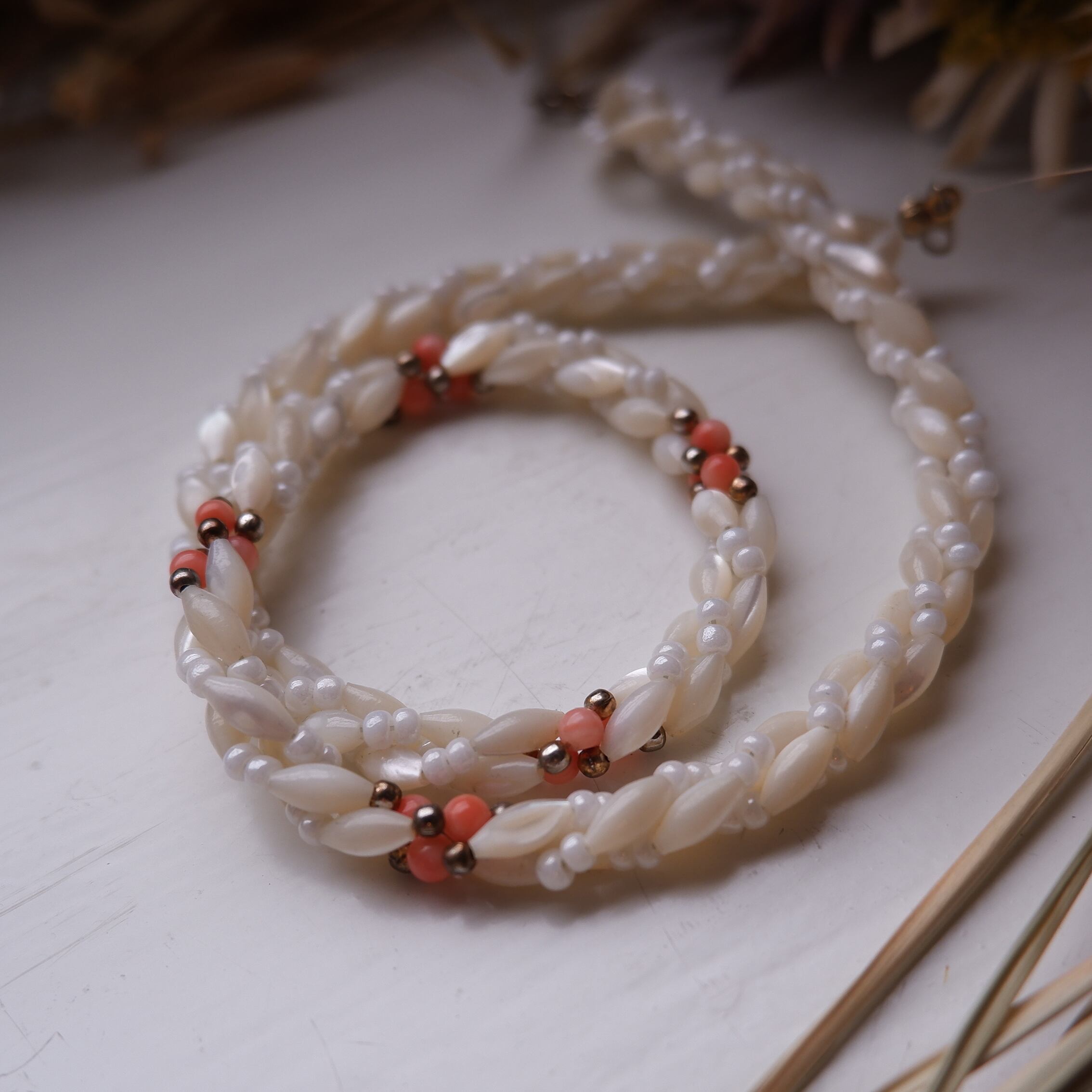 Seashell beaded 珊瑚色のネックレス (vijg-71)