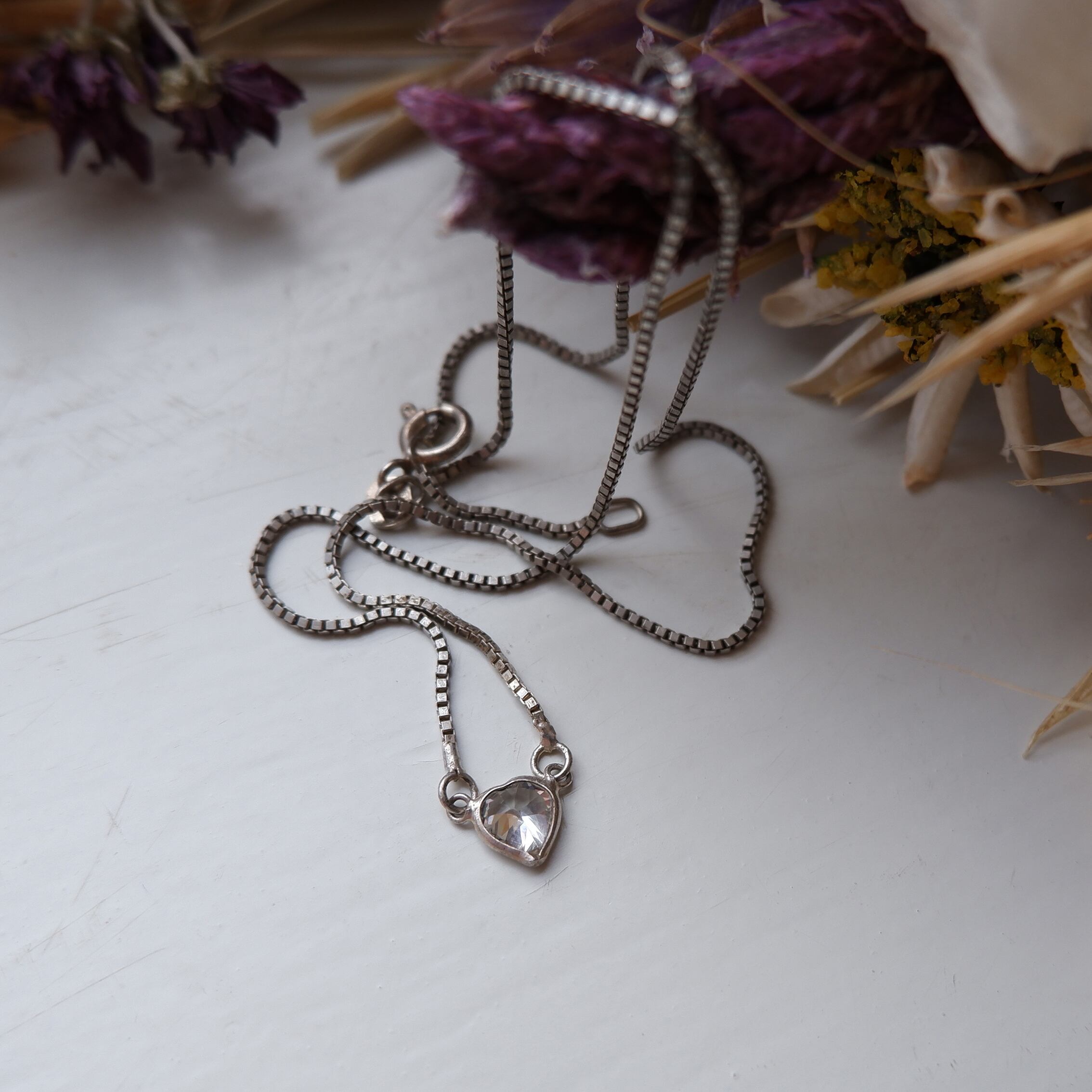 カットクリスタルで象られたとても小さなハートのモチーフがペンダントとなっています。